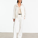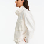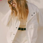 Oversized jacket in non-stretch Japanese denim. Chest patch pocket with flap. Snap front closure. Internal pocket. Unlined.