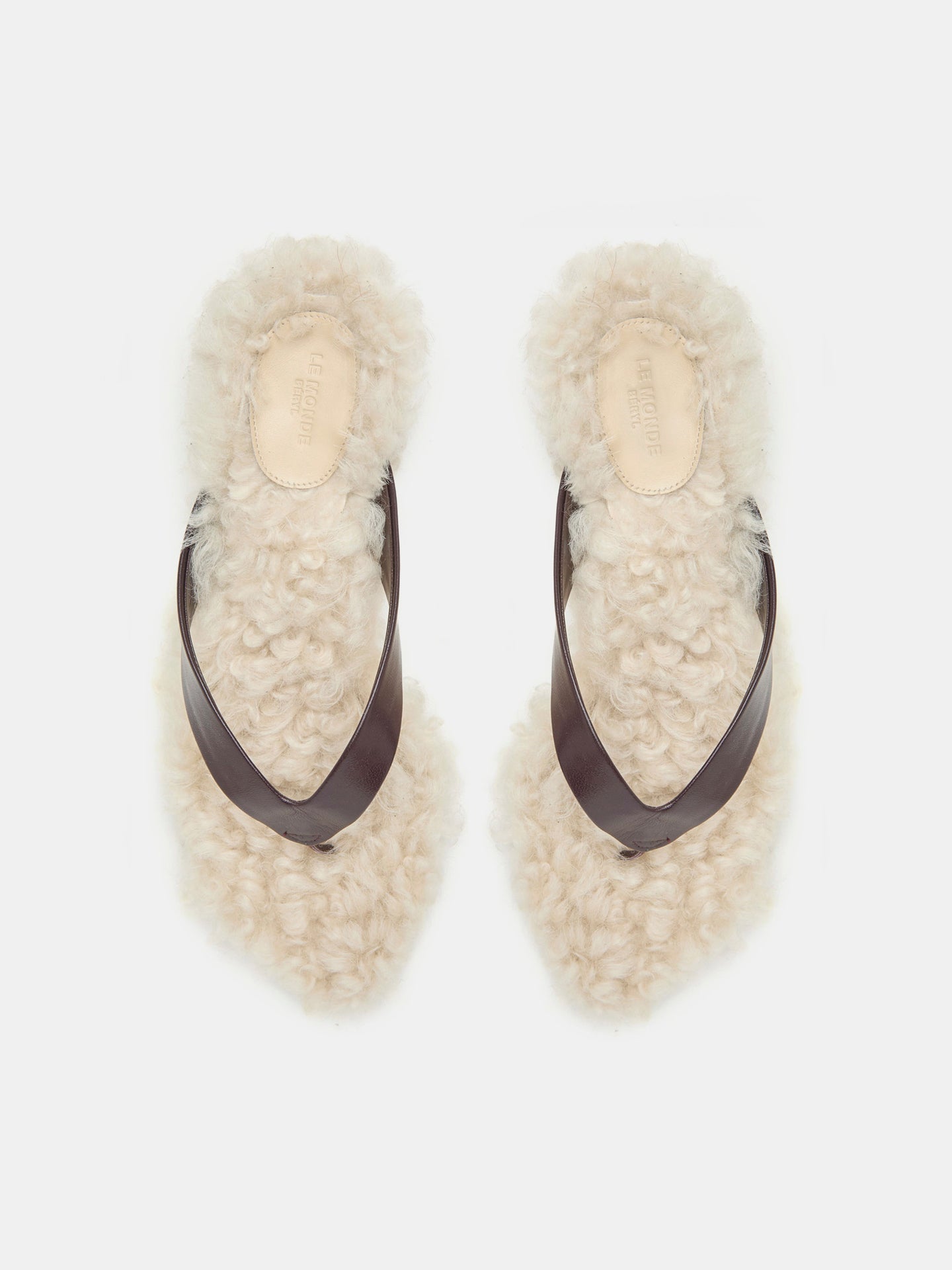 Le Monde Beryl - Micro Wedge Thong / Plum Leather with Latte Shearling