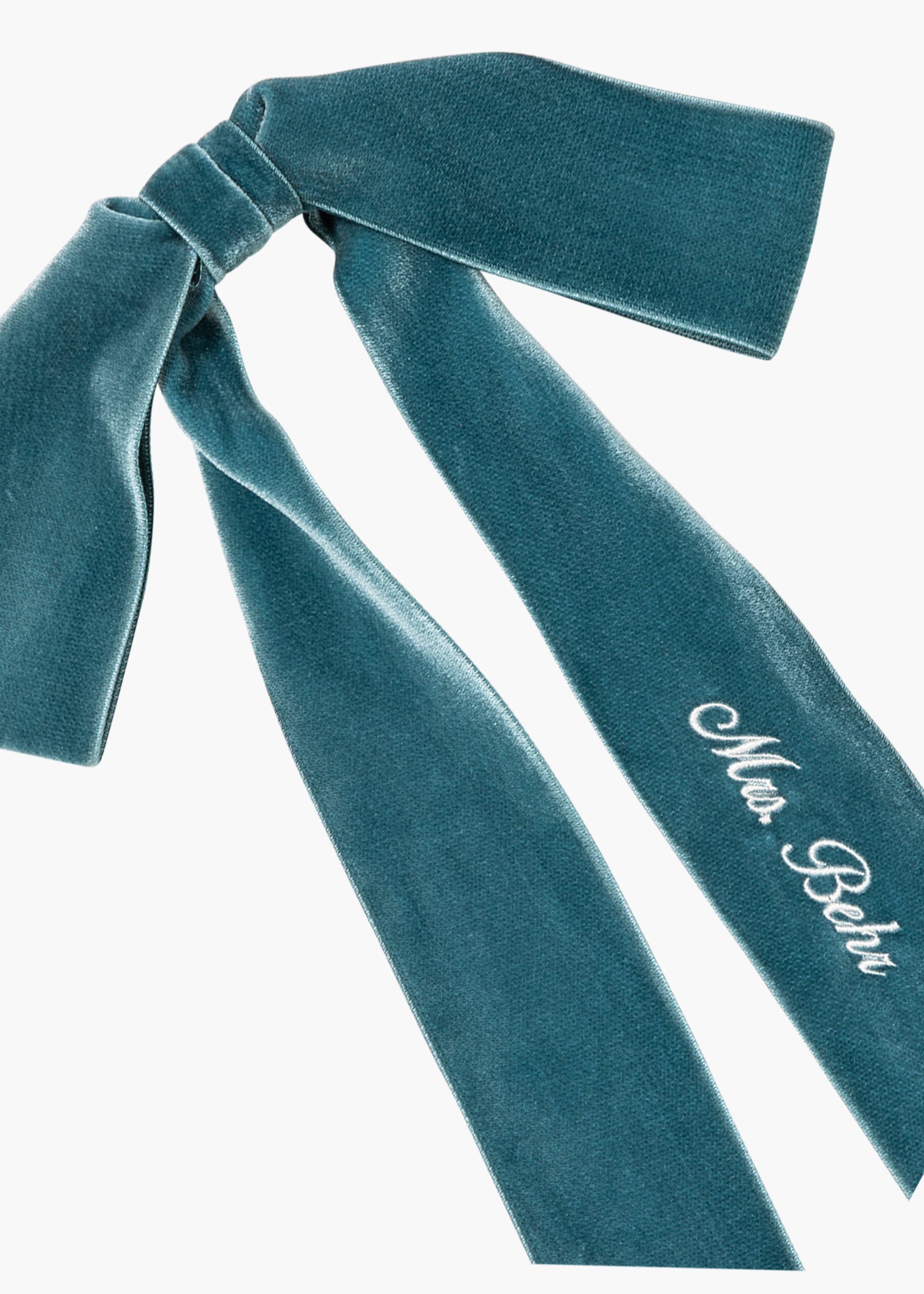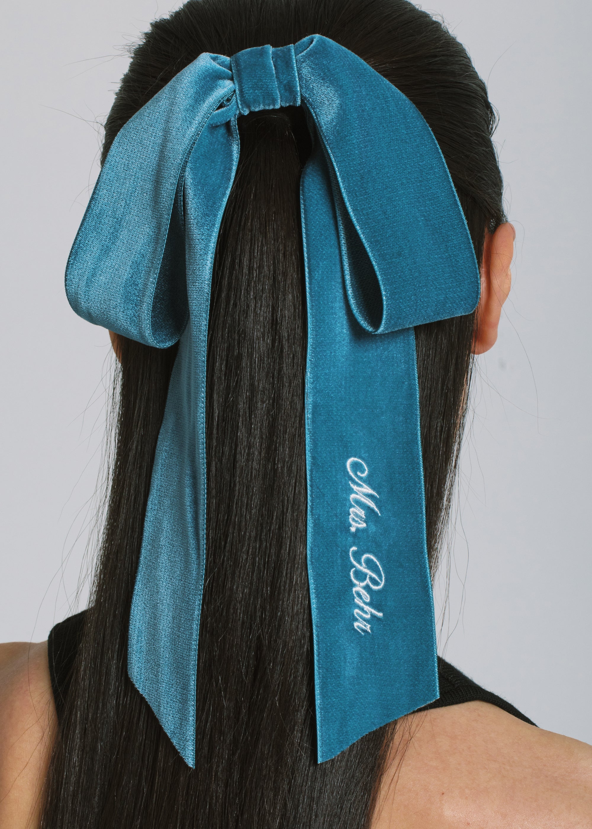 Jennifer Behr - Monogram Adley Velvet Bow Barrette -- Azul