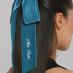 Personalize our best-selling Adley Velvet Bow Barrette with your own monogram. The thick velvet ribbon's oversized loops are artfully draped, giving the illusion of a ribbon effortlessly tied in the hair, with the simplicity of a barrette closure. Made by hand in New York, this bow features an automatic French barrette closure, making it easy to wear in an endless number of hairstyles, in any type of hair.