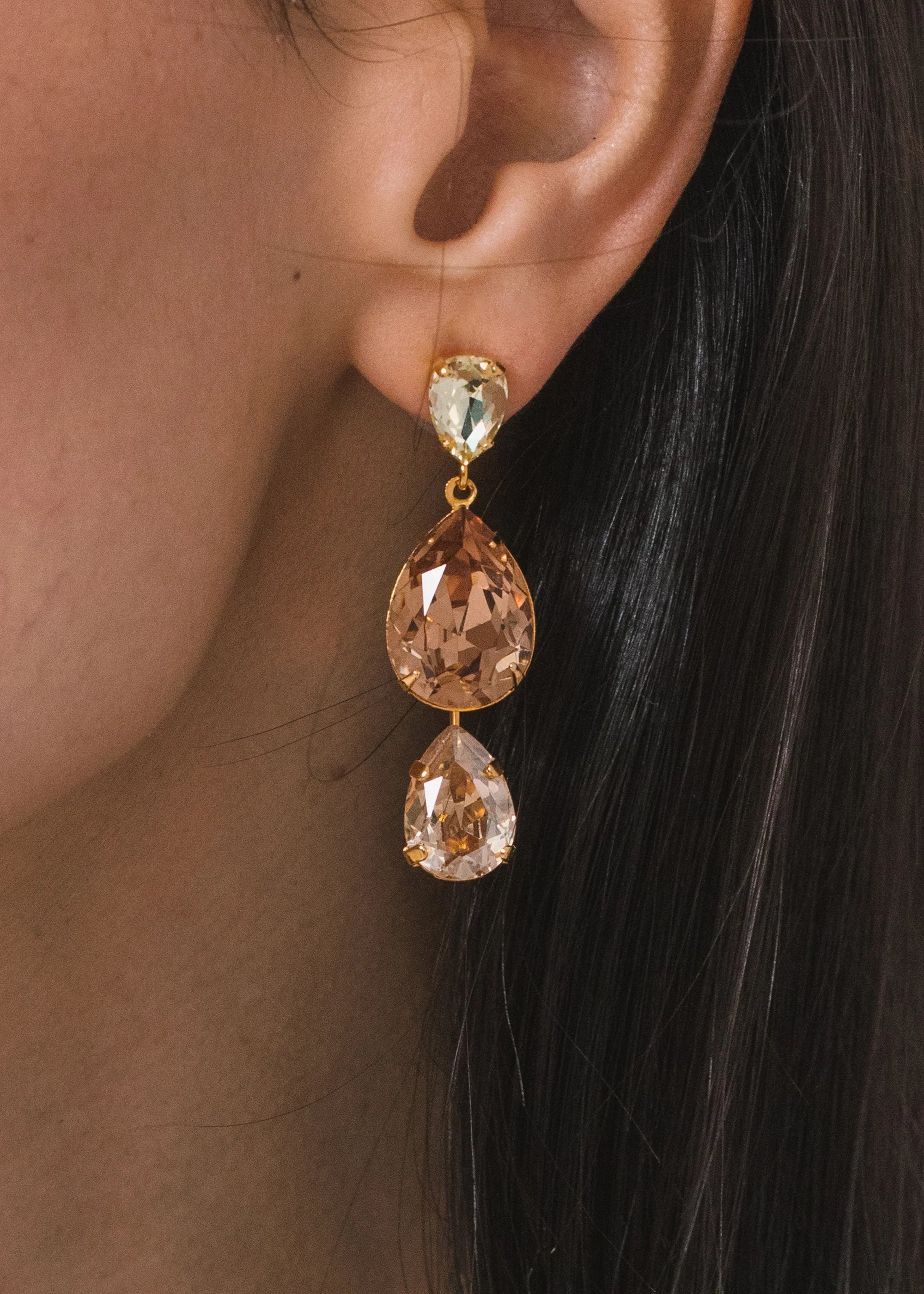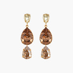 An instant classic, the Natalina Earrings showcase the richness, depth, and sparkle of the fine Austrian crystals that comprise them. Made by hand in New York, the pear-cut stones are set in alternating directions, with an 18-karat gold-plated setting. The linear drop is designed to create flattering, elongated lines. Dimensions: 1 7/8in x 1/2in