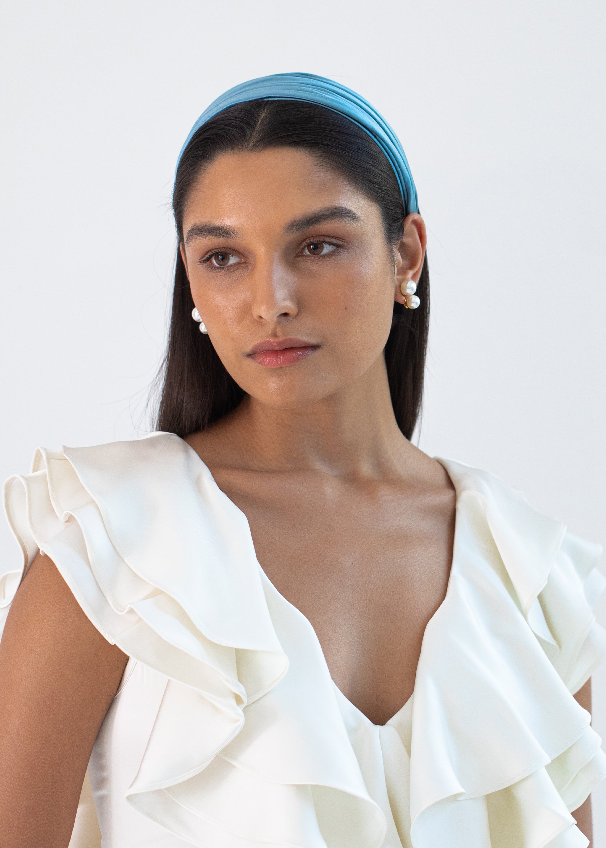 Introducing the all new Natasha Headband. This fresh silhouette features hand draped silk on our classic flexible wide headband base. Our handcrafted draping makes each headband completely one-of-a-kind and creates a beautiful depth of color. This style will be your new favorite for everyday, and pairs perfectly with earrings. Dimensions: 2 inch width