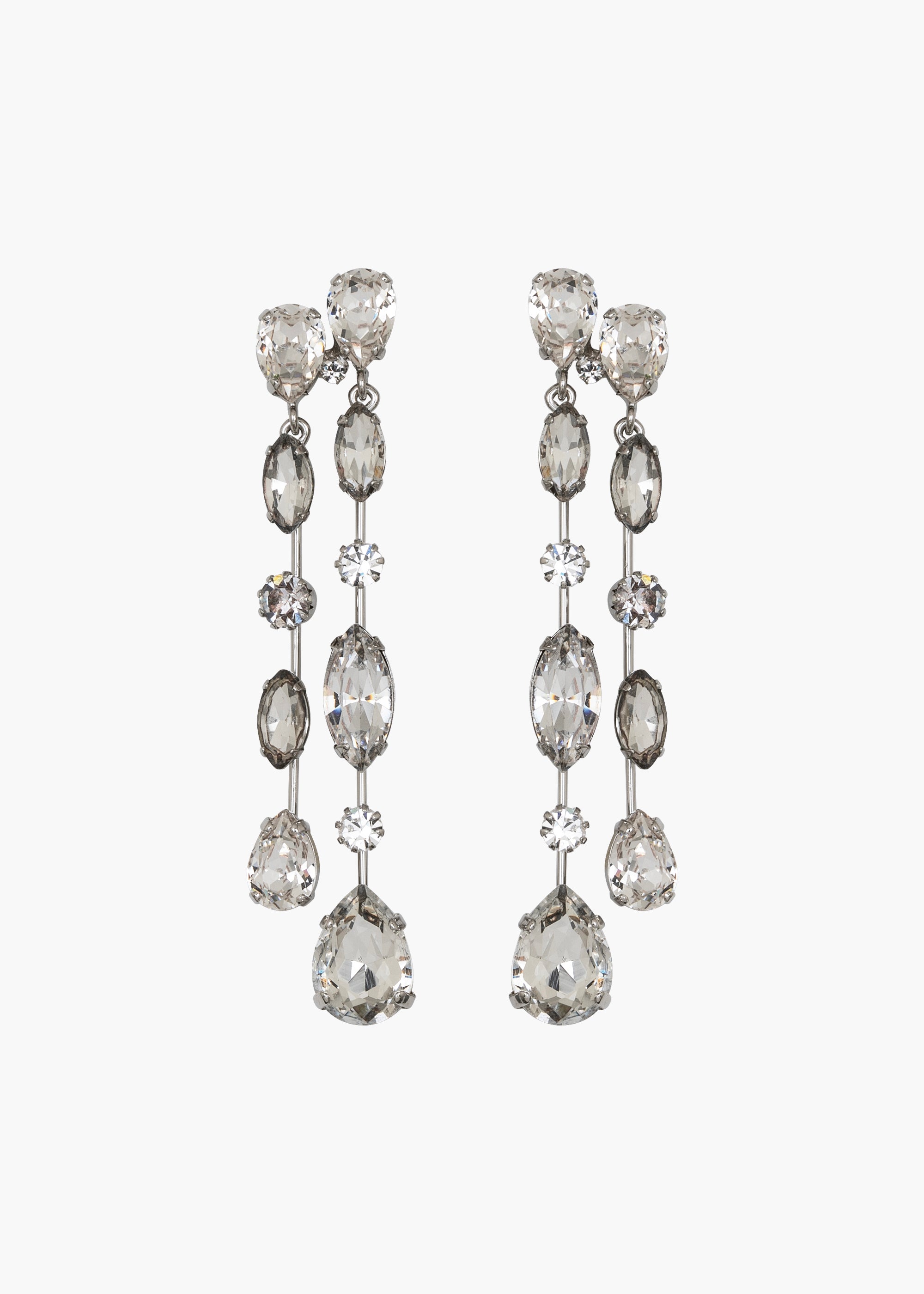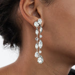 Jaw-dropping, face-framing, and altogether statement-making: the Nessa Earrings promise to sparkle endlessly. These spectacular earrings feature rivulets of carefully-set crystals dripping splendidly from the ear. Made by hand in New York, the drop's movement is thoughtfully designed to maximize each stone's sparkle.