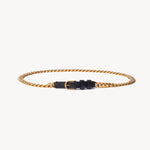 Gold chain link and leather belt. Brass buckle in polished gold.