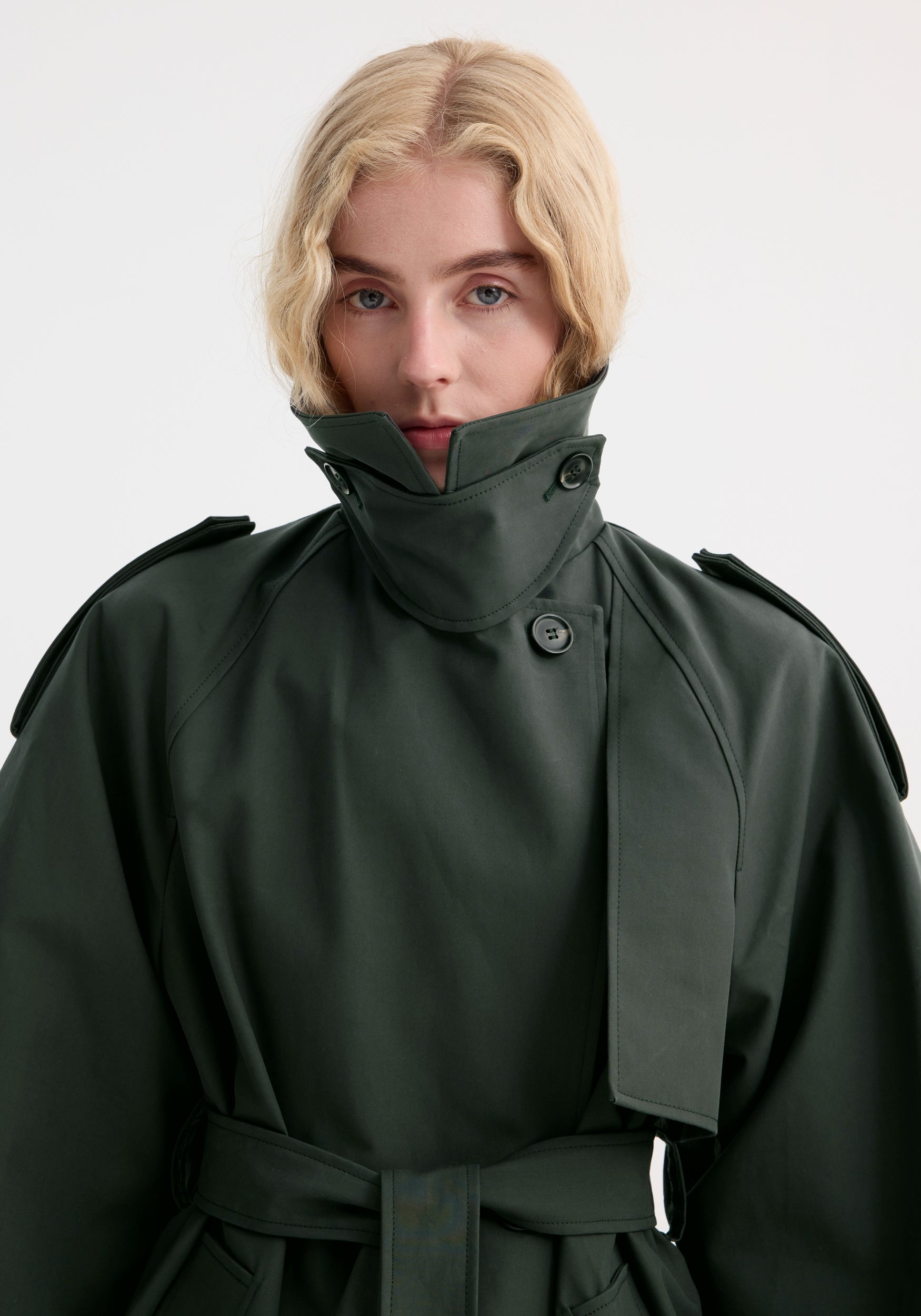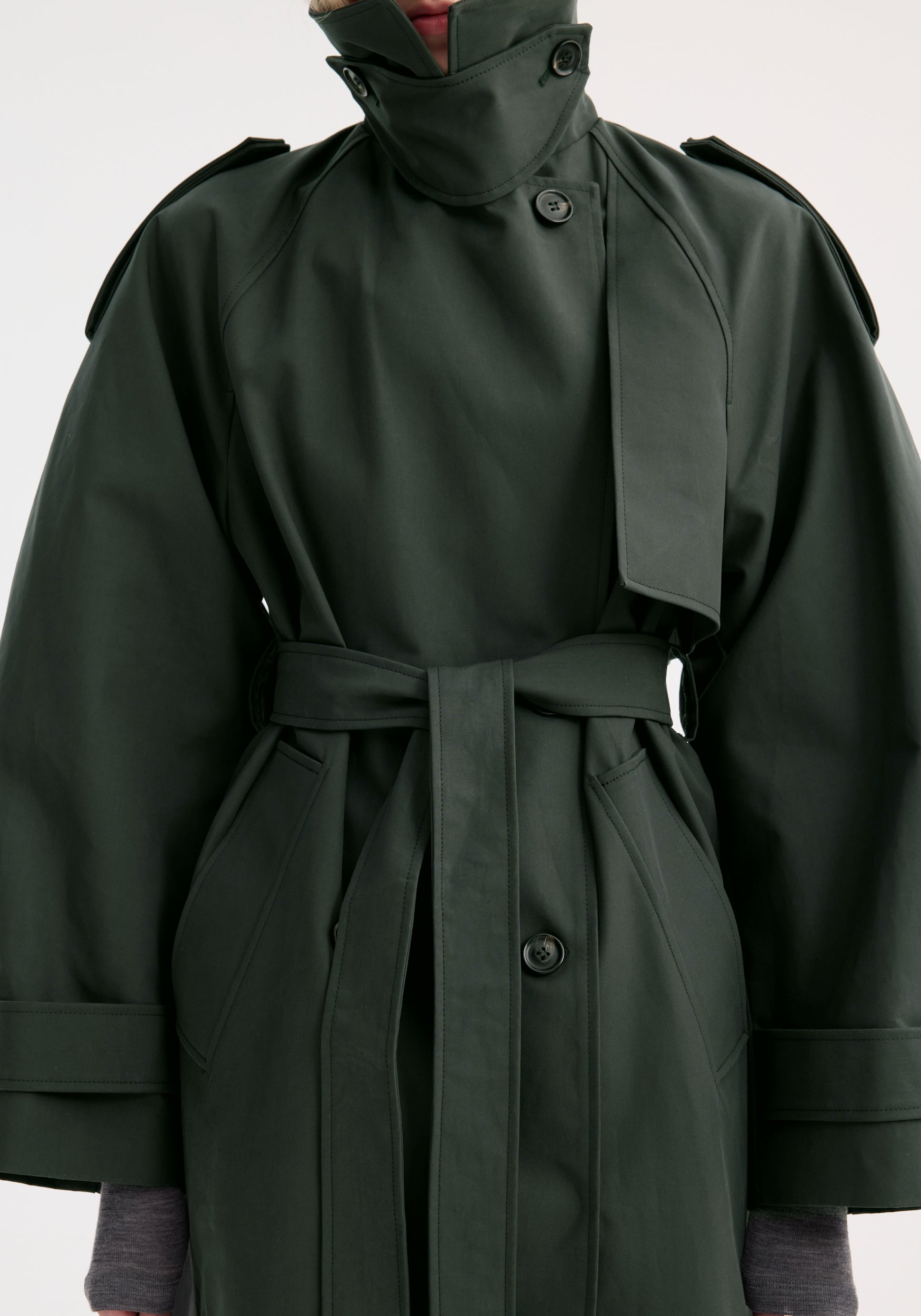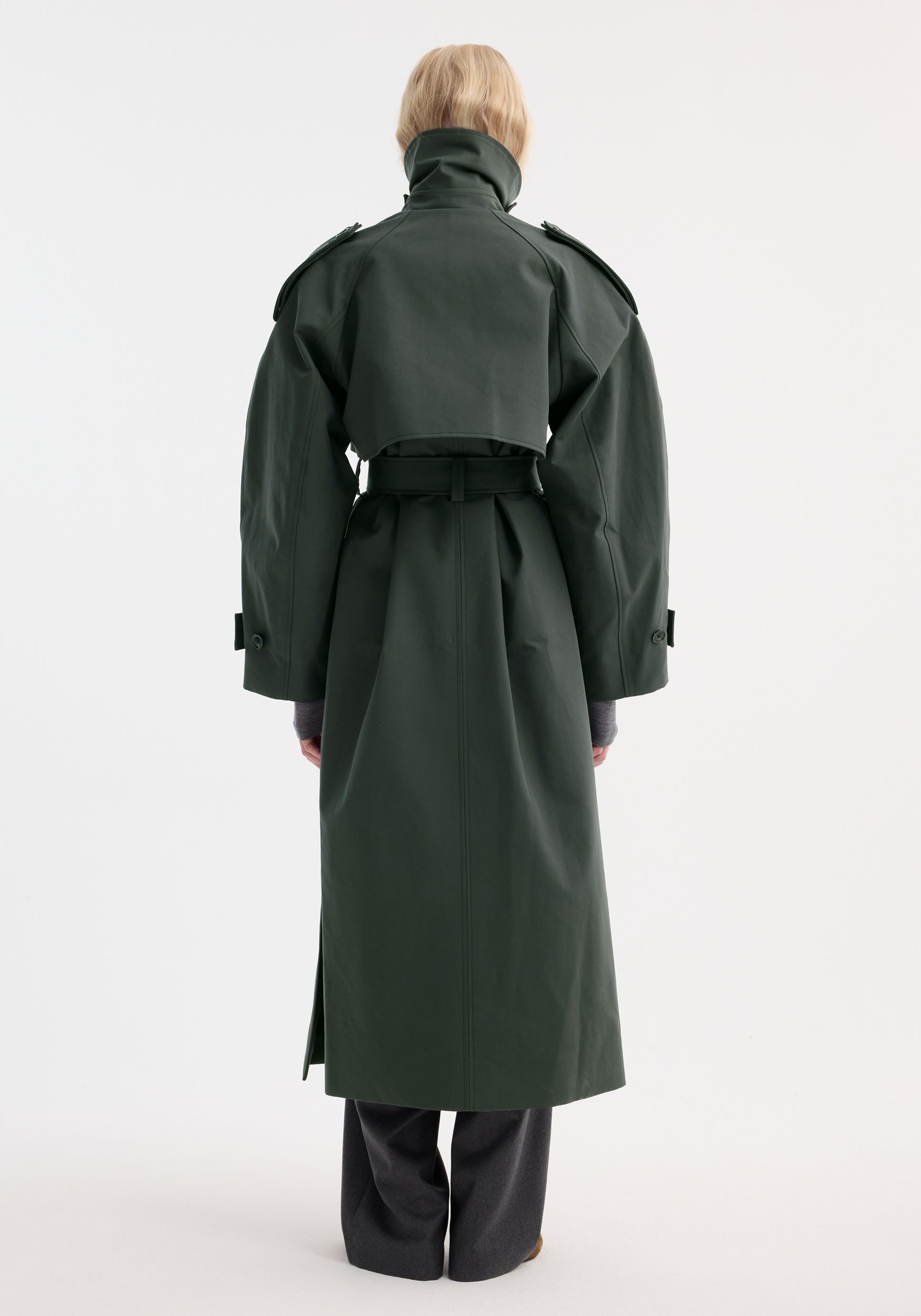 Our take on the classic trench crafted from a high-quality dense cotton fabric with structured design details and an oversized full-length silhouette for modern elegance.