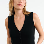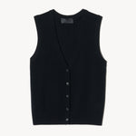 Slim fit lightweight sweater vest. Double layer trim at neck. Logo horn buttons. Rib trim at neck, sleeve and hem.