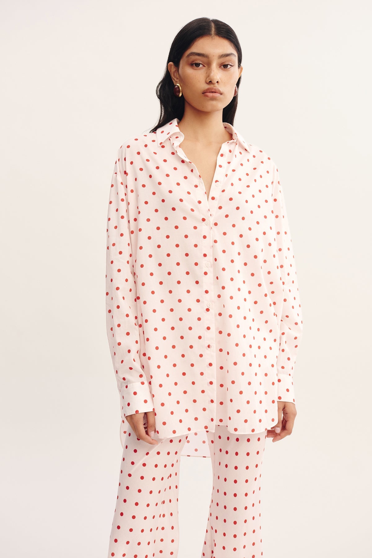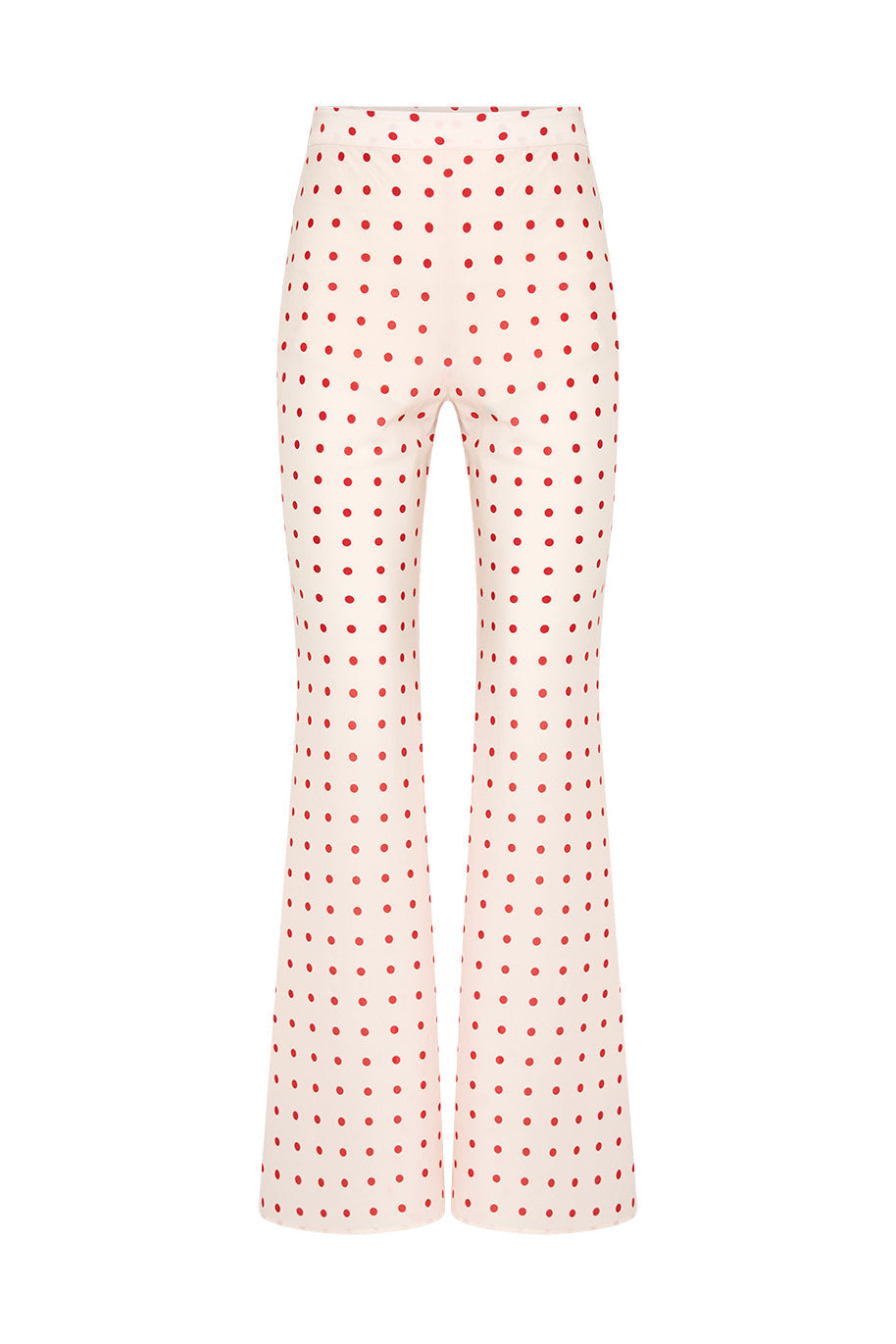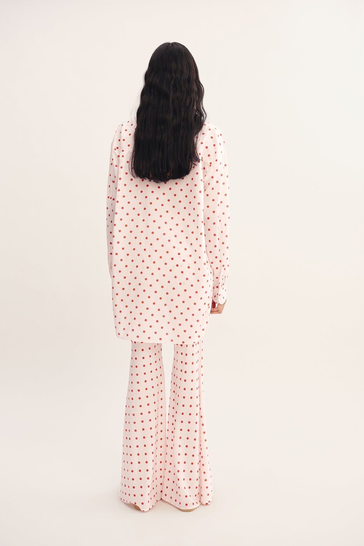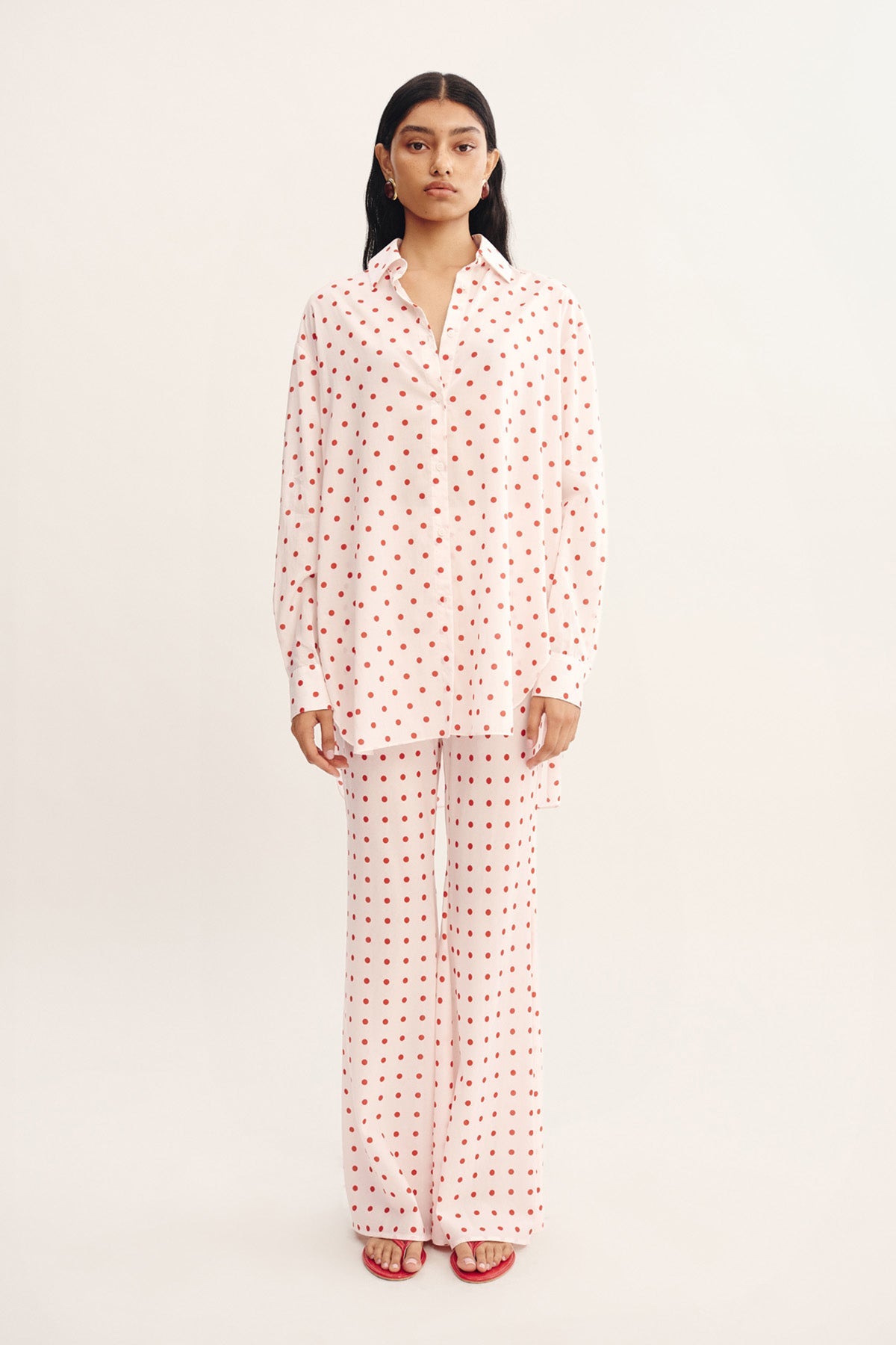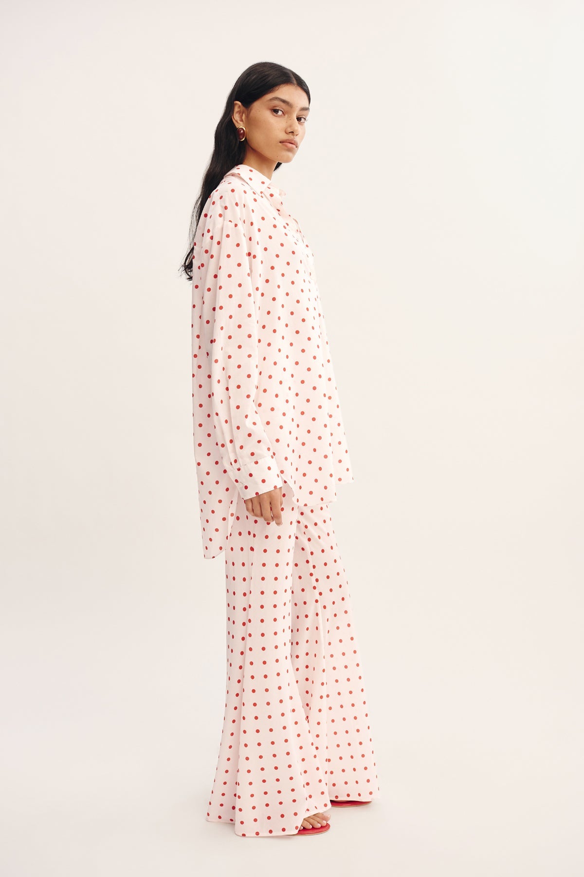 Patterned with classic polka-dots, the Paloma Pants are crafted from a luxurious tencel blend. They're designed to sit high on the waist before falling to flared hems. Style yours as a set with the matching Paloma Shirt.