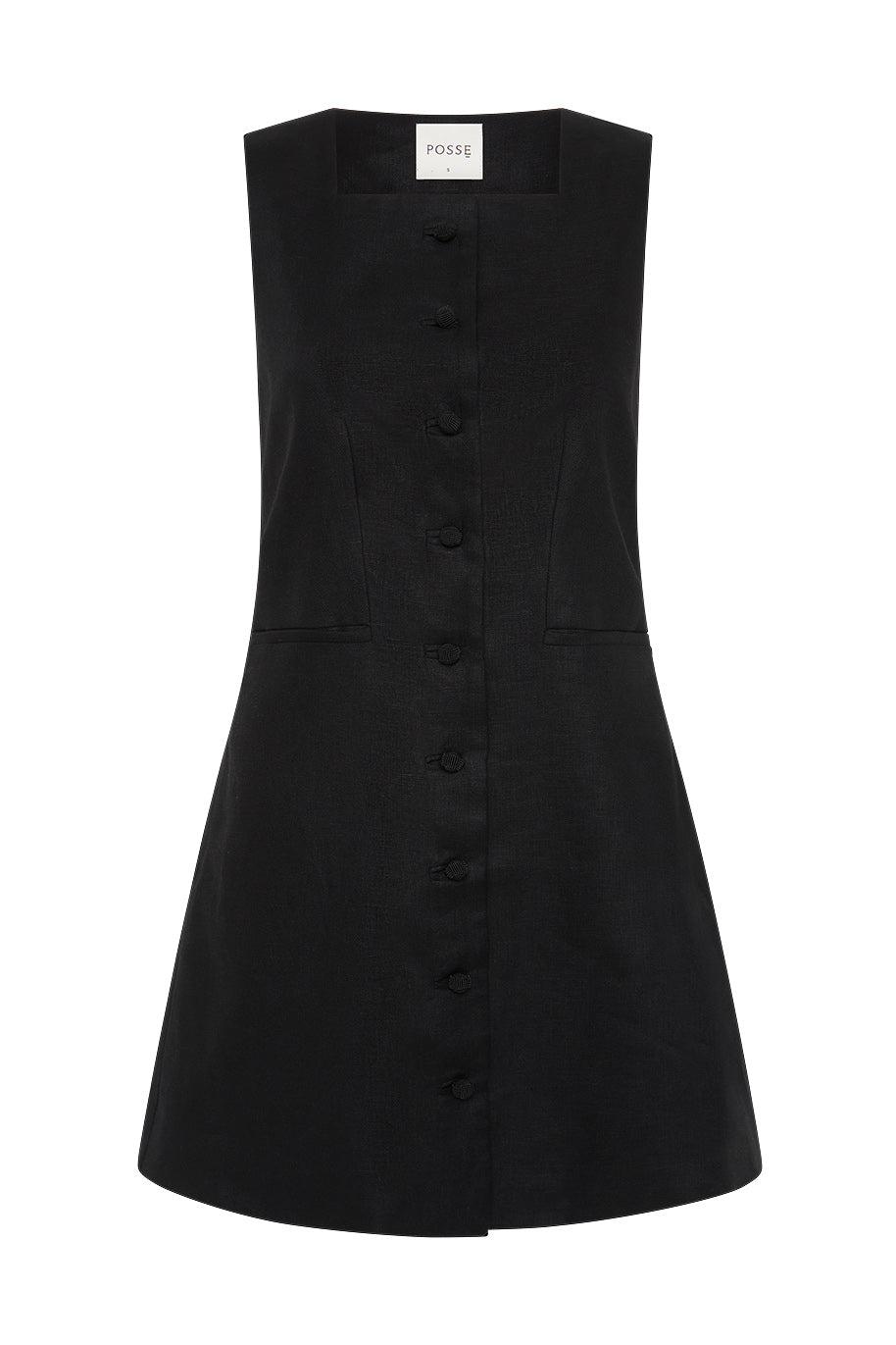 Tailored in 100% midweight linen, the Rio Mini Dress features an elegant, high square neckline and fitted silhouette. Self-covered buttons extend down the centre front, while the back turns to reveal a buckle adjustment to tailor the fit.