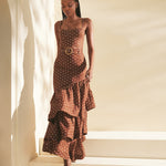 • Maxi asymmetrical fitted skirt with voluminous ruffles at tiers