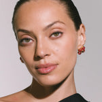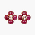 Inspired by 1960s mod florals, the Quinn Earrings are a delicious pop of color, flaunting the vivid hues of semi-precious stones like pink opal, blue agate, and red garnet. Made by hand in New York, the bubble-flower shape is achieved using cabochon gemstones for petals, with a fine Austrian crystal in the center. The stud is complete with an 18-karat gold-plated setting. Dimensions: 1"