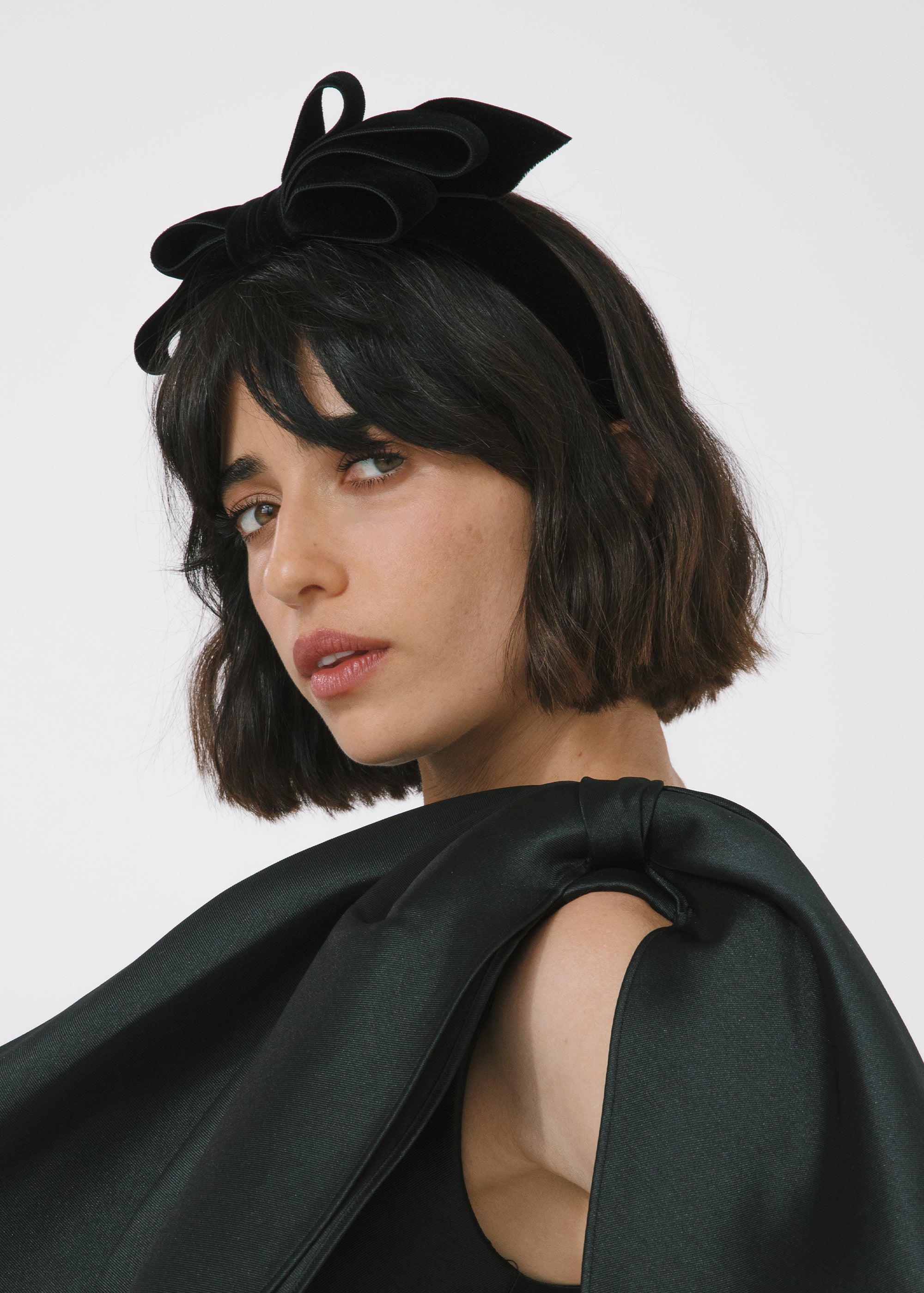 Like a perfectly-presented gift, the Rochel Headband never fails to delight. This statement headband features velvet ribbon masterfully draped into a bow with multiple sculptural loops, creating volume and drama. The adornment sits atop a classic padded silk velvet headband, lined in grosgrain for ultimate wearability and comfort. Dimensions: 2 inch width, 0.5 inch height
