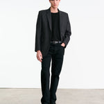 Single-breasted blazer. Easy straight slim fit. Fully constructed with shoulder pads. Flap pockets and chest welt pocket. Two interior pockets. Fully lined.