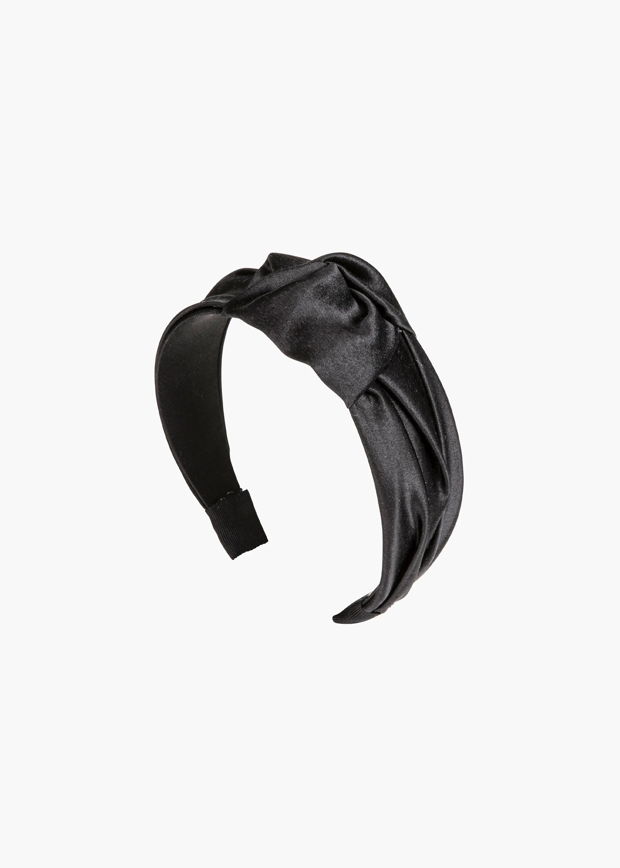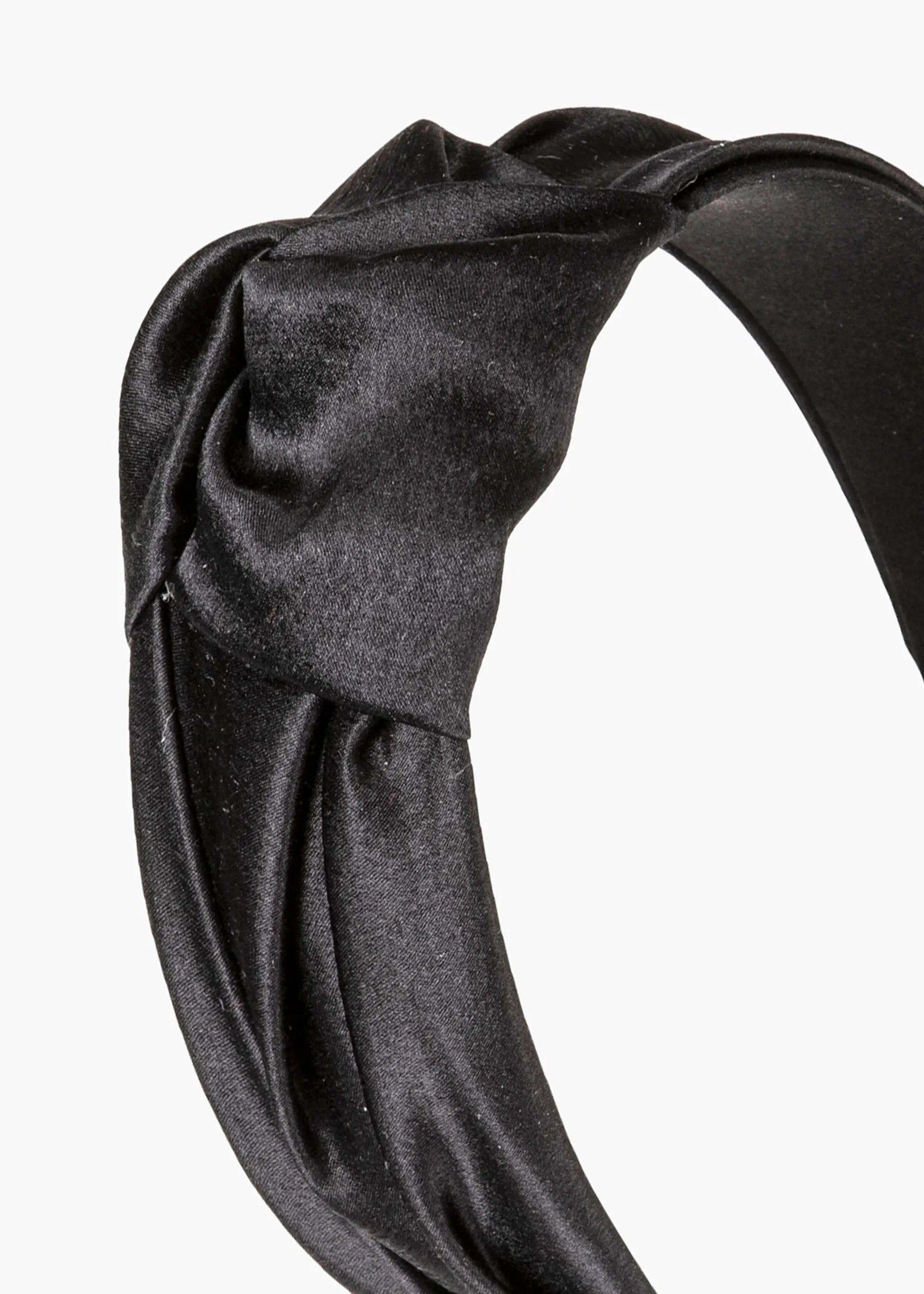 The Samaya Headband in Hammered Silk reimagines the iconic Jennifer Behr knotted shape, in lush hammered silk. Crafted by hand in our Brooklyn studio, the fabric is masterfully draped by hand to achieve the perfect flattering shape. The look is grounded by a flexible headband base, designed for lasting comfort. Dimensions: 2.25 inches wide, 0.5 inches padding
