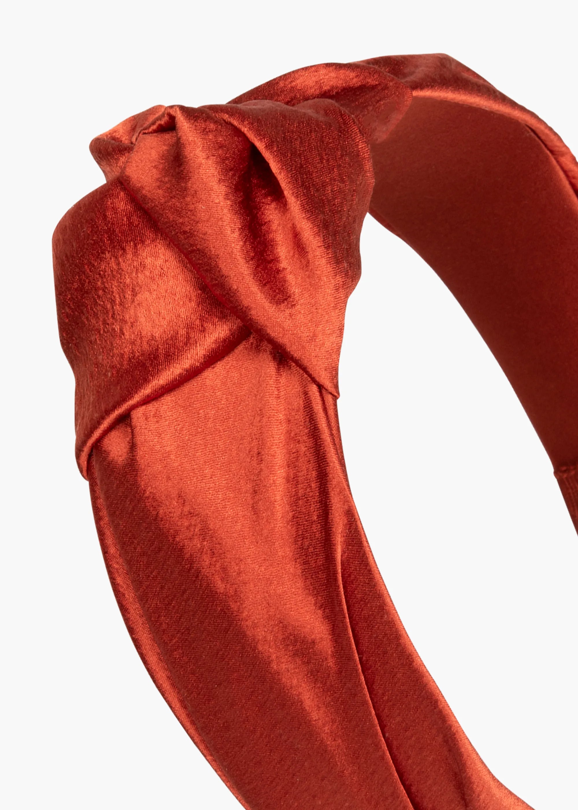 The Samaya Headband in Hammered Silk reimagines the iconic Jennifer Behr knotted shape, in lush hammered silk. Crafted by hand in our Brooklyn studio, the fabric is masterfully draped by hand to achieve the perfect flattering shape. The look is grounded by a flexible headband base, designed for lasting comfort. Dimensions: 2.25 inches wide, 0.5 inches padding