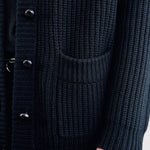 The Somac Cardigan is our medium-weight cashmere cardigan. Slightly oversized, the Somac is detailed with front pockets and contrast leather button closure.