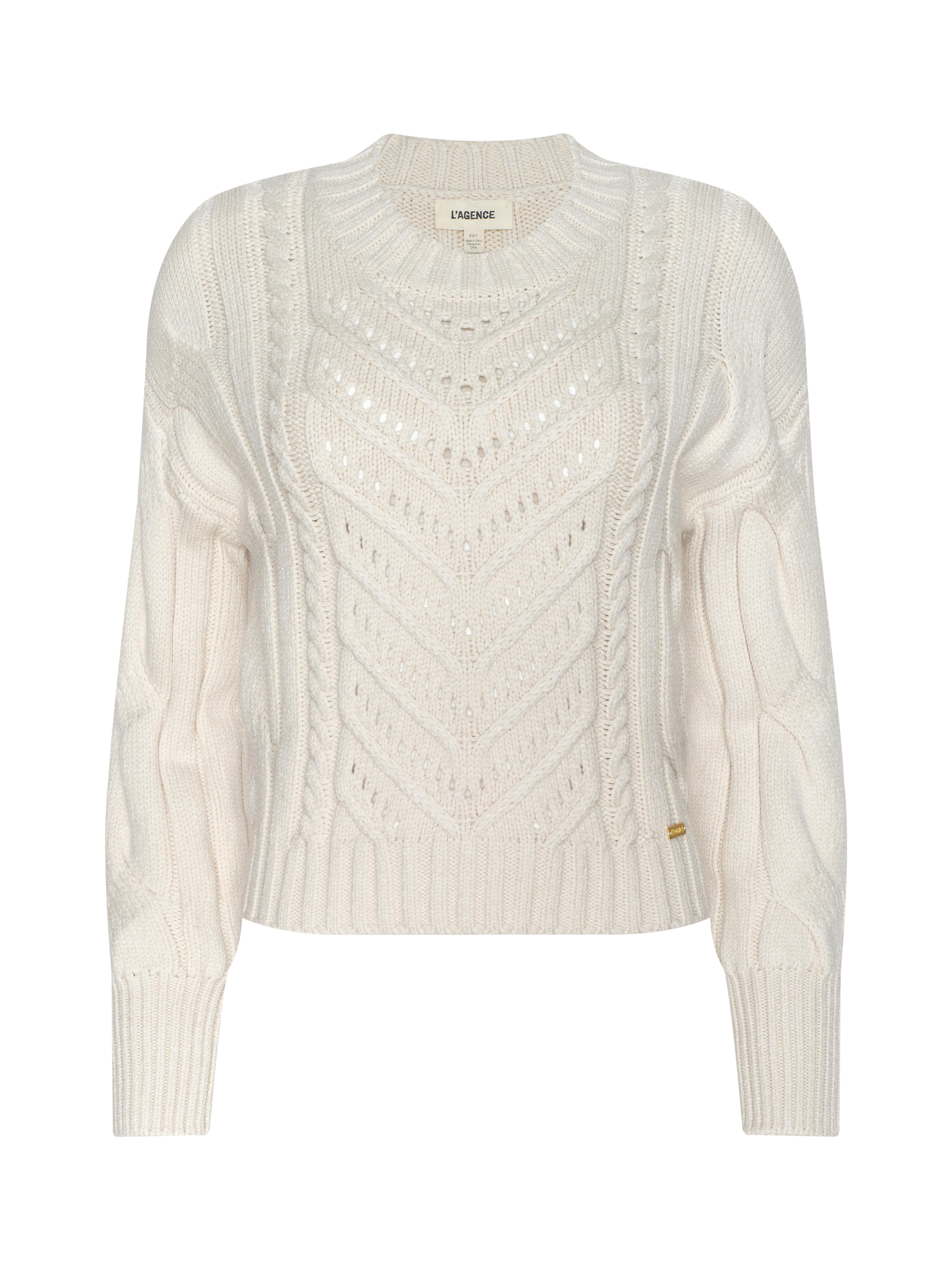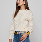 A fresh take on the classic cable knit, the Storm features a boxy shape with intricate stitching that adds texture. Finished with gold button accents at the cuffs, it brings an elevated edge to everyday dressing. Wear the cropped style with high-rise jeans and heels for your next casual night out.
