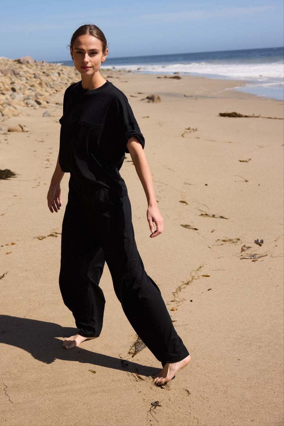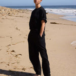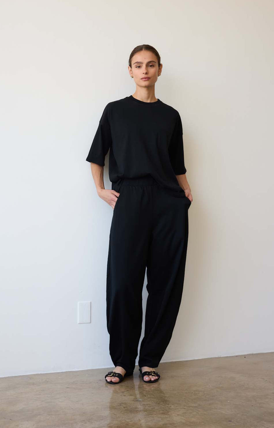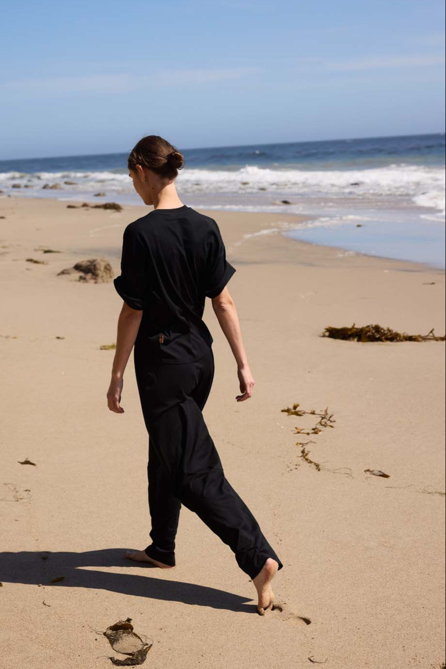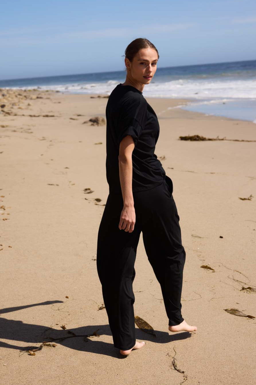 The Arc Lounge Jersey Pant is also offered in our deep Black and matches the Boxy tee perfectly.