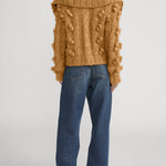 The Bauble Cardigan is crafted from a luxurious mohair blend, featuring playful pom-pom detailing, horn buttons, and a soft shawl effect for a cozy yet sophisticated finish.