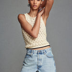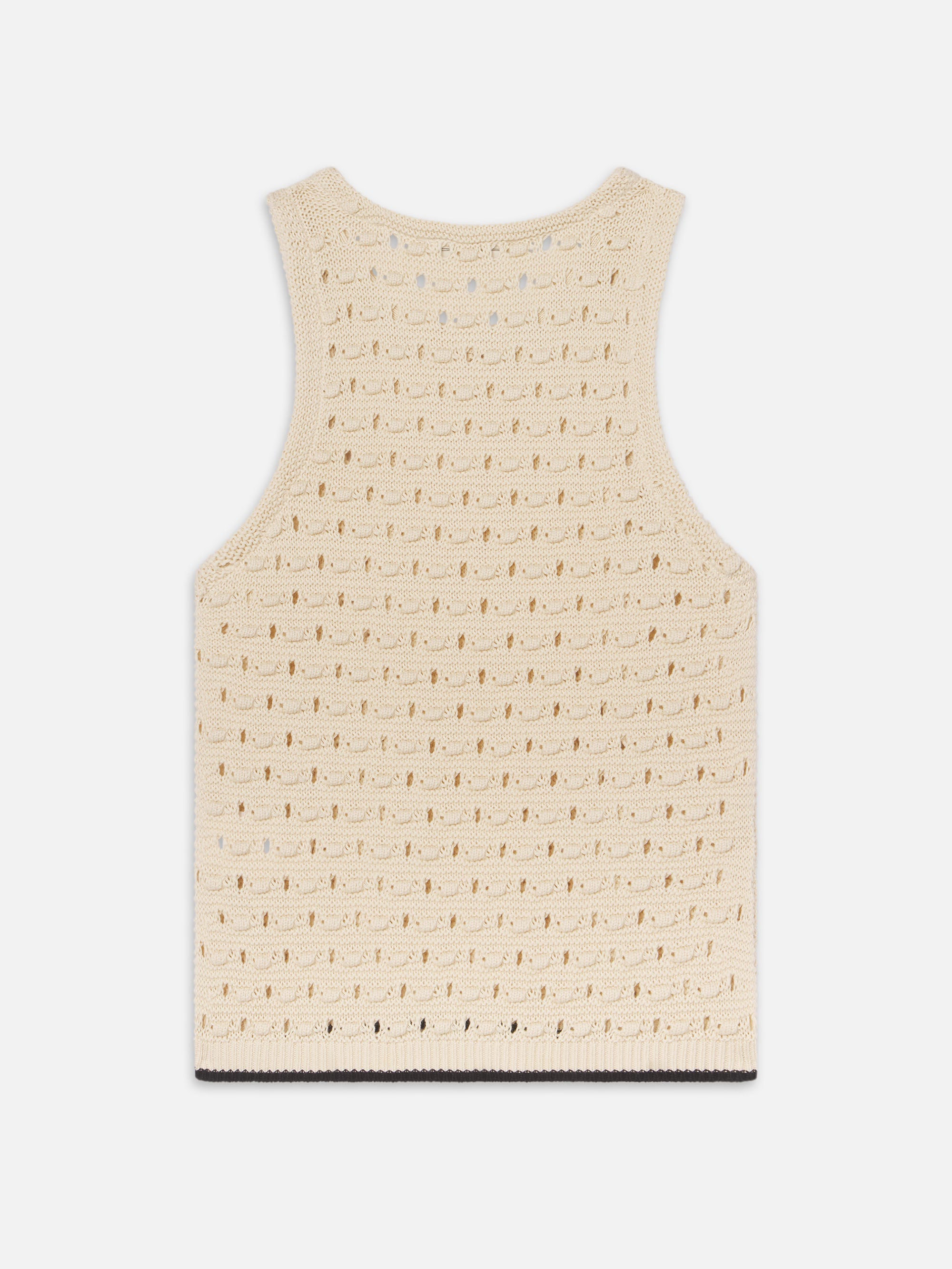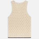 Our signature Bauble texture—lightweight, airy, and dimensional—features pointelle openwork made for warm days. Designed with a scoop neckline and contrast hem, this tank forms a matching set with The Bauble Skirt, or pairs with denim for quiet charm and vintage ease.