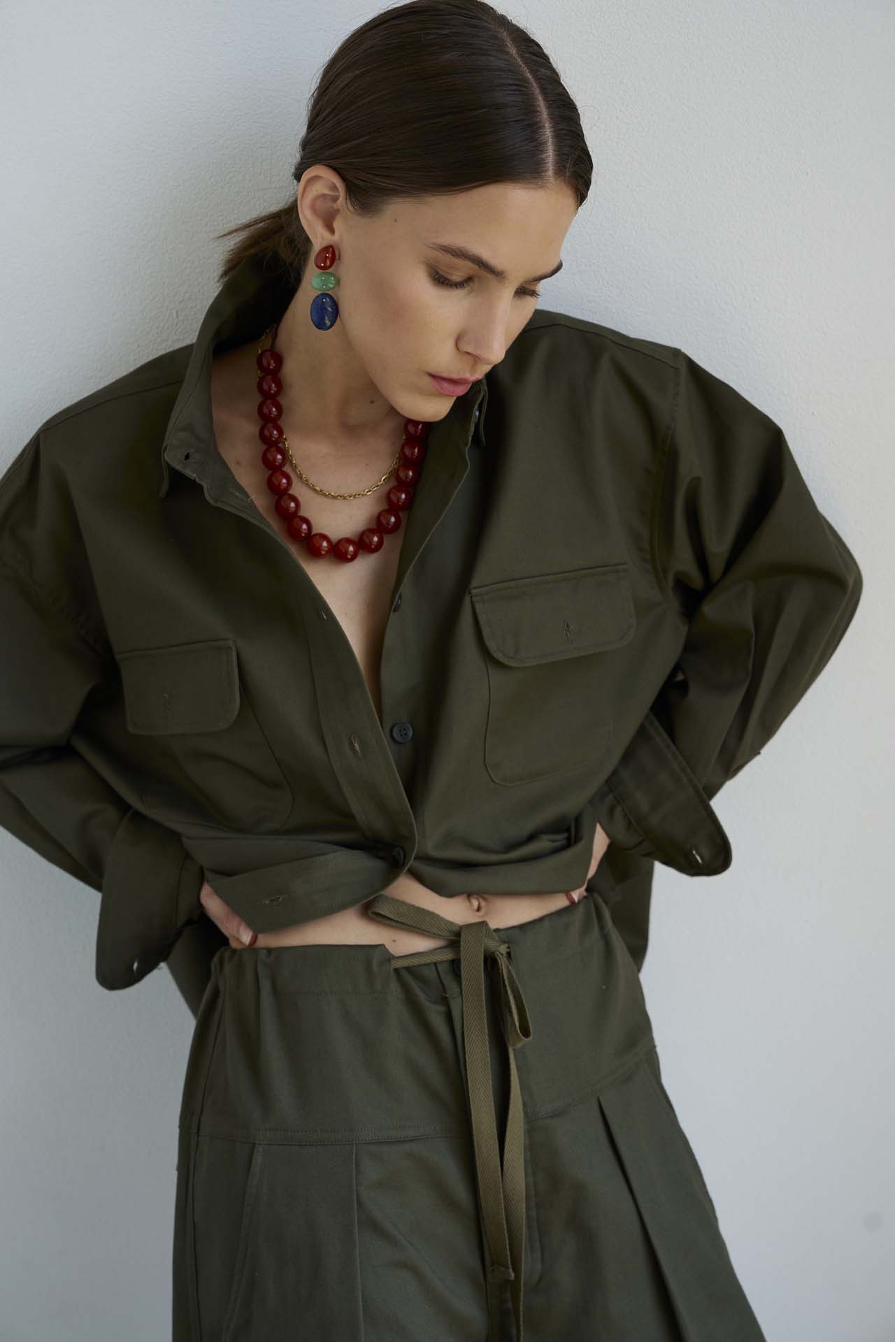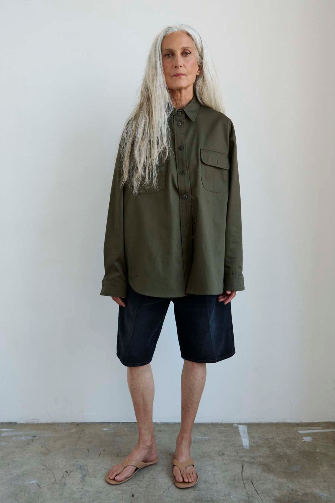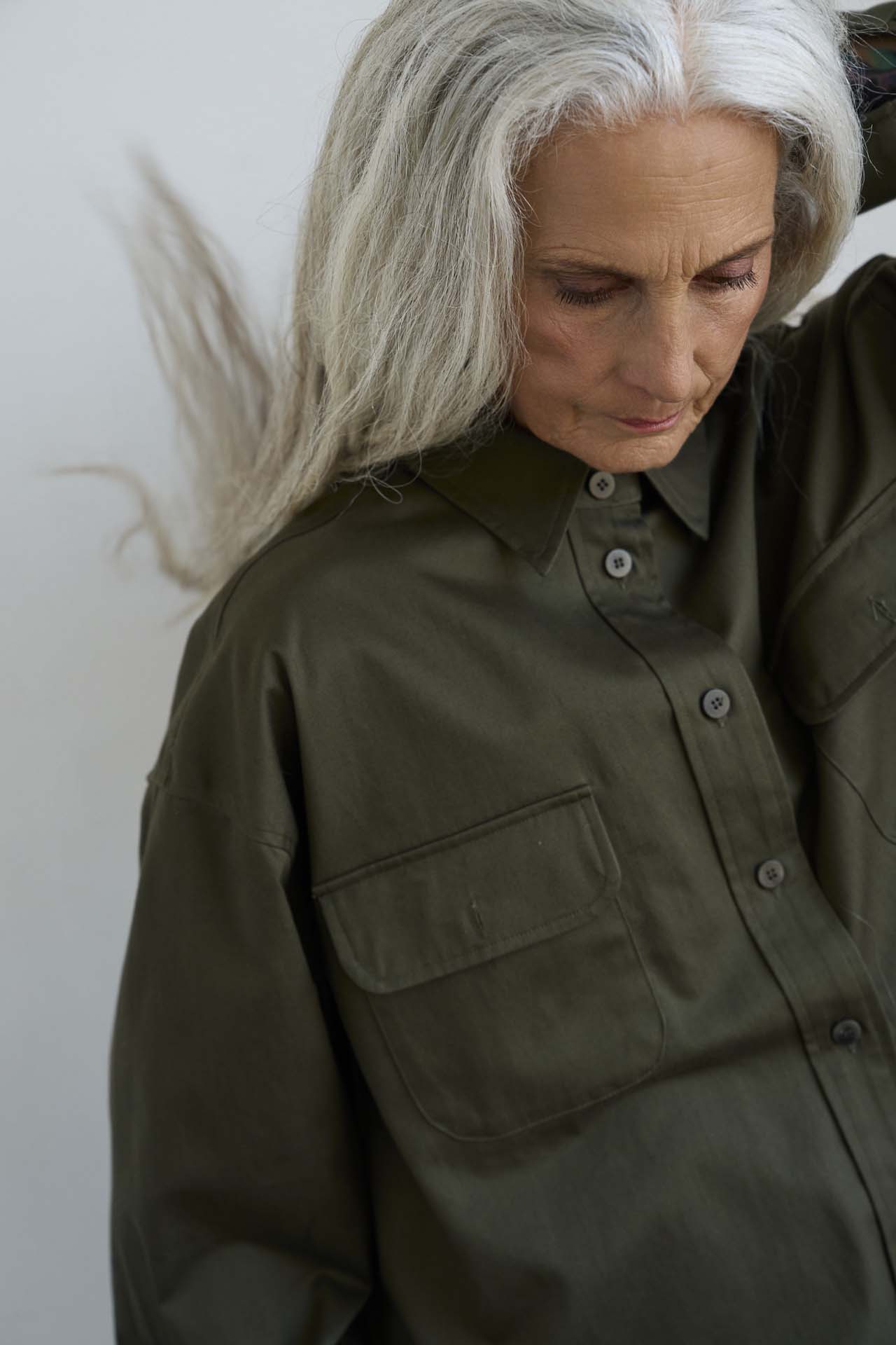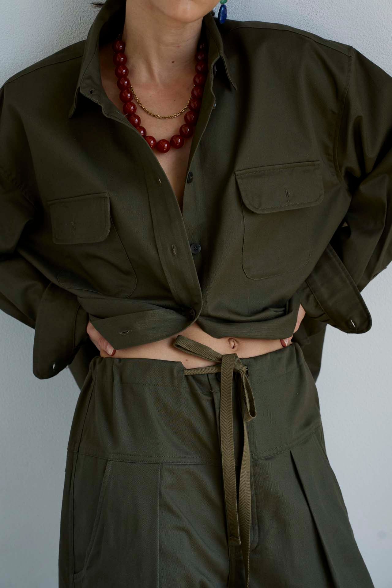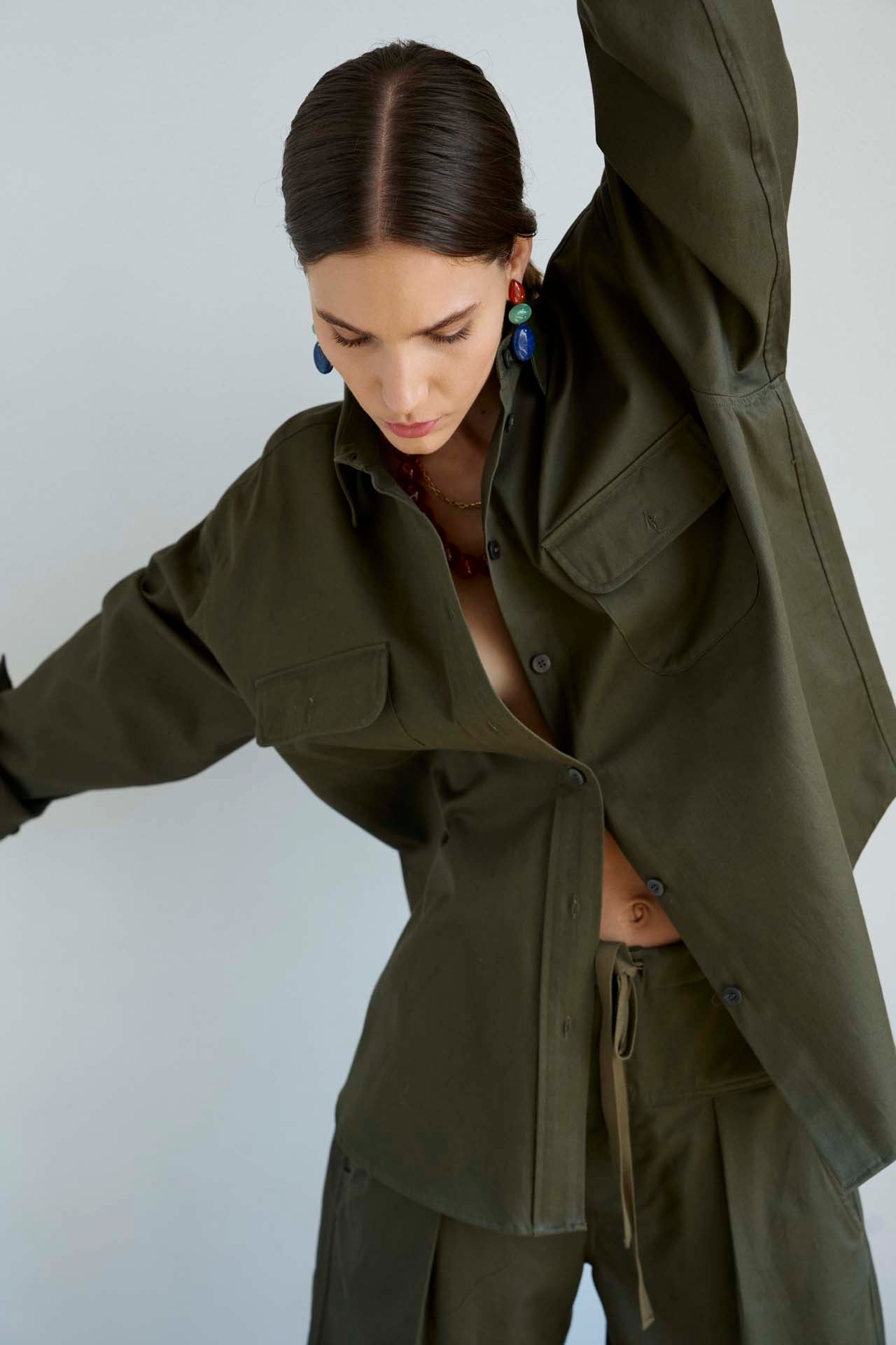 Inspired by the biggest shirt I could find, a military meets workwear type of shirt. It falls, drapes, and collapses around the body effortlessly. The big shirt can be worn opened, closed, buttoned (or not) and as an effortless layer. Modern, casual and easy.