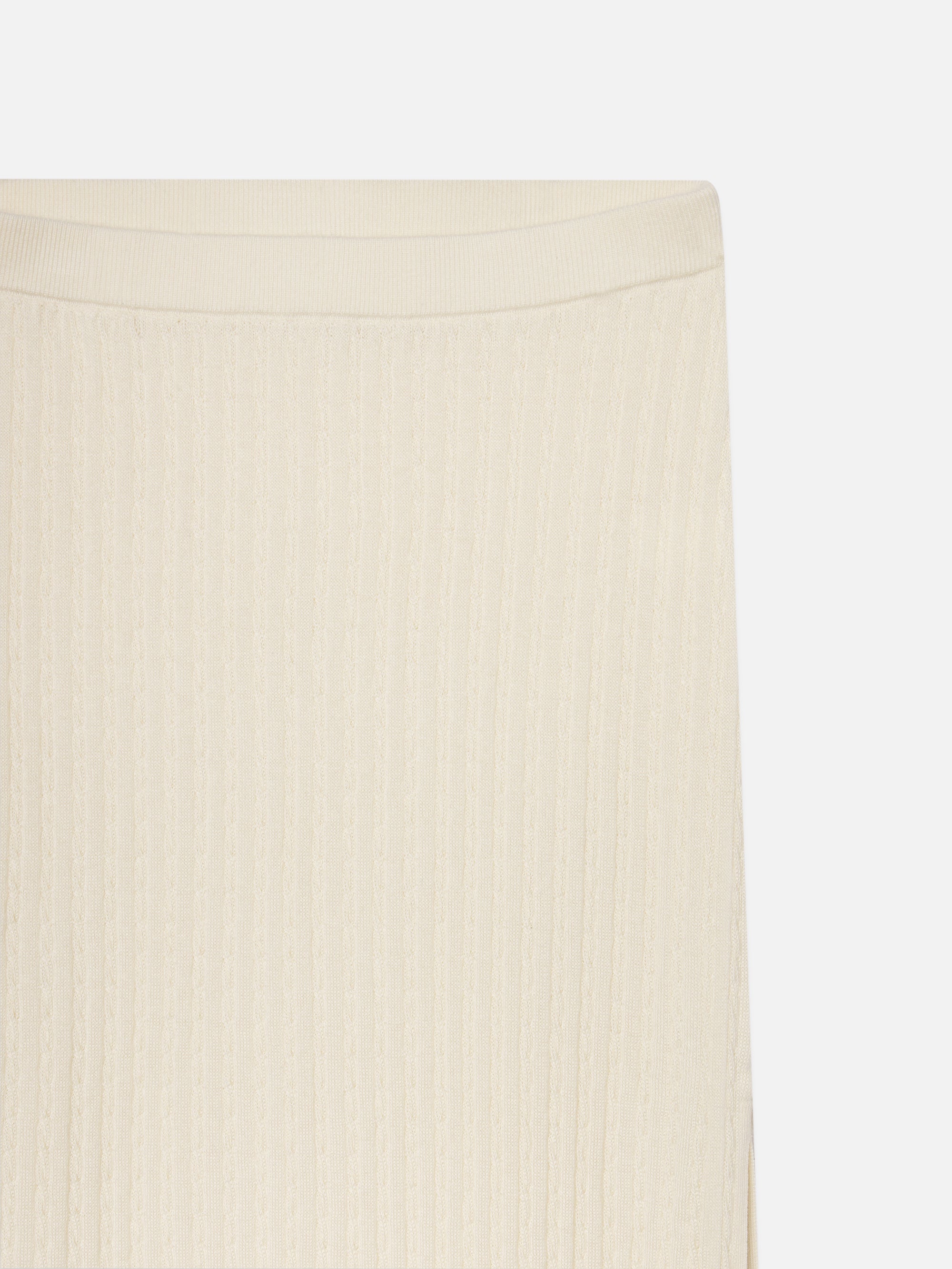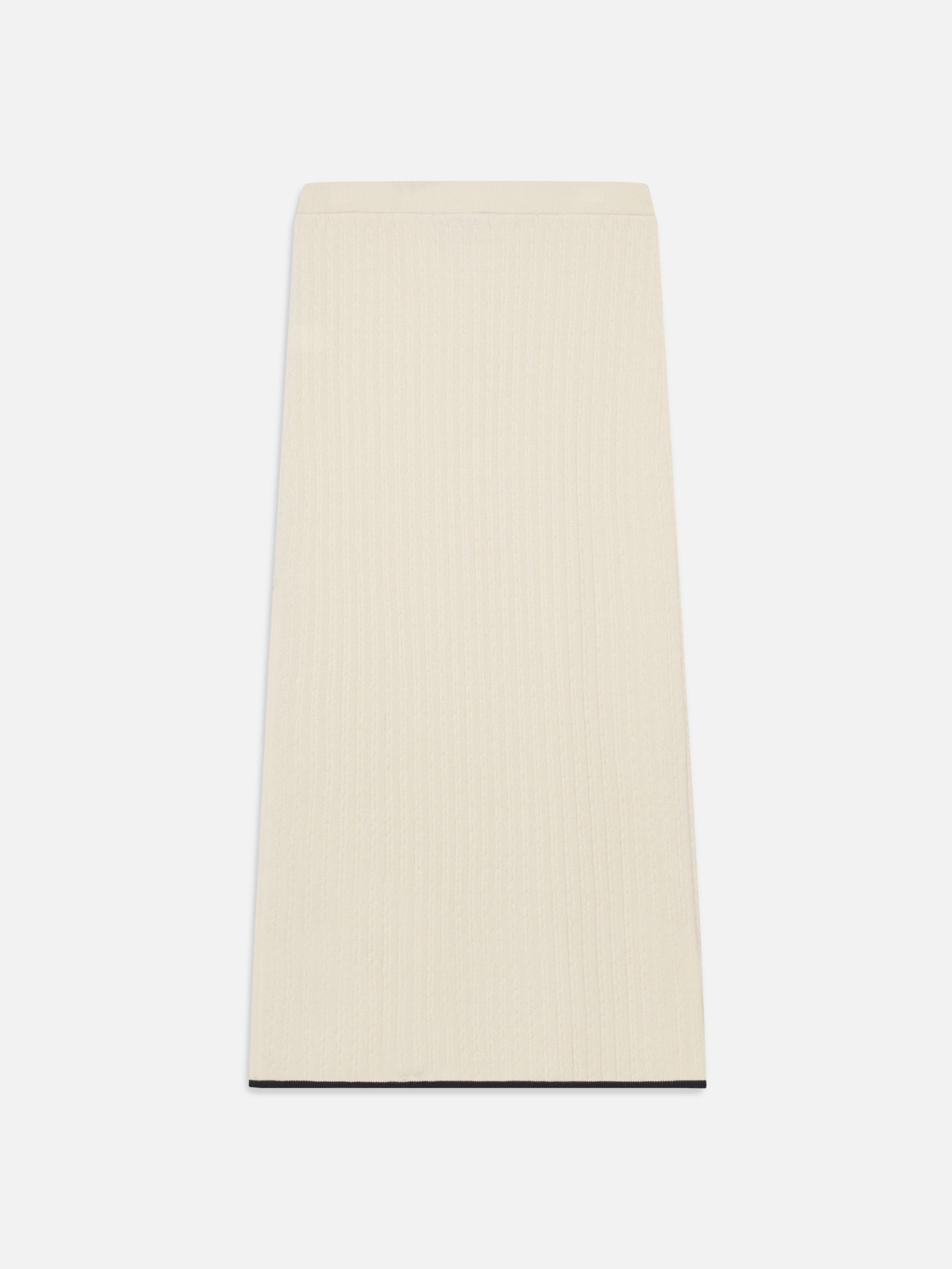 Lounge-adjacent, but not lounging around. This skirt is knit from a rich cashmere-silk blend with an elastic waist and tactile cable stitch. Slip into it and relax, or dress it up—especially with the coordinating Cable Tank.