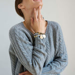 3 end Mongolian cashmere knit into a satorial cable in my favorite V neck sweater. An iconic shape, inspired by my coveted 25 year old YSL mens V. The sweater was washed for a “like butter” hand feel that becomes a second skin.