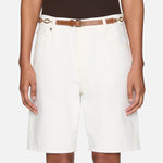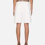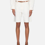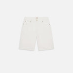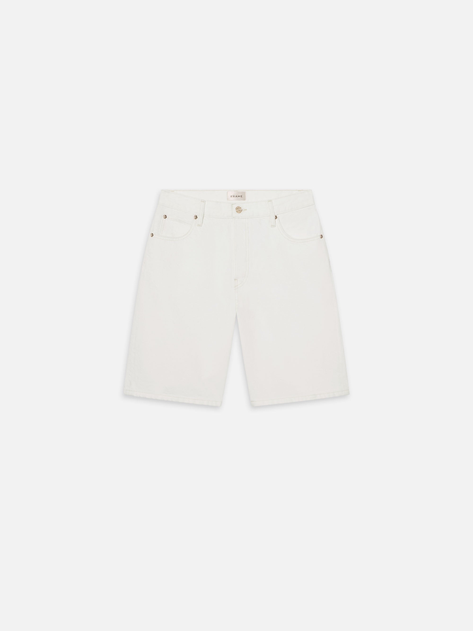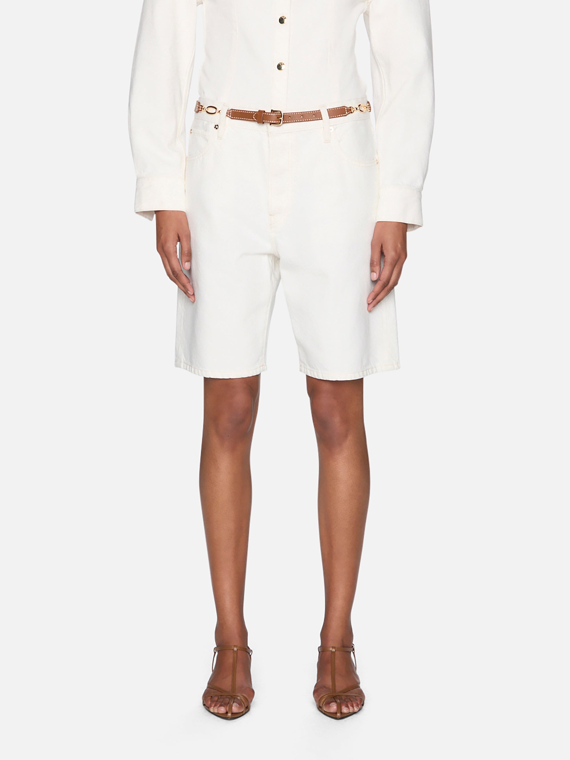 The Leisure Short makes a case for denim at the office. Mid-rise with a relaxed fit and raw hem that grazes the knee. Cut from rigid denim in Au Natural Clean—an off-white ecru wash with quiet structure. It's the pair that's smart with a blazer, and easy without.
