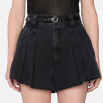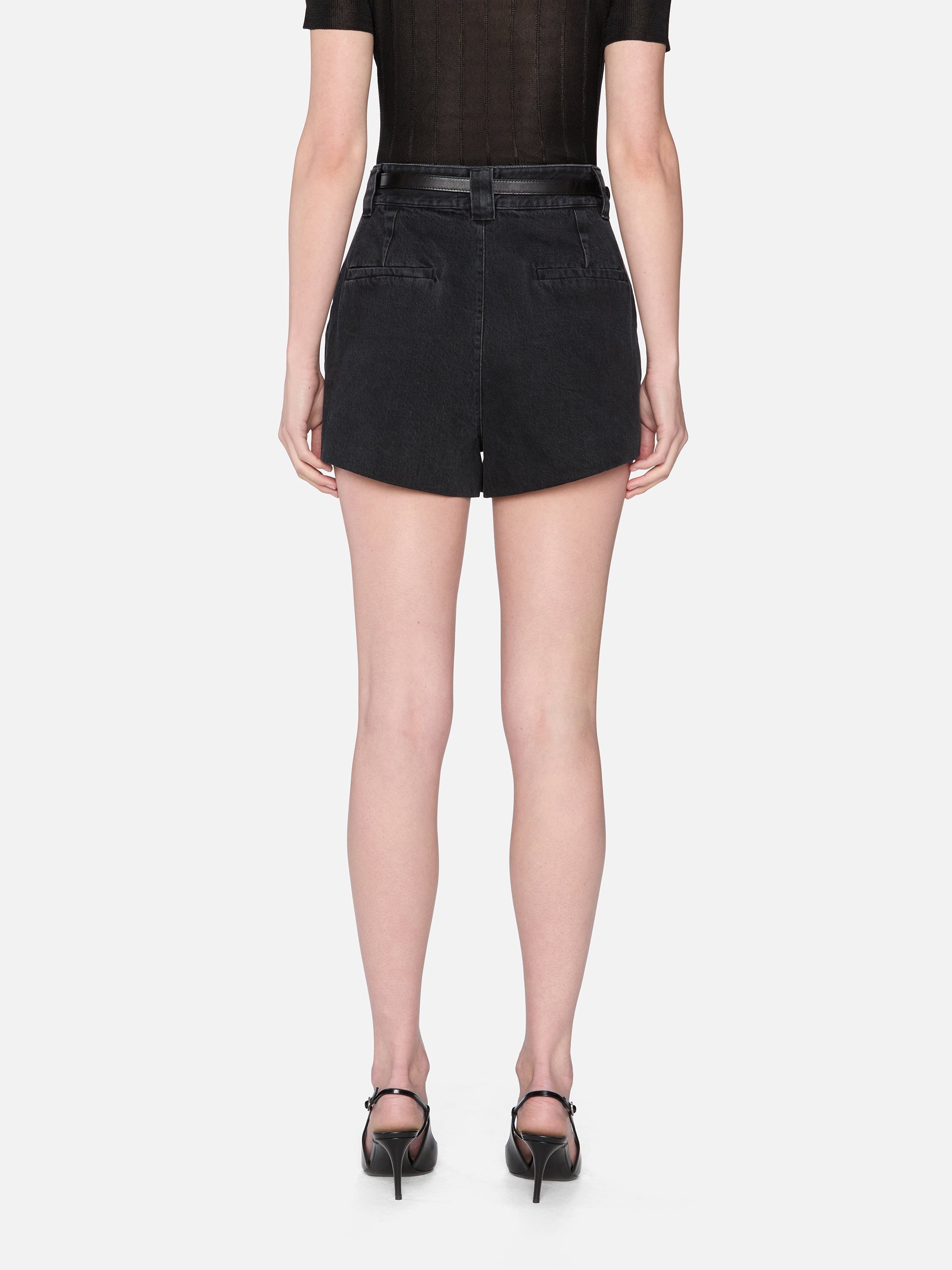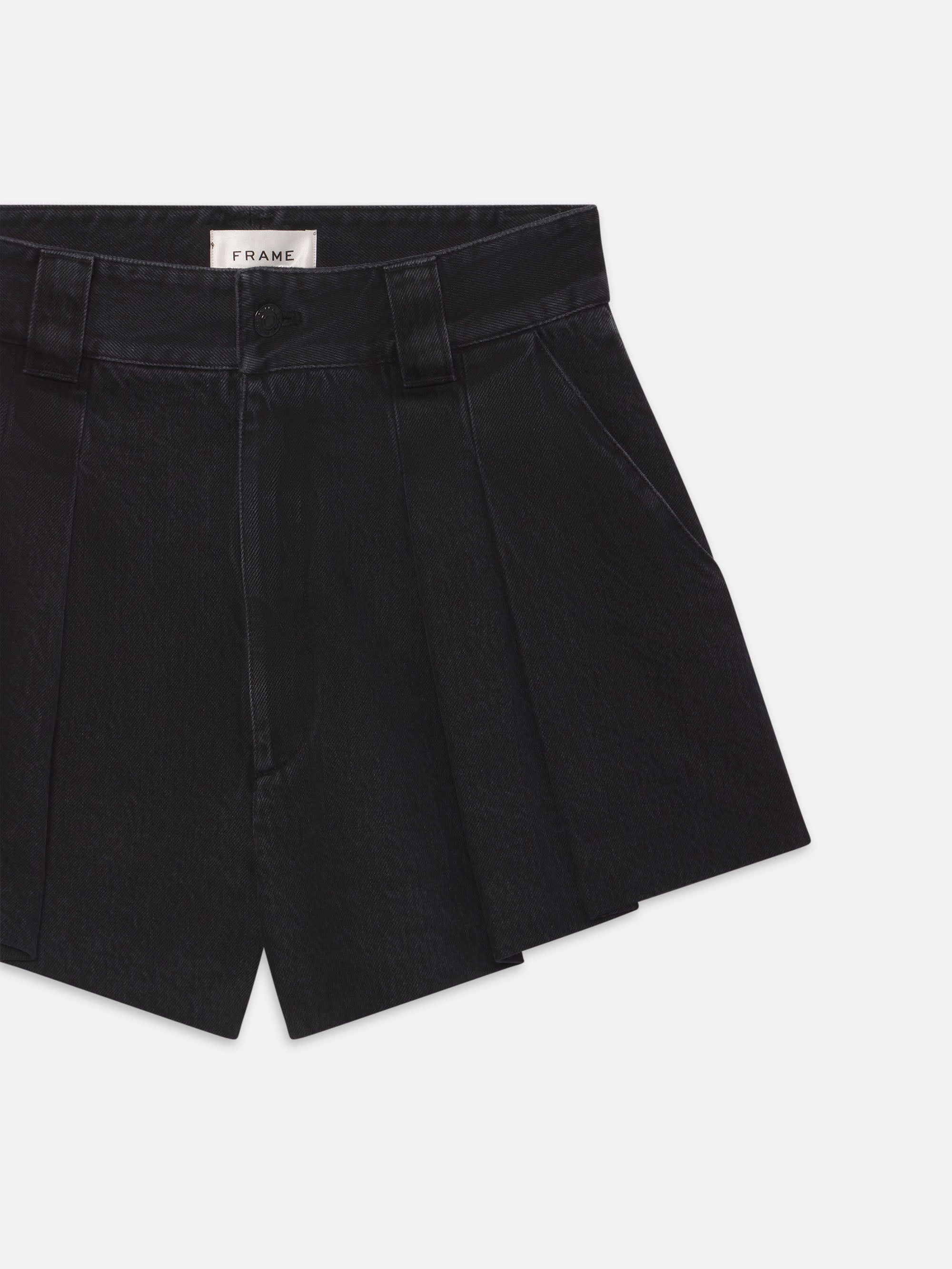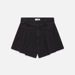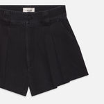 Crisp pleats form a structural silhouette. The high-rise short is crafted from 100% cotton in classic black denim, with an A-line fit that flares just enough. Tailored but easy—wear it with everything from tanks to poplin shirting.