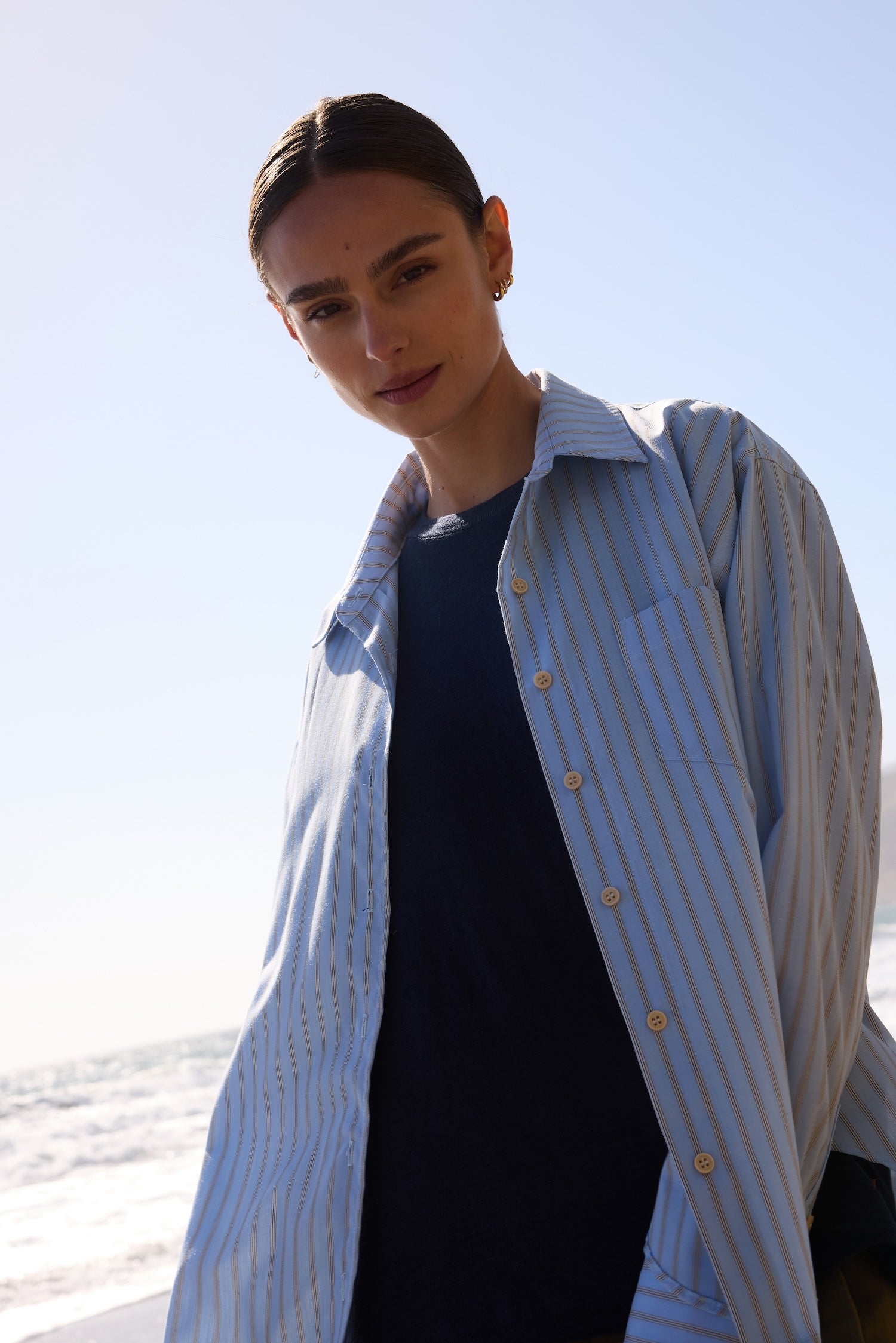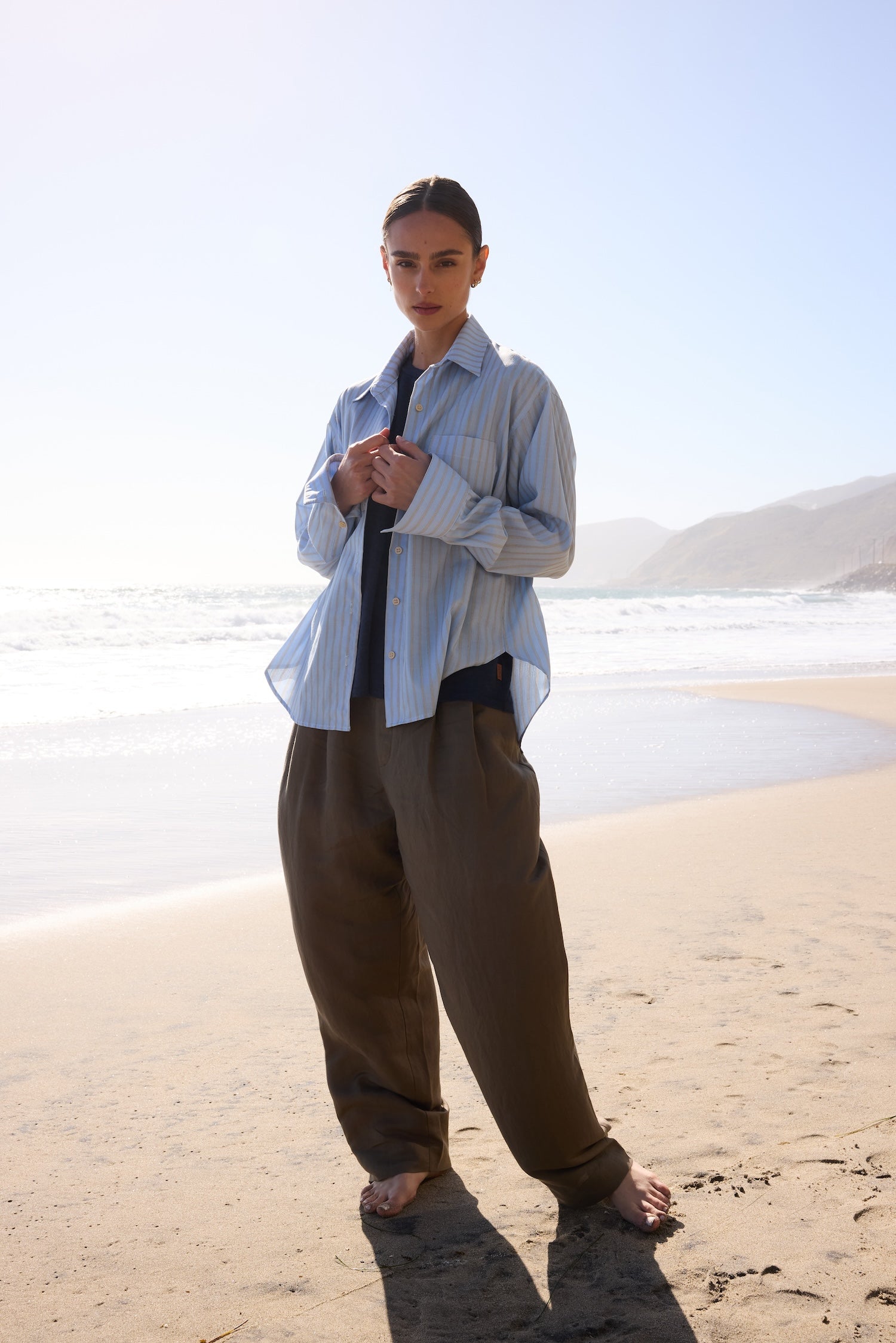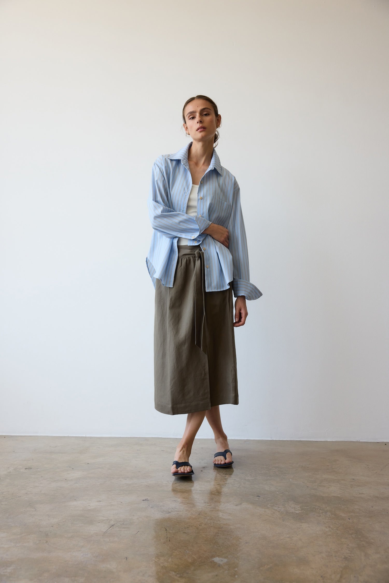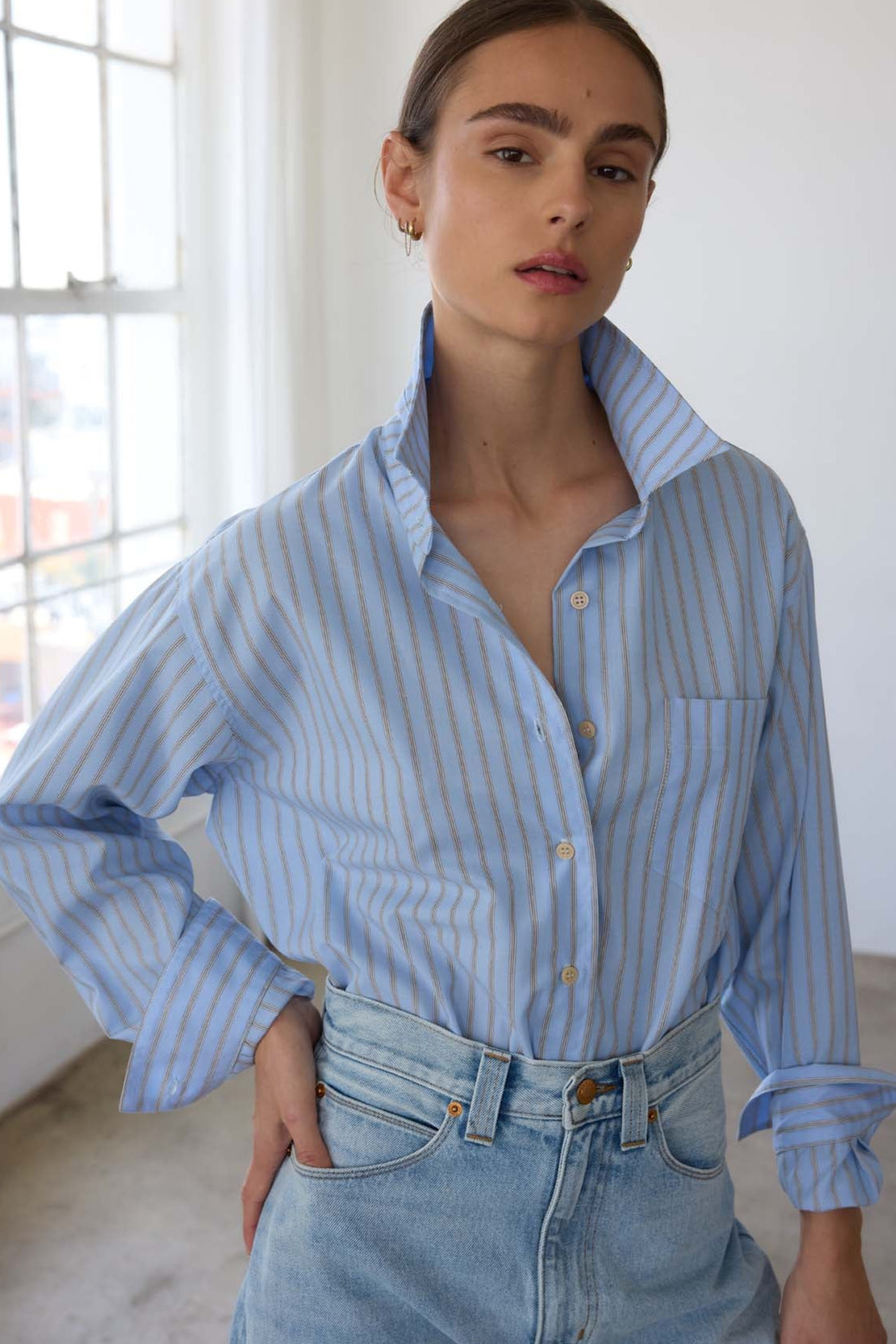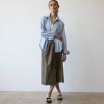 A shirt after my own heart, based on a shirt from my husband’s closet, a men’s style staple I steal over and over. A shirt with width enough to billow open when buttoned down to that perfect place on the breastbone. Fit loose for an effortless appeal but tailored with structured enough to look pulled together.