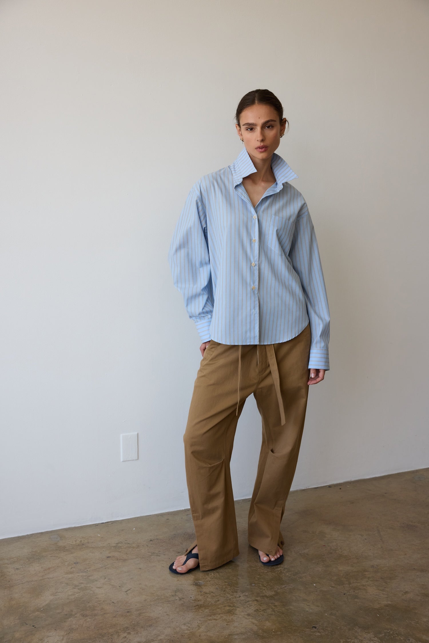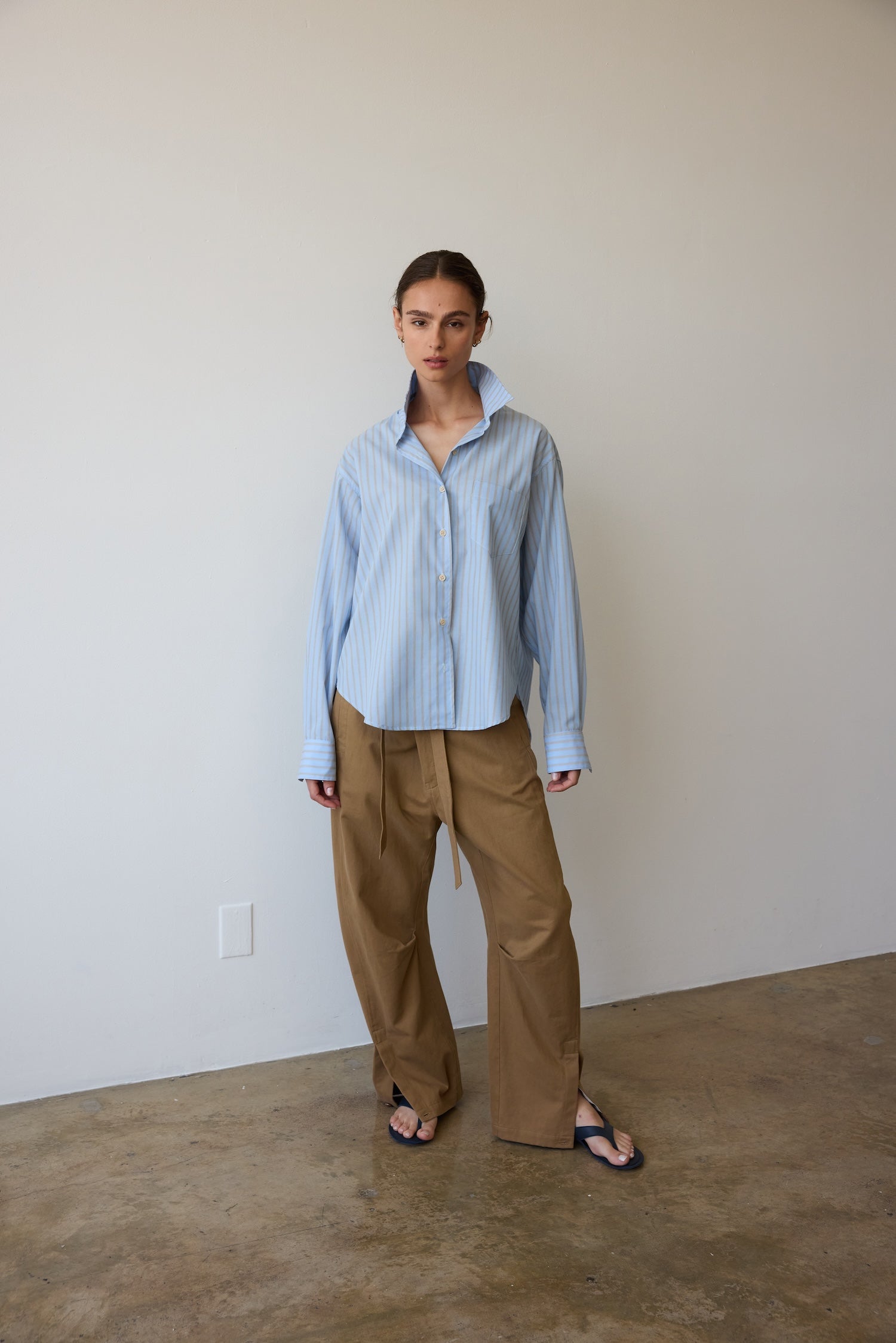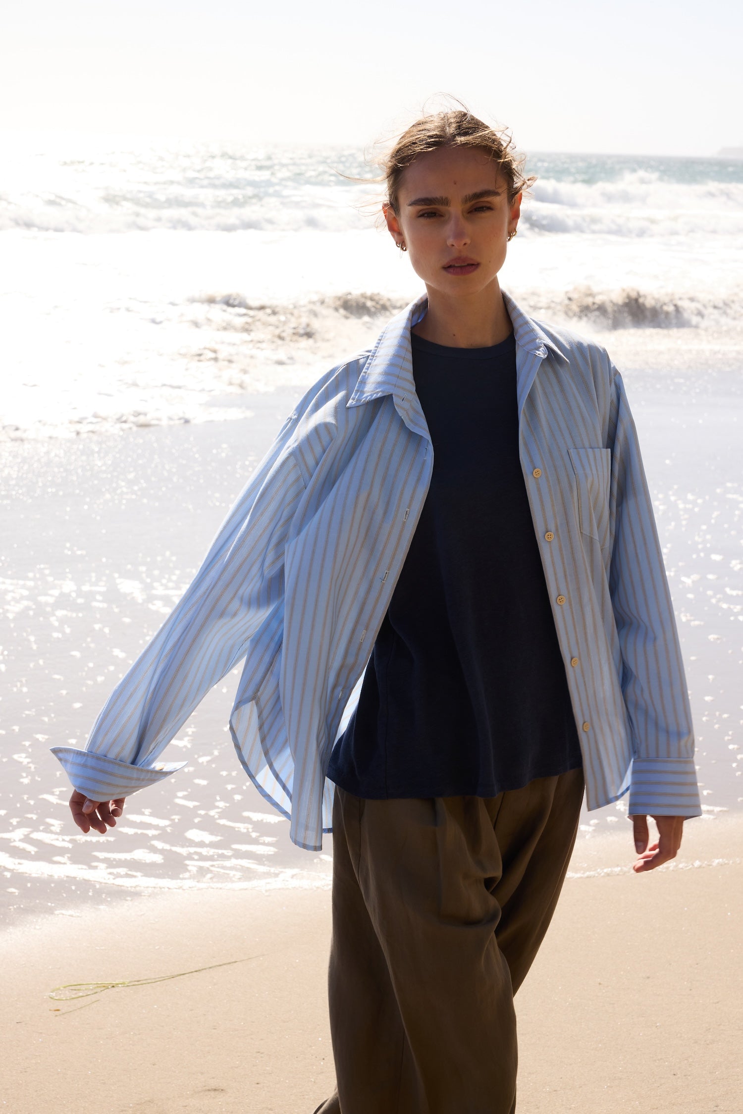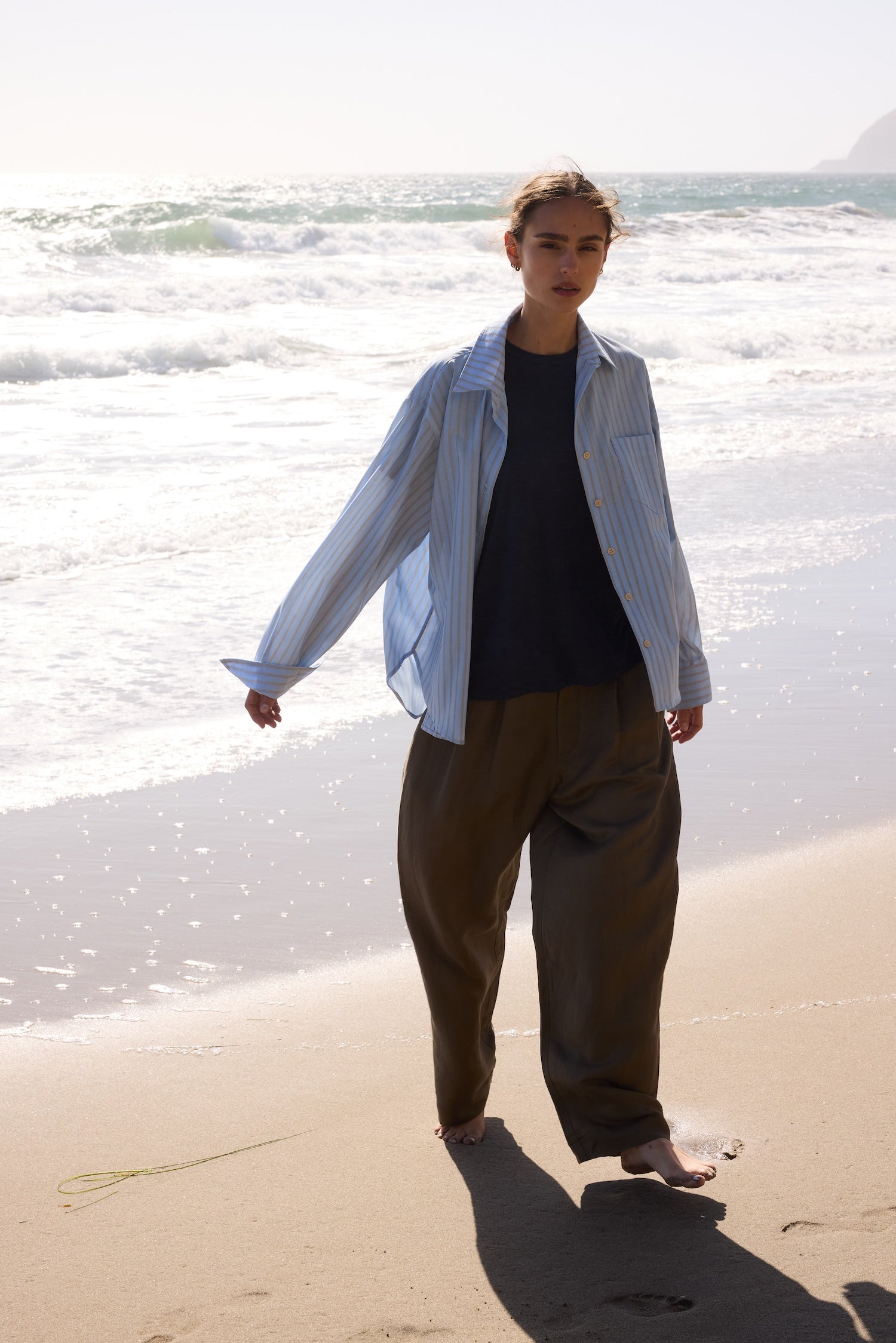 A shirt after my own heart, based on a shirt from my husband’s closet, a men’s style staple I steal over and over. A shirt with width enough to billow open when buttoned down to that perfect place on the breastbone. Fit loose for an effortless appeal but tailored with structured enough to look pulled together.