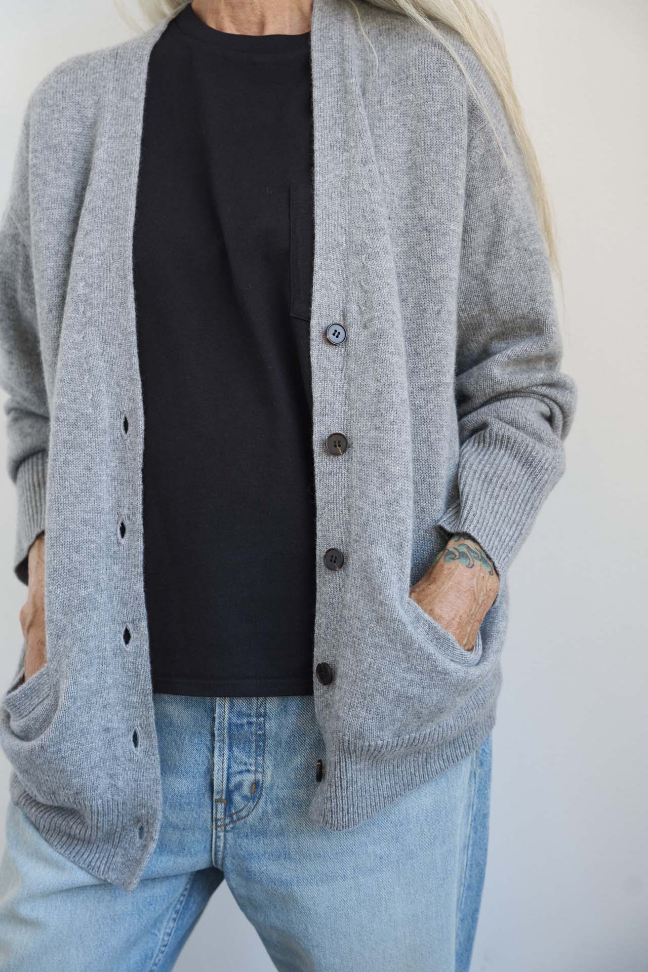 Jamie Haller - The Welt Pocket Cashmere Cardigan in Light Heather