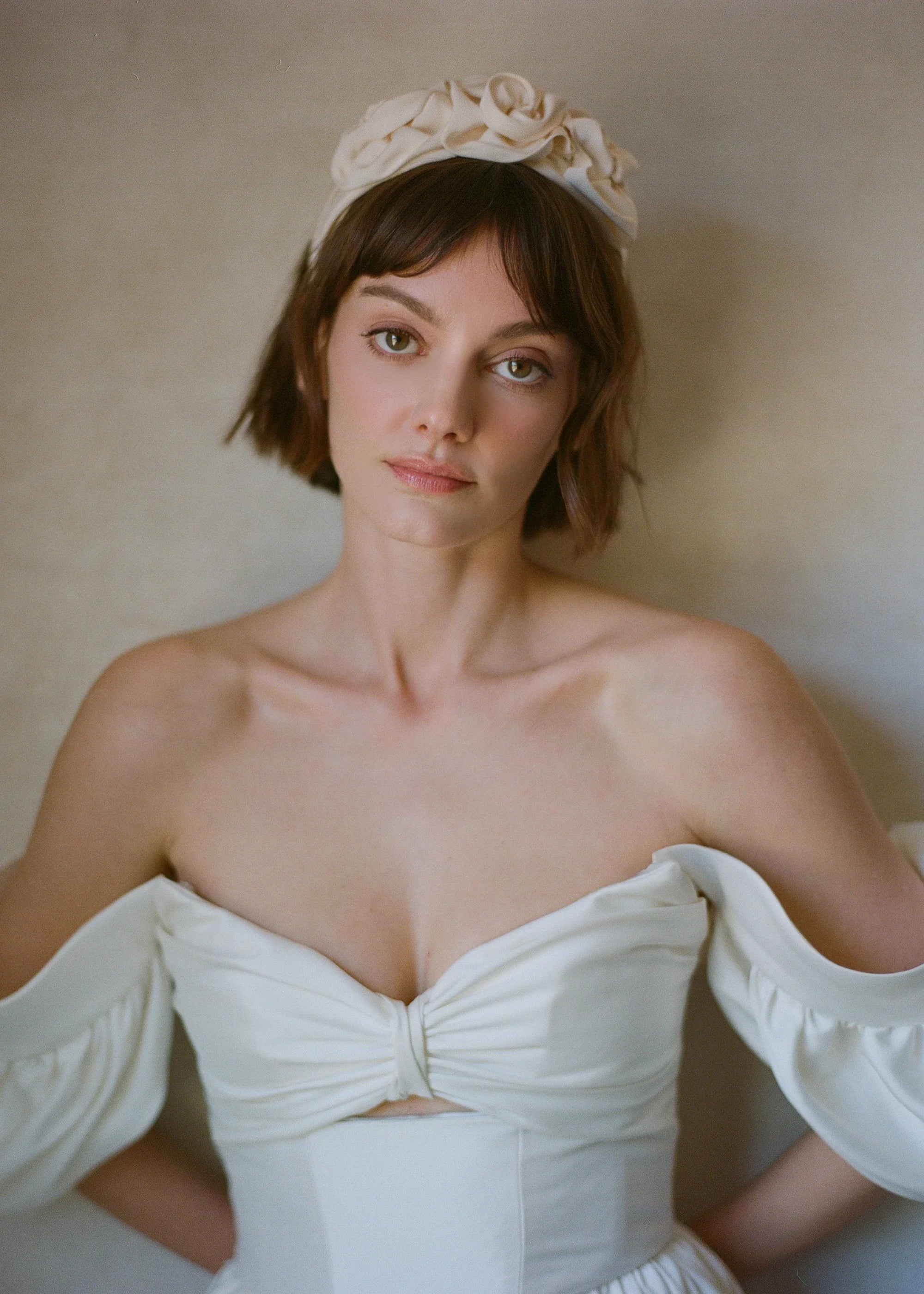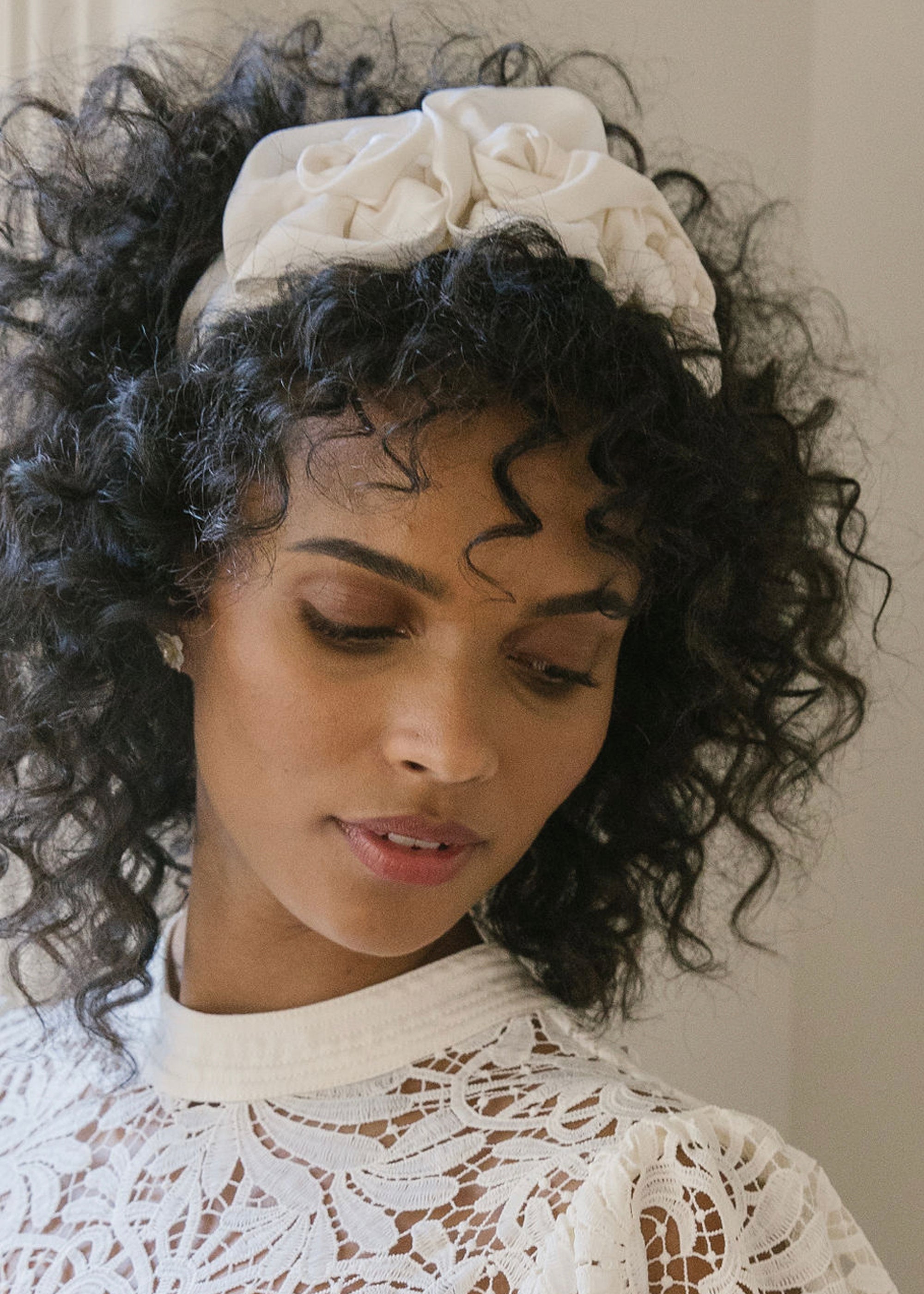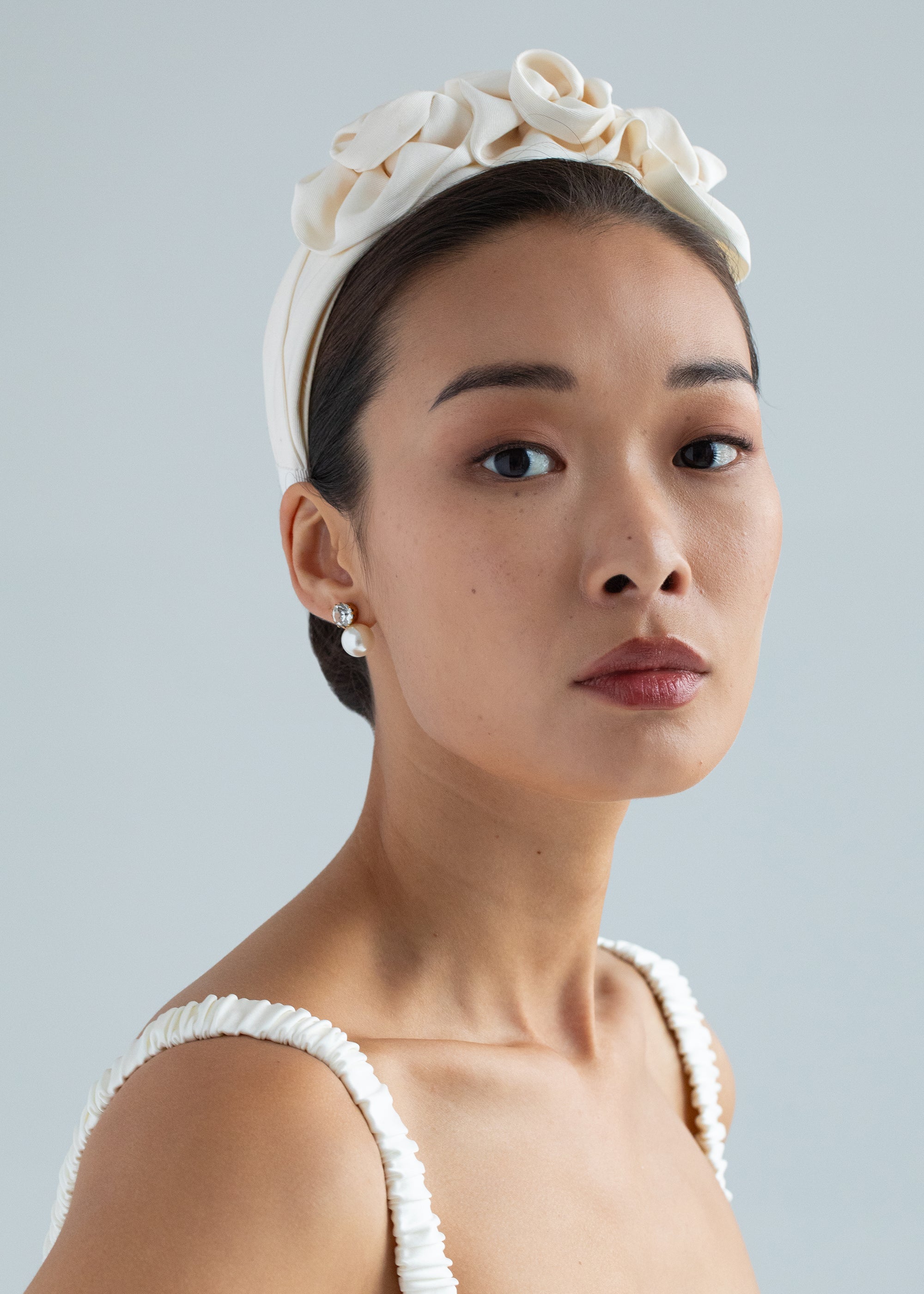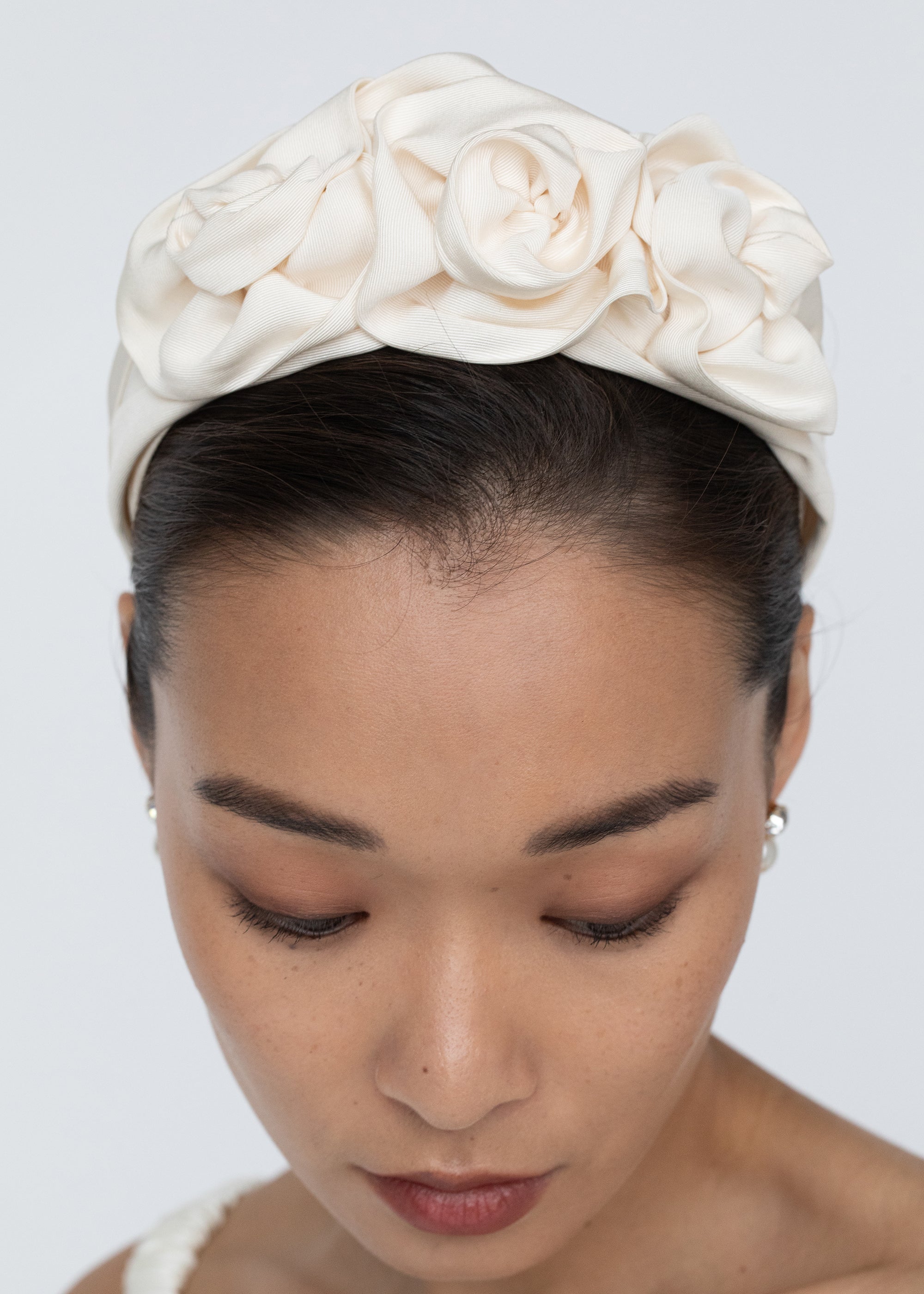 Jennifer Behr - Triple Rosette Headband in Silk Faille -- Cream