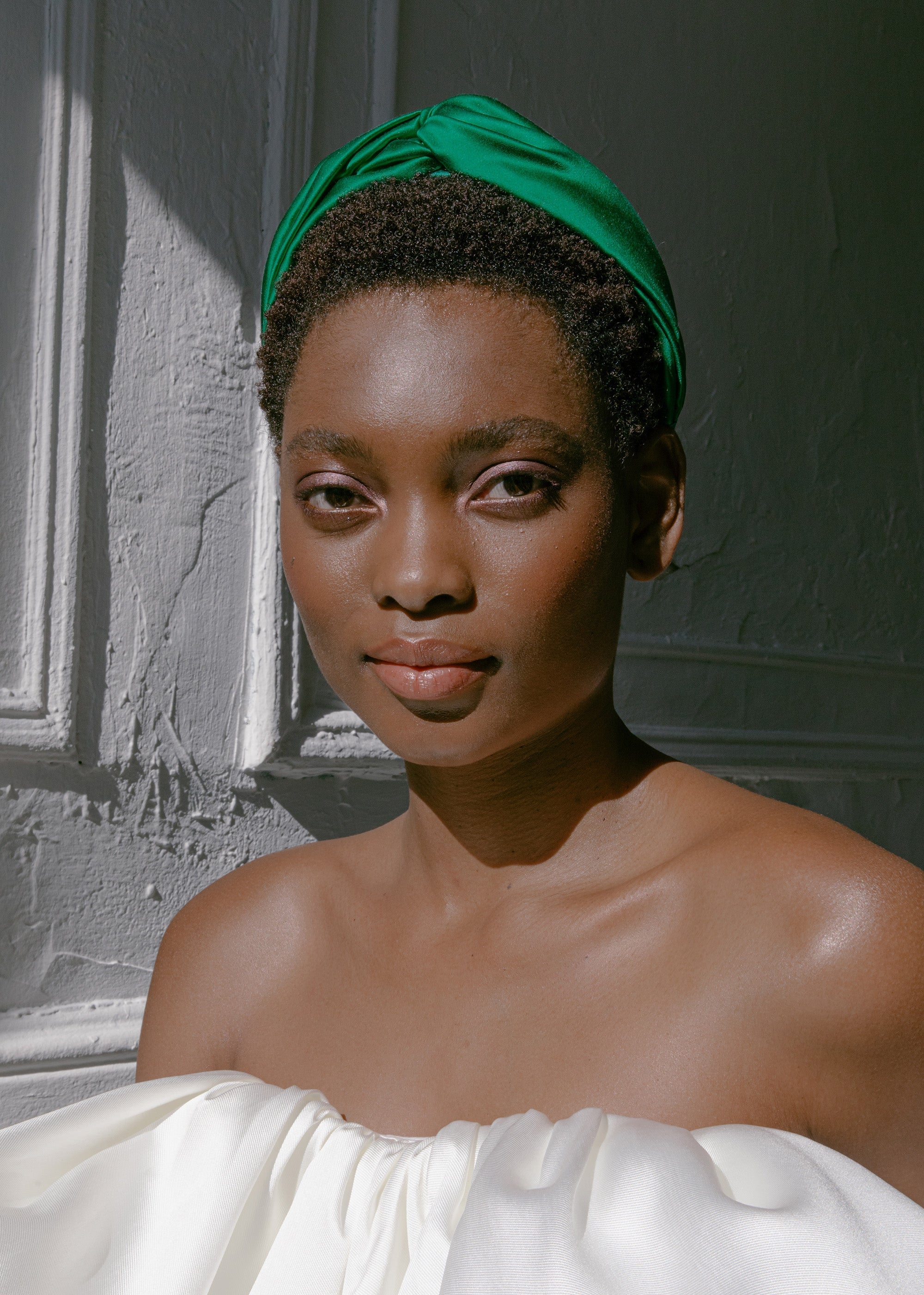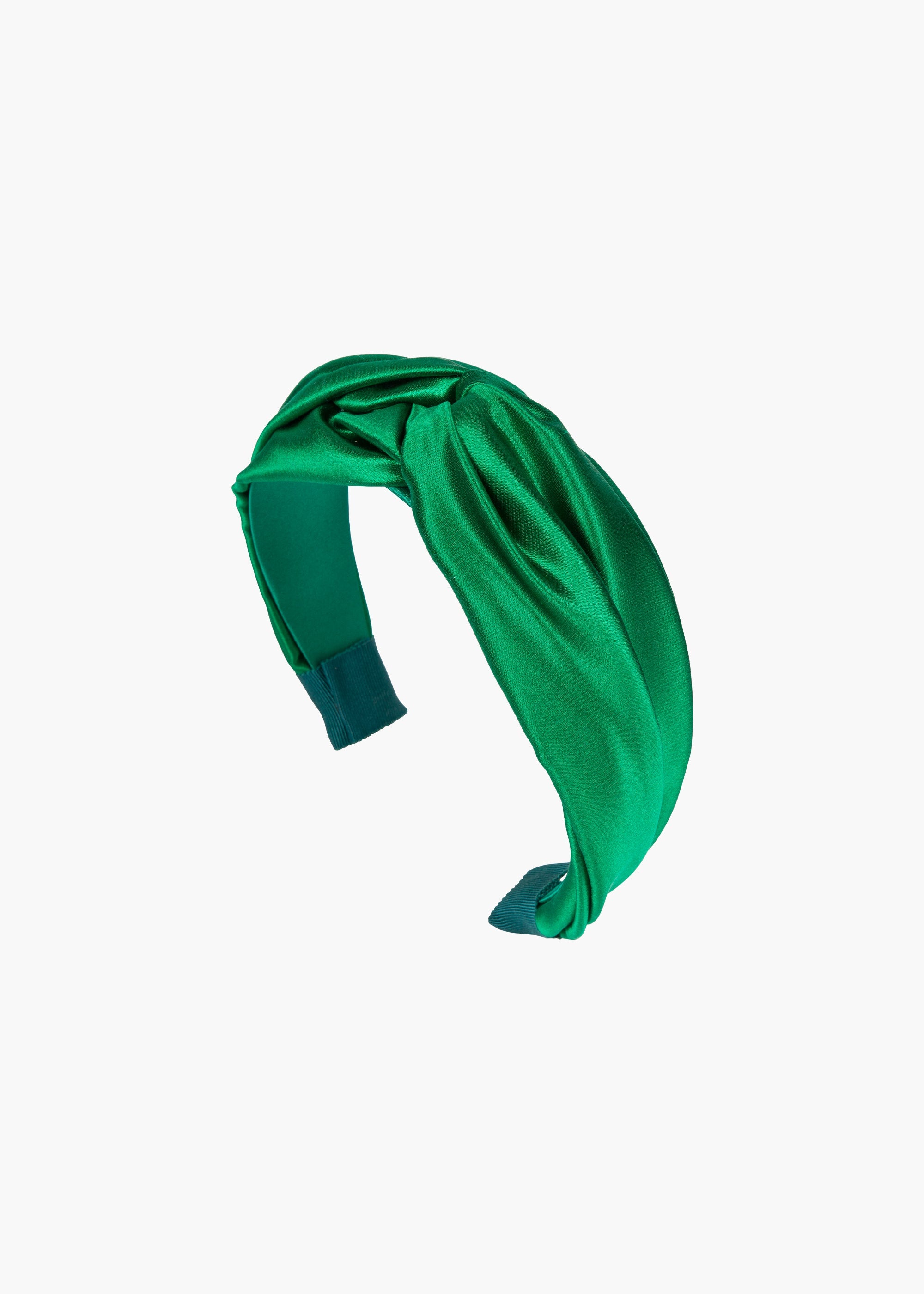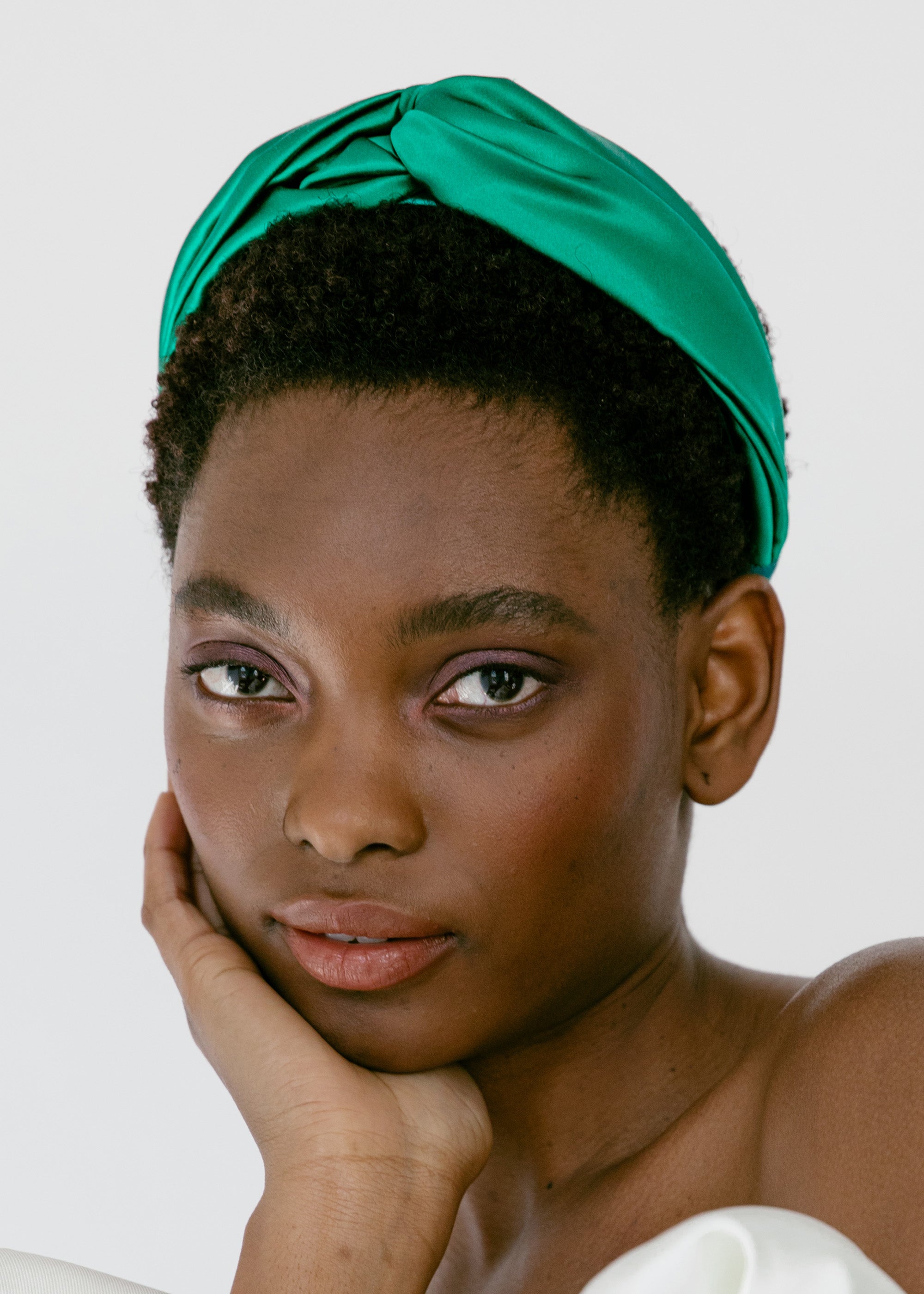 Jennifer Behr - Twist Headband in Silk Satin -- Emerald