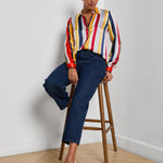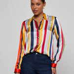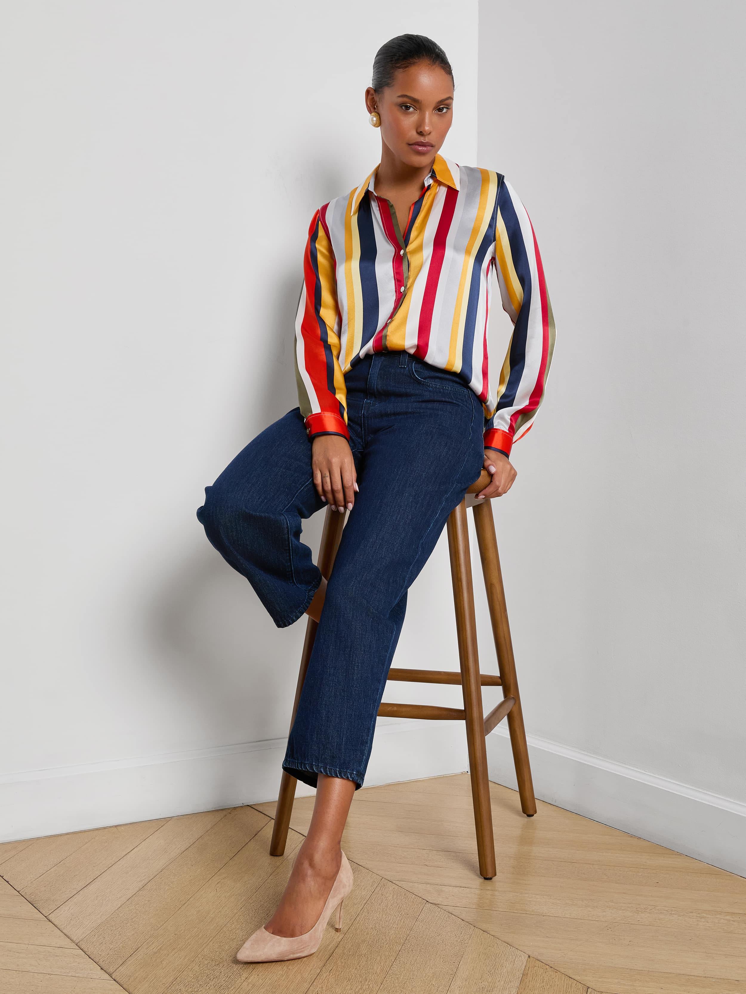 Meet the iconic long-sleeve silk button-down that belongs in every wardrobe. This L'AGENCE bestseller is now back in a bright multi-colored stripe.