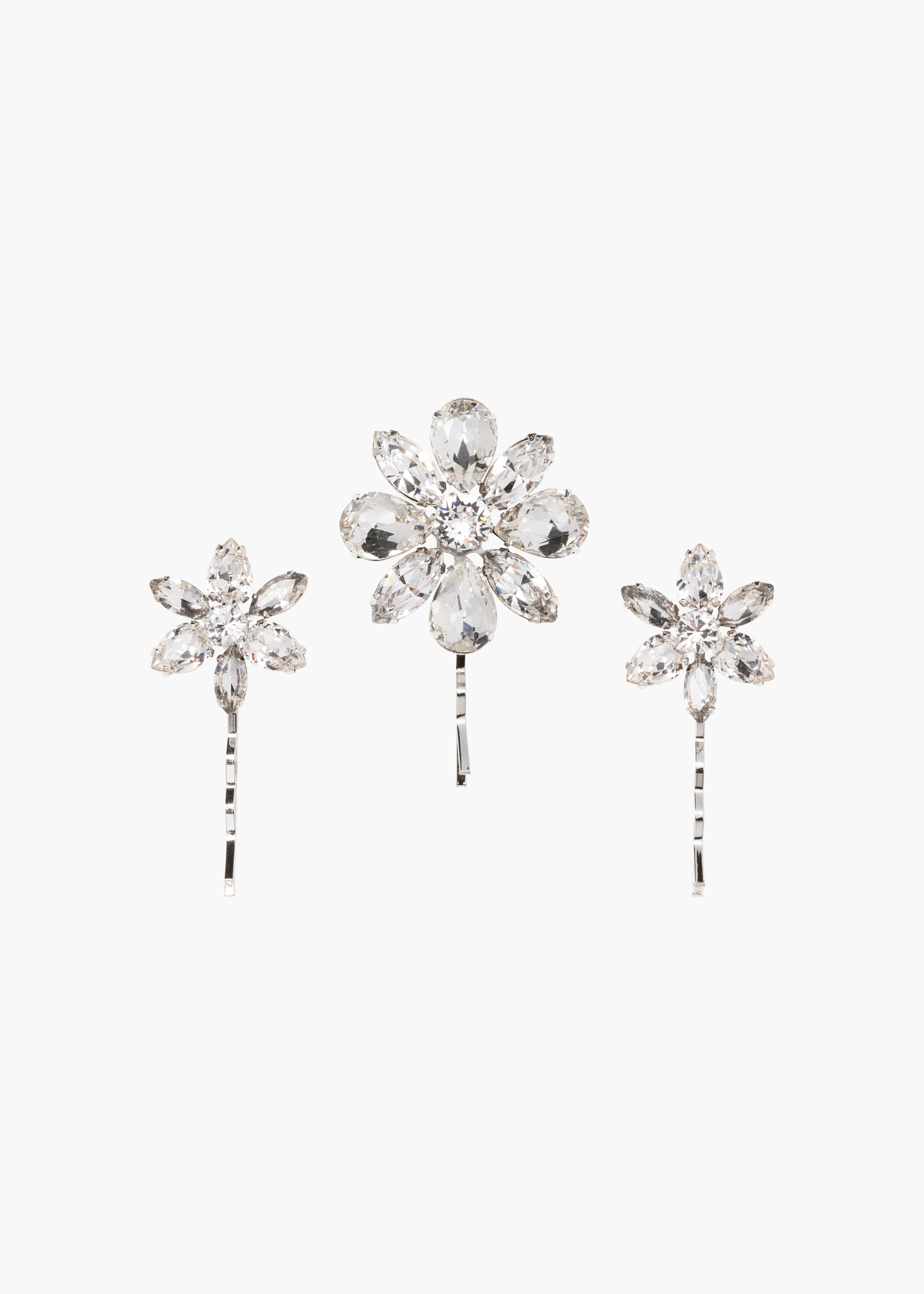 The Vada Bobby Pins make any look feel special. This set of three pins features crown-worthy crystals, backed by sturdy bobby pins to maintain secure placement in the hair. Layer multiple sets at once for a bespoke statement look.