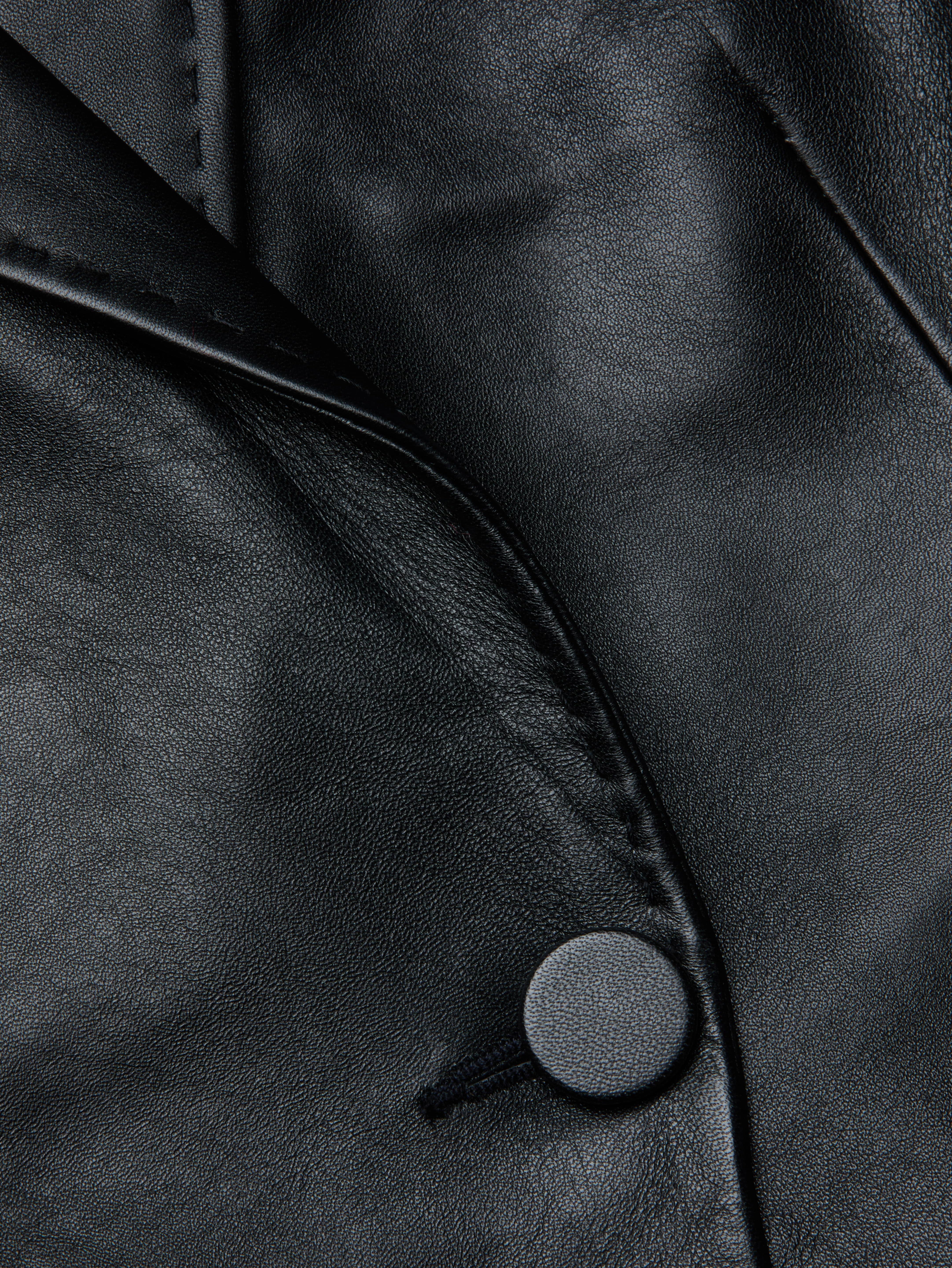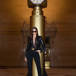 This style was featured in our Fall ‘25 NYFW presentation. The Vashti leather blazer is drama, delivered. Statement fringe creates nonstop movement and instant impact. A crisp lapel and single-button closure grounds its look with structure and polish.