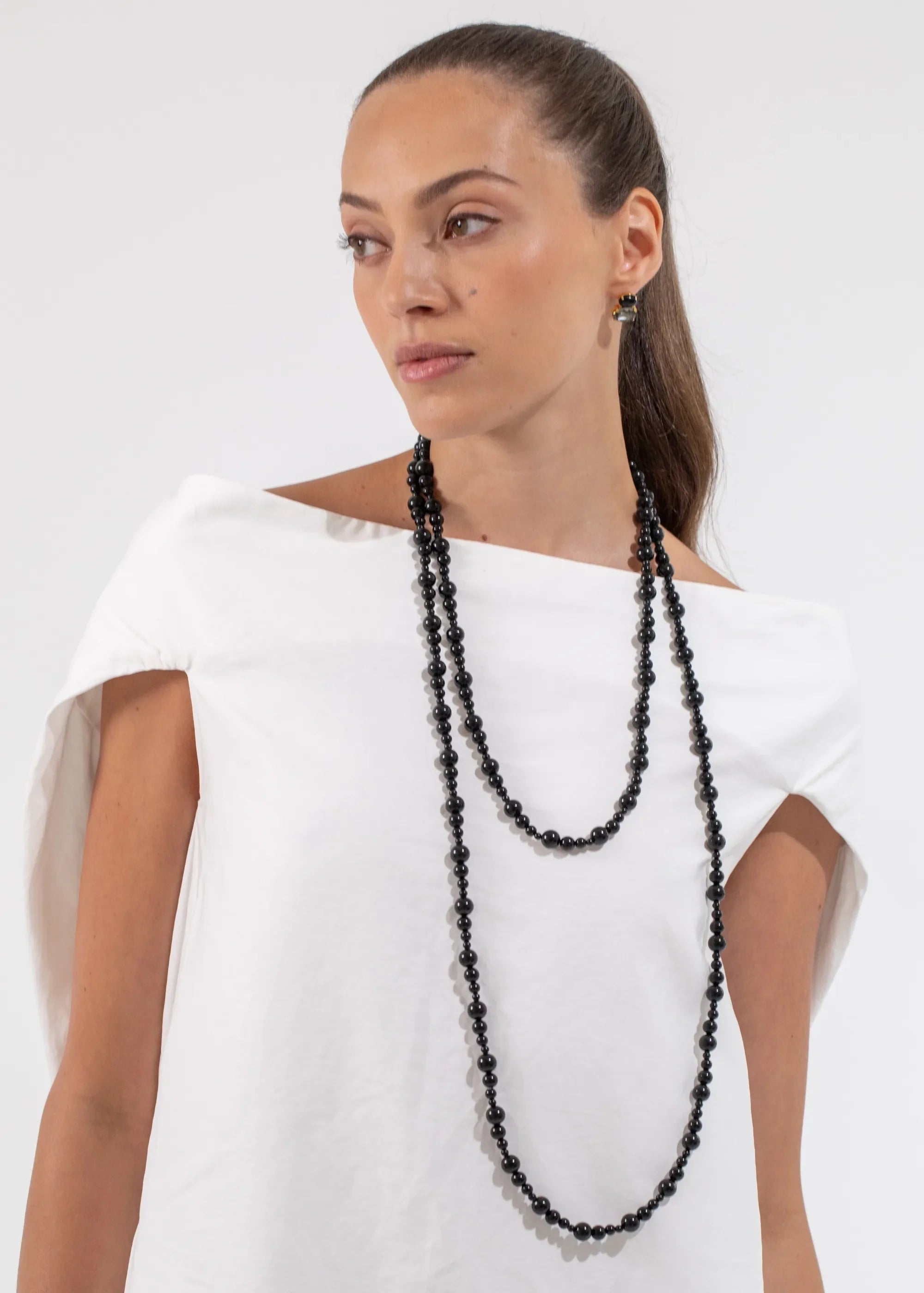 Conveying a classic elegance, the Veda Necklace is a uniquely versatile finishing touch from our Semi-Precious Collection, strung with aventurine. Beyond its undeniably striking green hue, aventurine is a gemstone prized for its association with good fortune. Measuring an impressive 74 inches, it can be styled a multitude of ways and wrapped numerous times, and is designed to be paired with other pieces in our Semi-Precious Collection. Dimensions: 74" length.