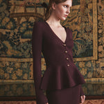 • Fitted rib peplum pullover long sleeve v-neck top