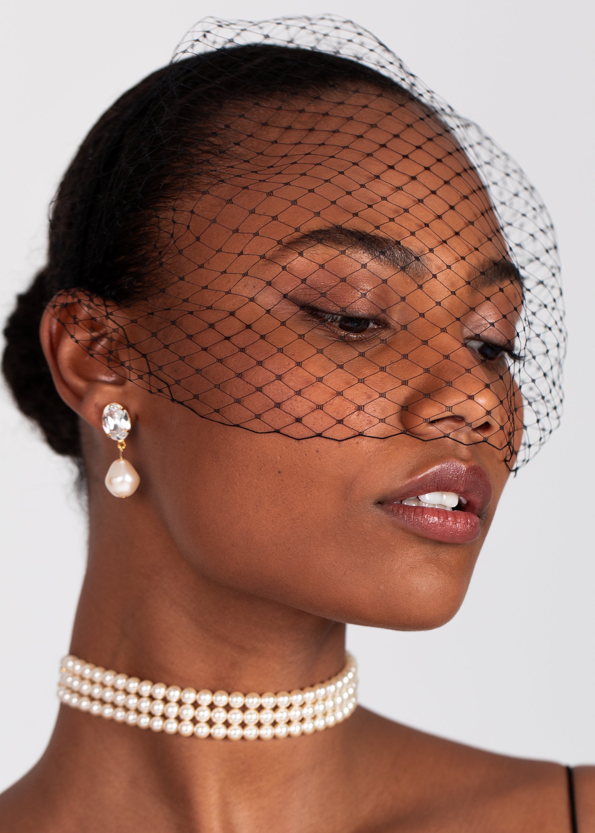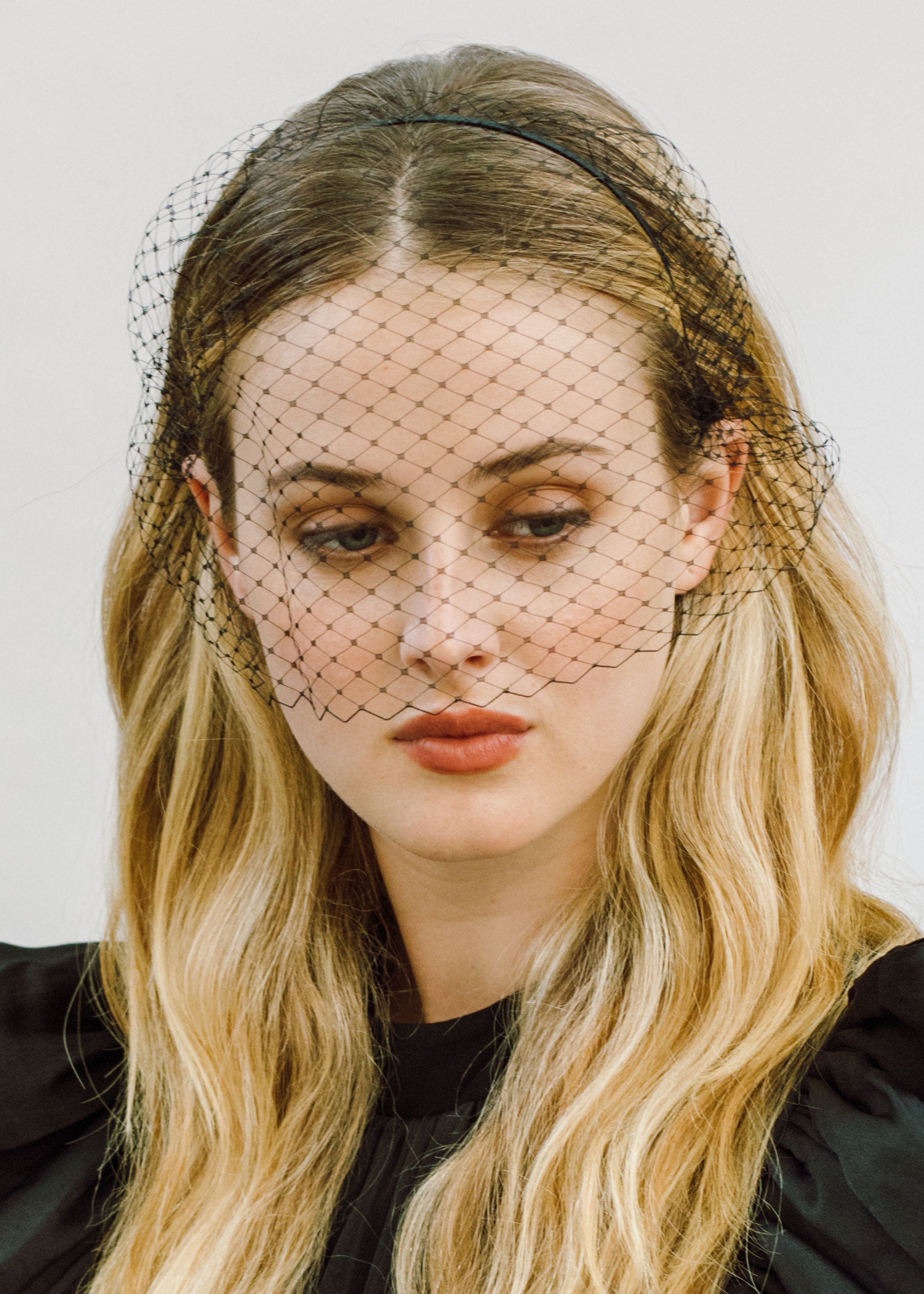 The Voilette Headband has inspired a movement of modern veiling, but none can compare to this handmade original. The French-inspired veil sits on a fine silk-wrapped headband, falling elegantly across the face. This piece is a chic statement, and can add a fashion-forward twist to any look. Dimensions: 0.5 x 0.5 inches Weight: 9g