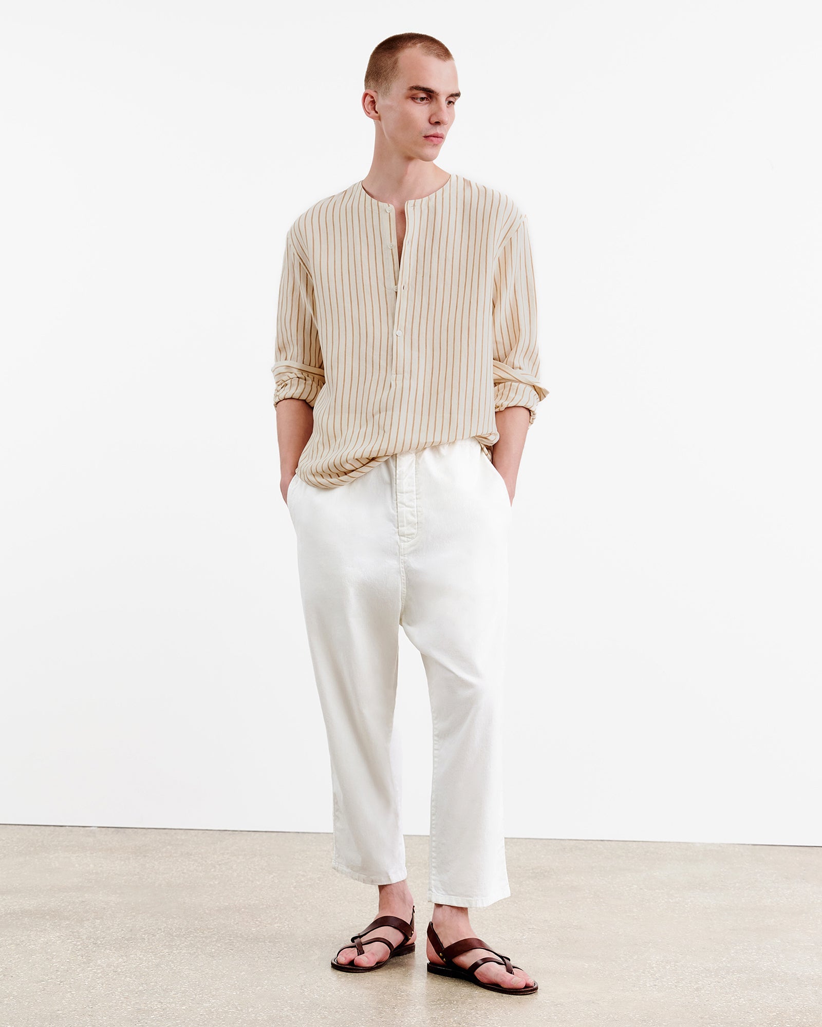 An easy, everyday pant, the Walker features an elastic waistband, relaxed crotch, side seam pockets, and flap pockets at the back.