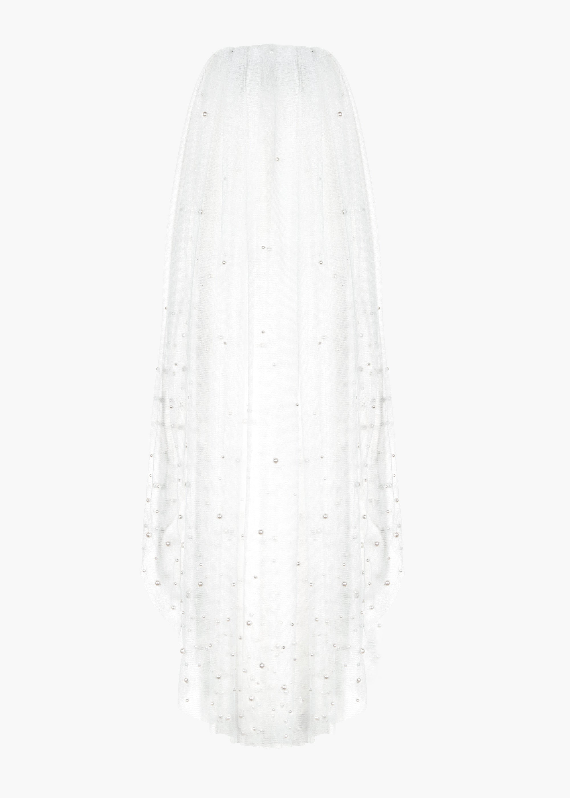 Say "I do" to the Willa Veil. This tulle veil is hand-embellished with individual pearls, creating the illusion of glistening pearls suspended midair, and sits on a hair comb for flawless placement in the hair. We love the idea of reverberating this motif by wearing it with one of our classic pearl earrings, like the Gretel Earring.