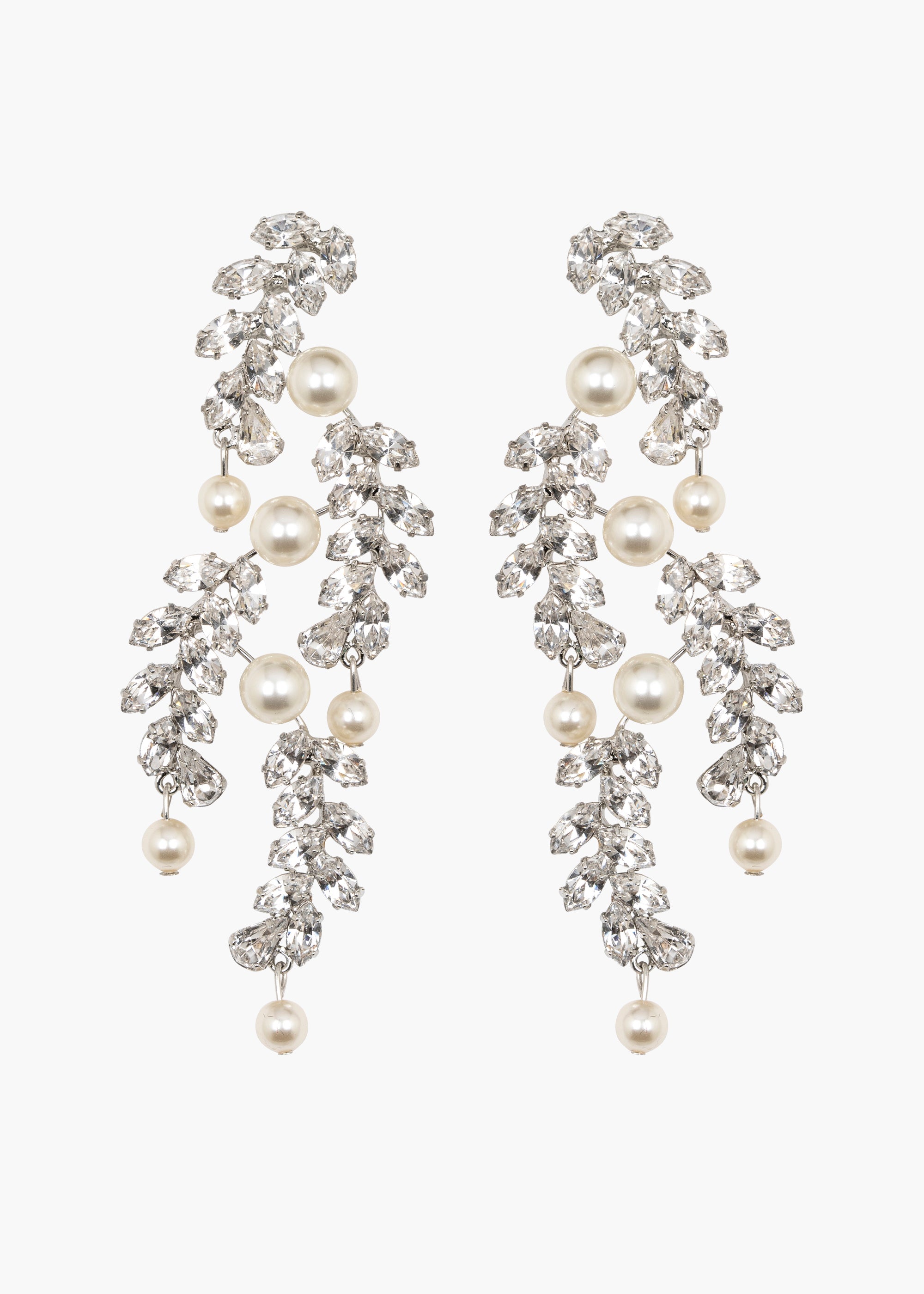 As their name suggests, the statement-making Wisteria Earrings evoke images of lush foliage. The dizzying arrangement of crystal vines pulls the eye in, and the undulating pearl drops cast a mesmerizing spell. Despite their considerable size, these earrings are exceptionally lightweight and comfortable to wear, thanks to their handmade construction.