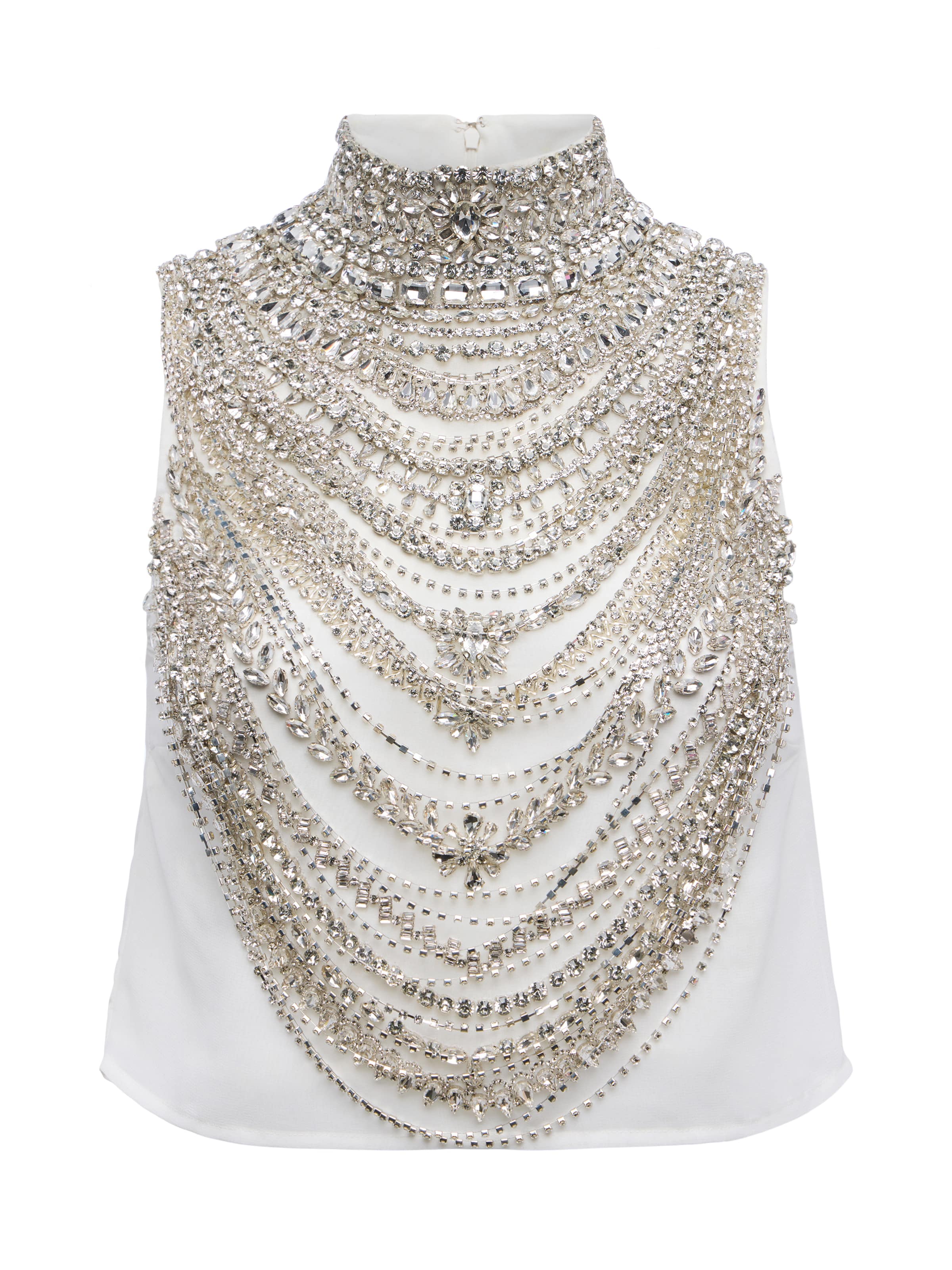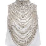The Yun debuted at our Fall ‘25 NYFW presentation. Crafted to captivate, a cascade of crystal embellishments drape across the front in jewelry-like layers, transforming a sleek ivory base into a statement piece. The high neckline and structured silhouette add refinement, while the allover sparkle ensures you'll own every entrance. Perfect for holiday parties, evening events, or anytime you're ready to shine.