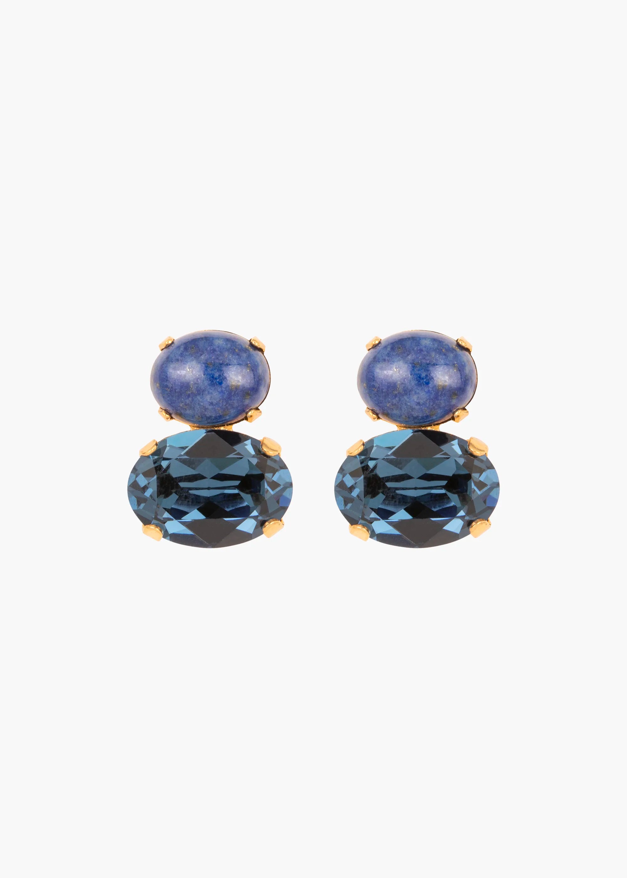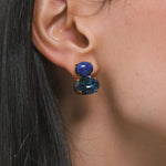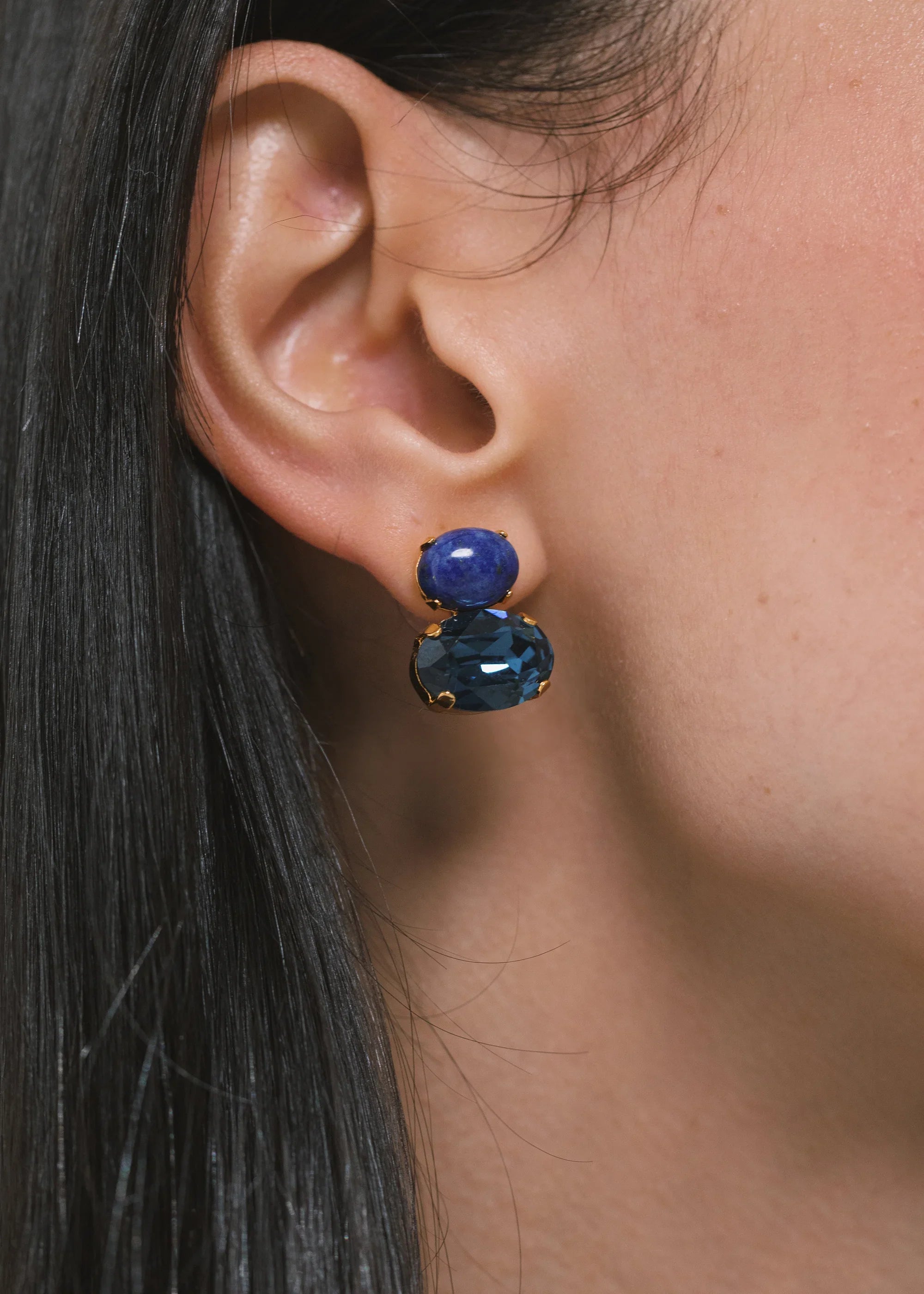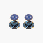 The Yvette Earrings combine gorgeously faceted crystals with semi-precious gemstones to create a harmonious tonal palette. They feature either semi-precious blue lace agate, a highly prized stone naturally formed in seabeds, known for its association with the throat chakra, promoting calm, clear communication or semi-precious chalcedony, which is known as a grounding stone for its ability to promote calmness and inner peace. . These delicate earrings pair seamlessly with anything. Dimensions: 0.75 inch length