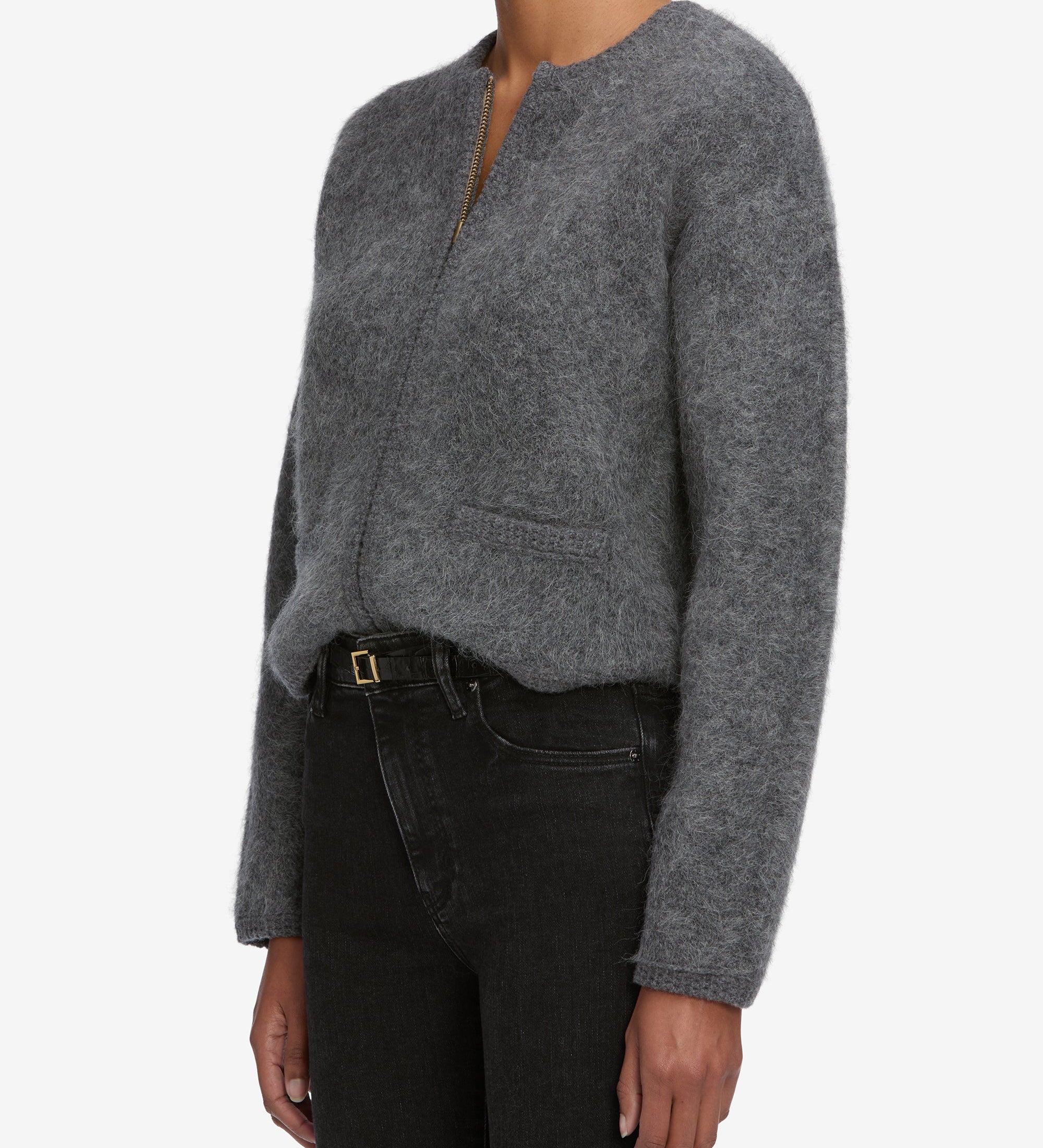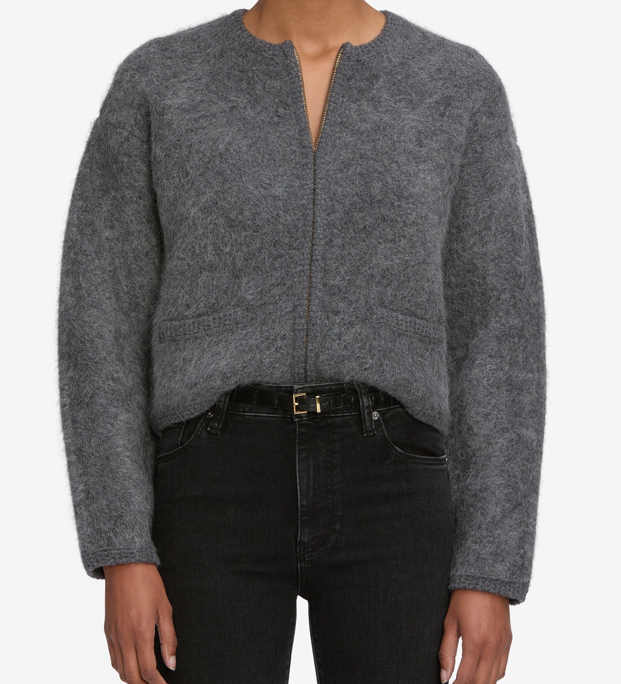 FRAME - The Lofty Crochet Cardi -- Dark Heather Grey
