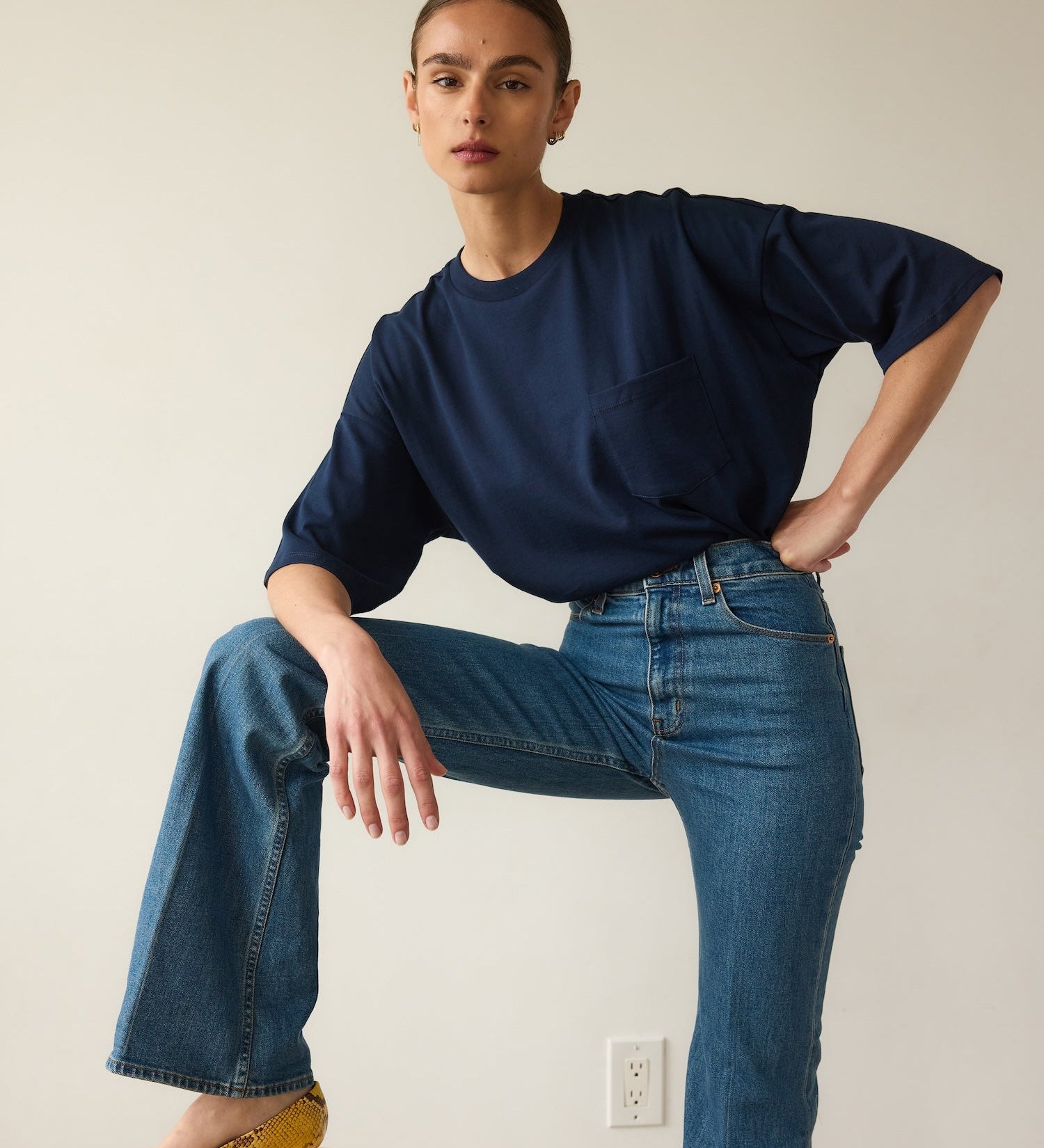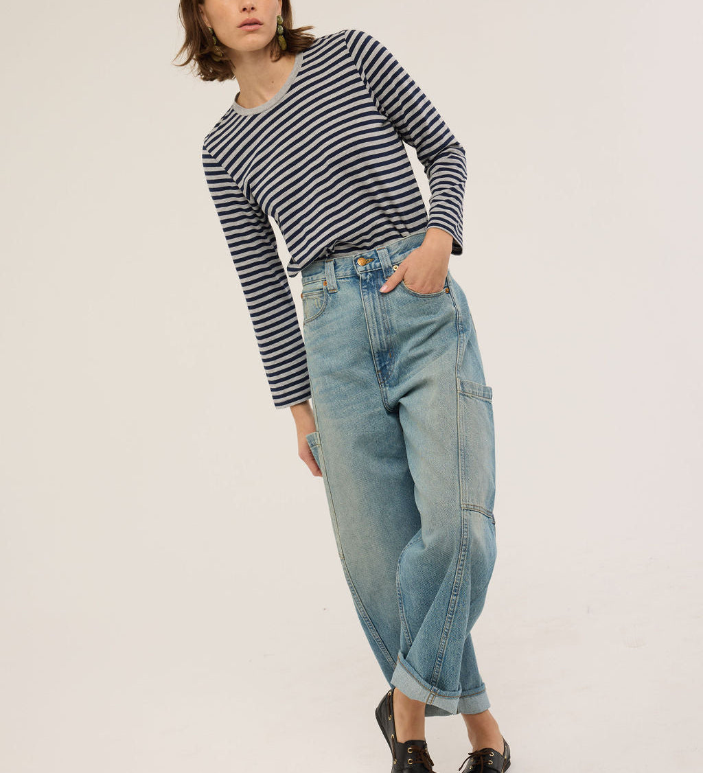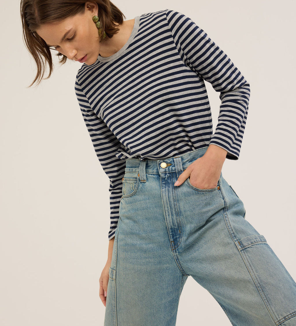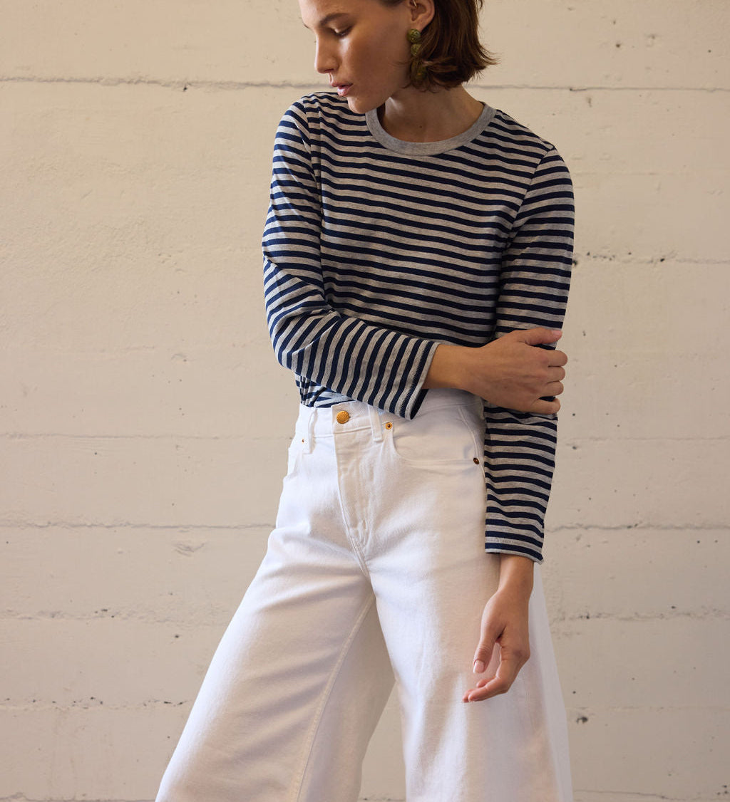 Jamie Haller - The Boxy Tee in Navy Heather Stripe