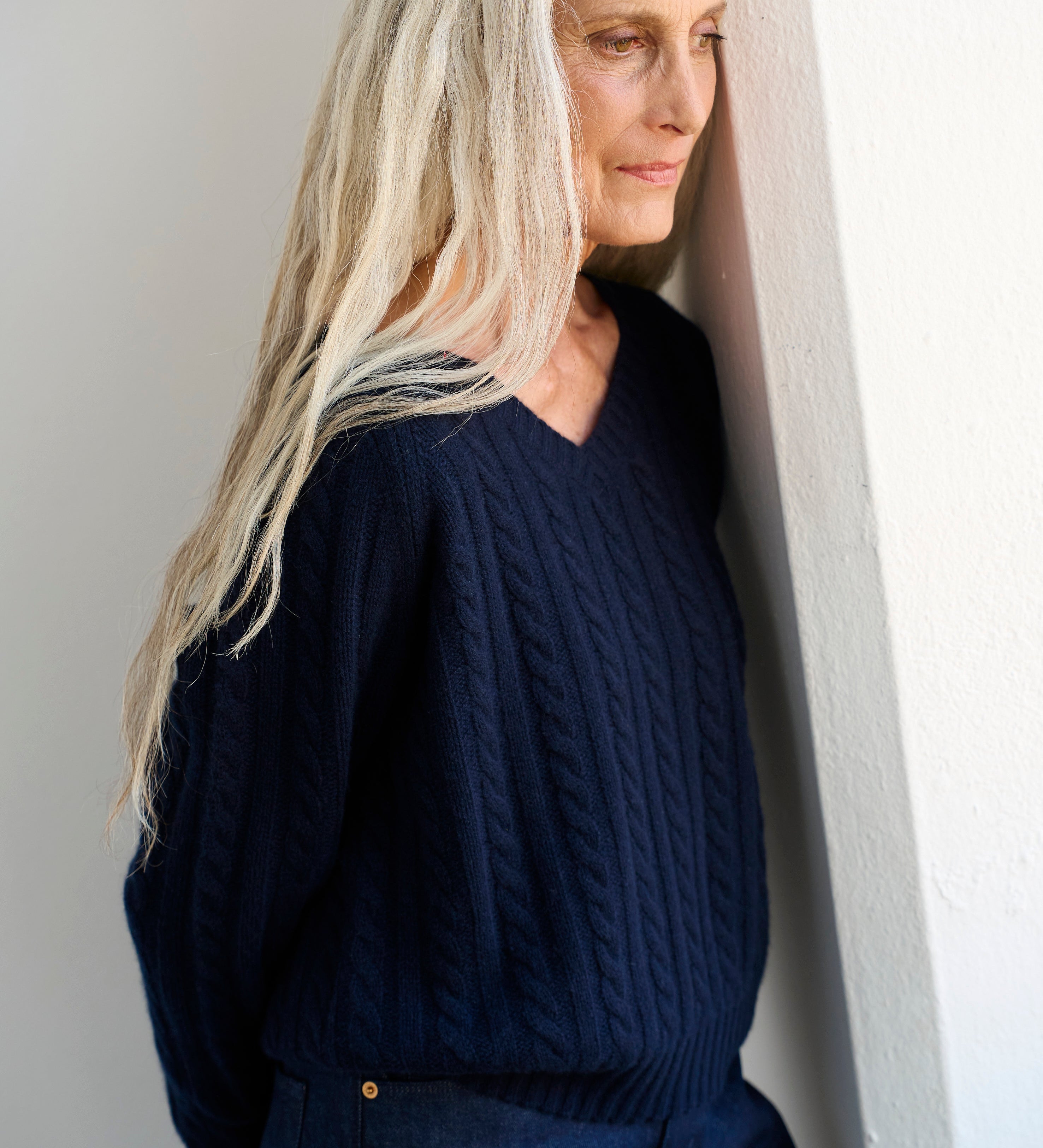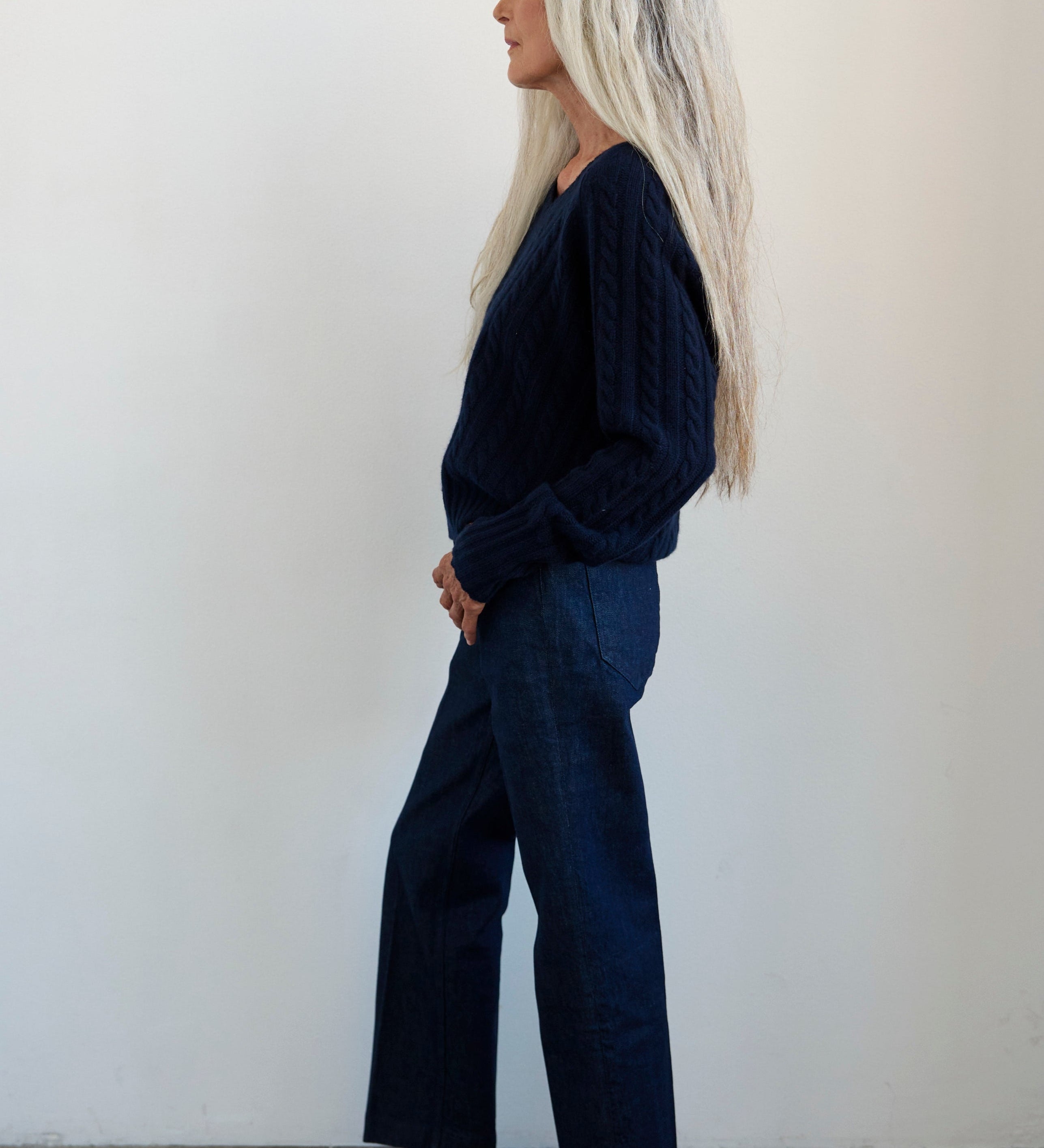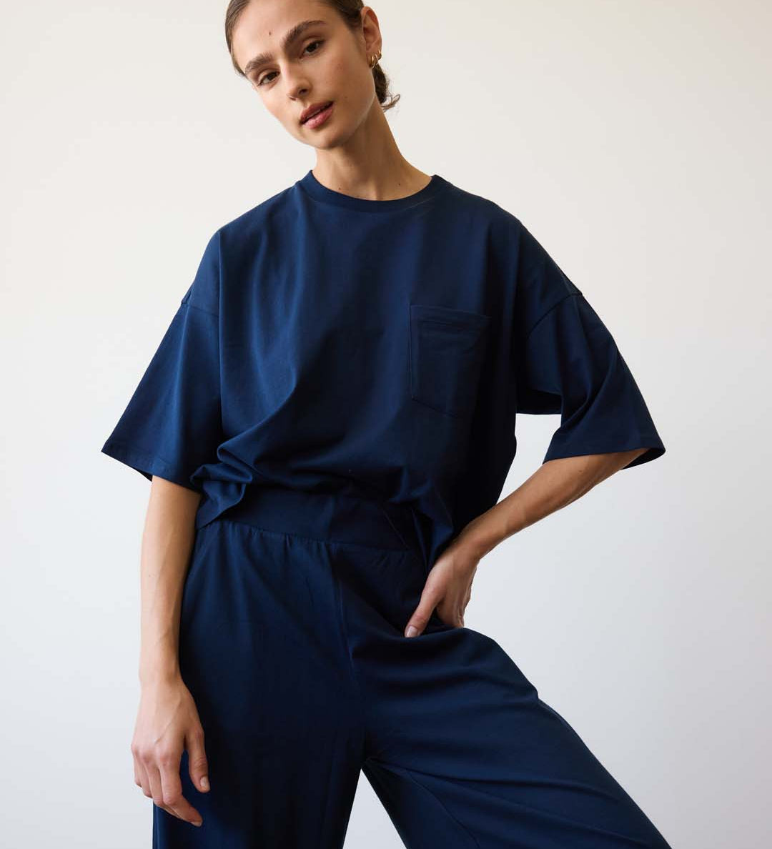 Jamie Haller - The Boxy Tee in Navy Heather Stripe