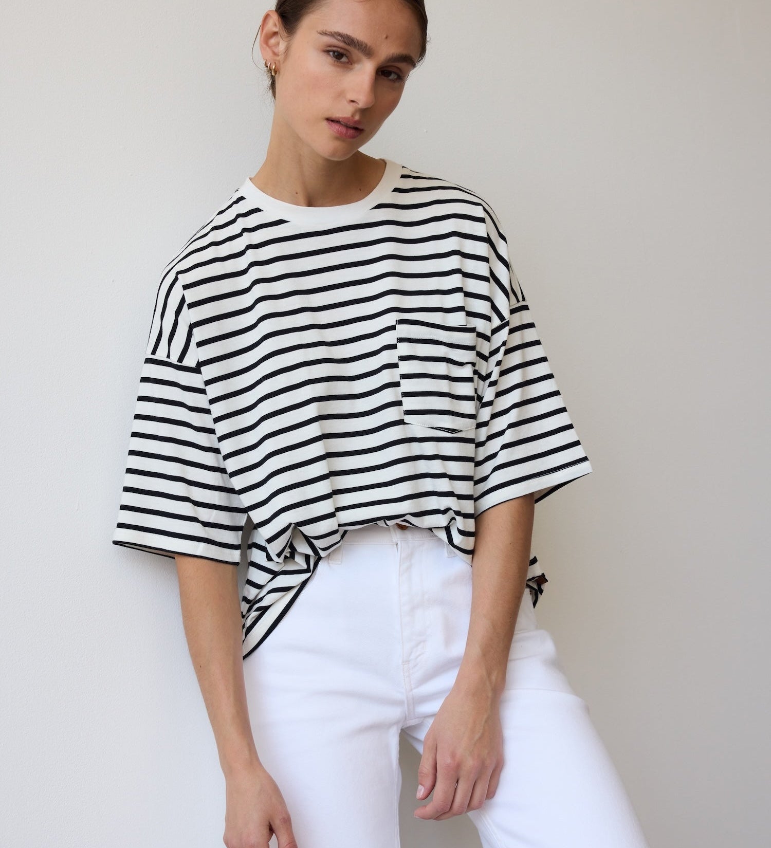 Jamie Haller - The Boxy Tee in White Black Stripe