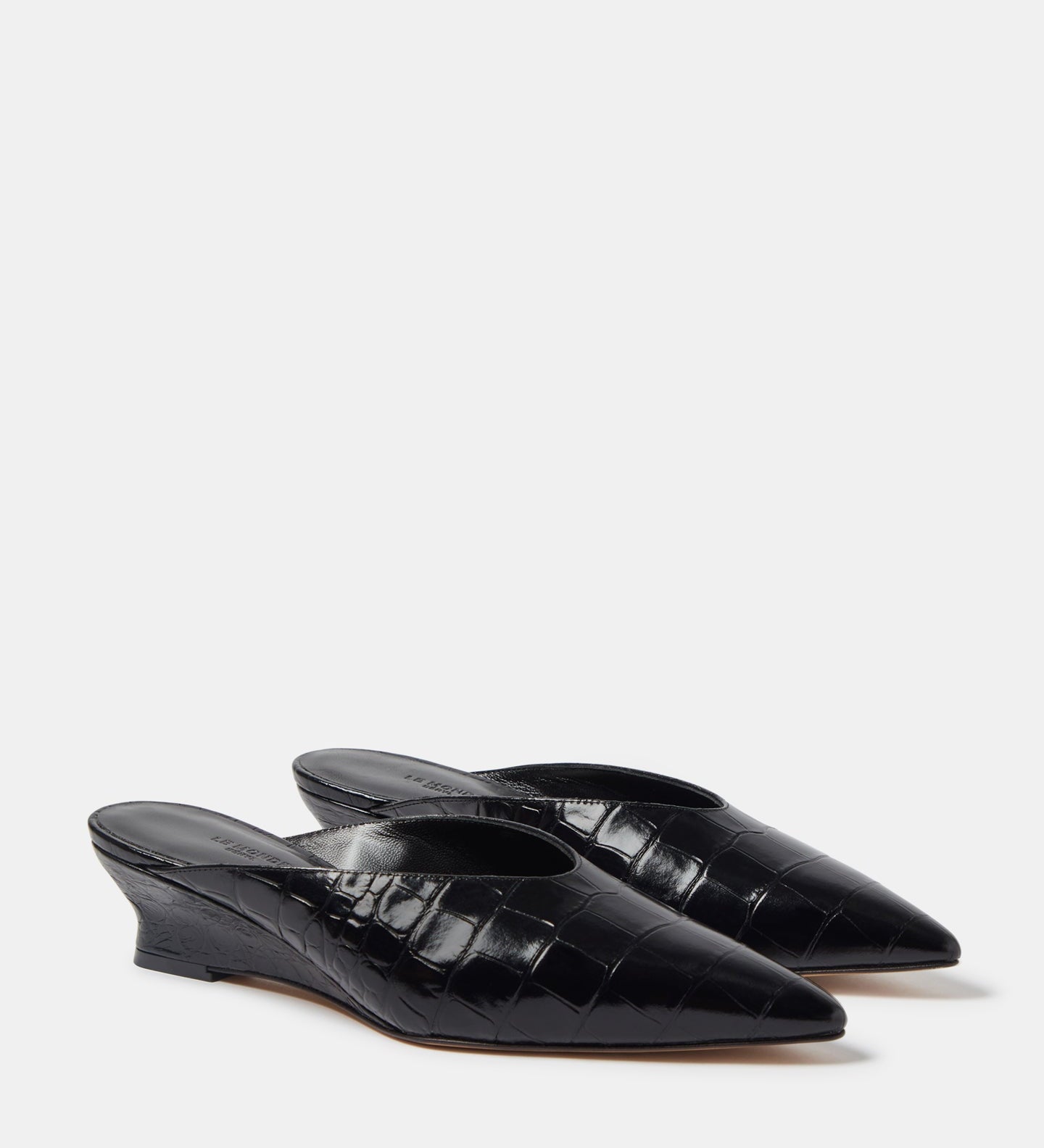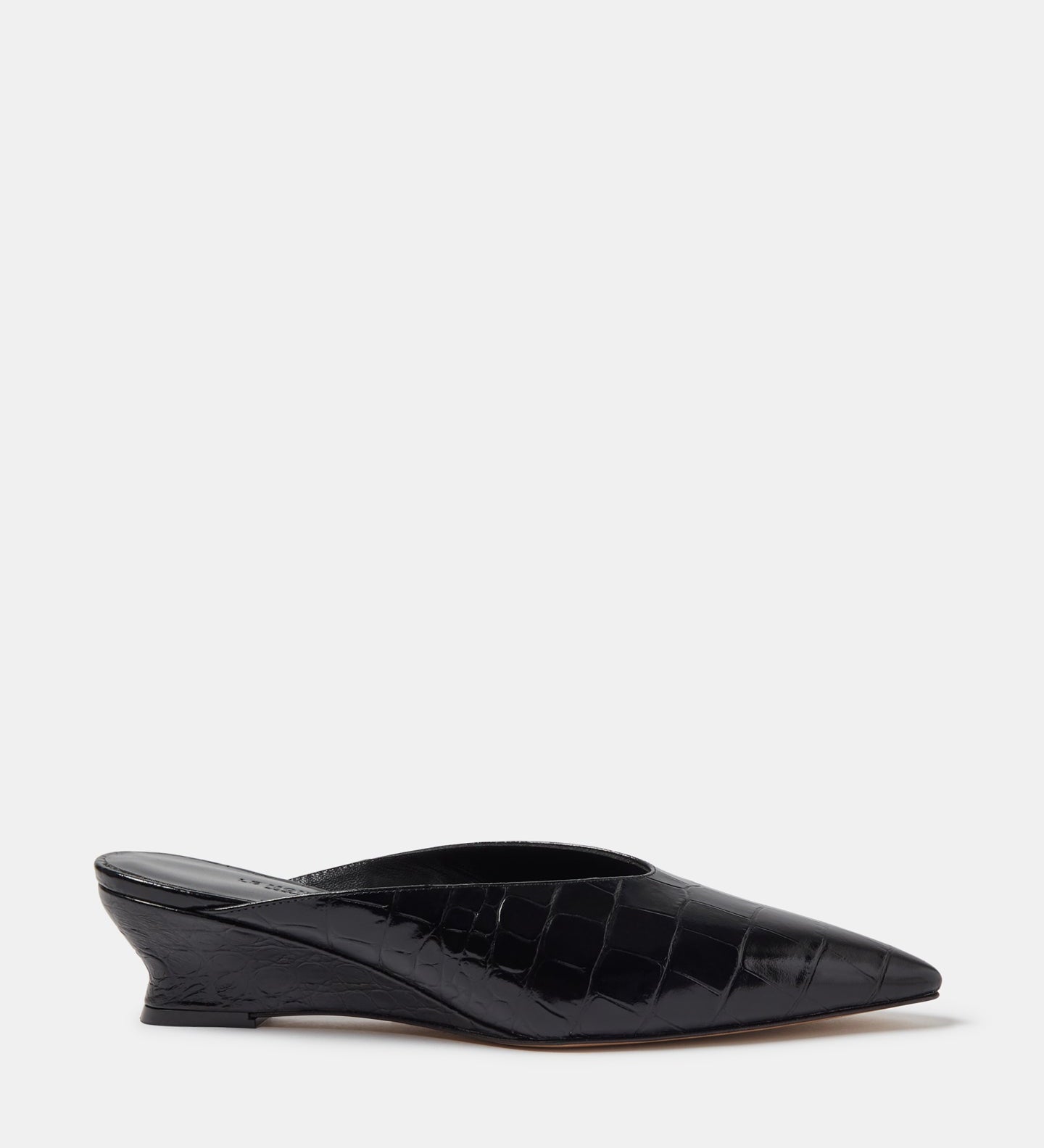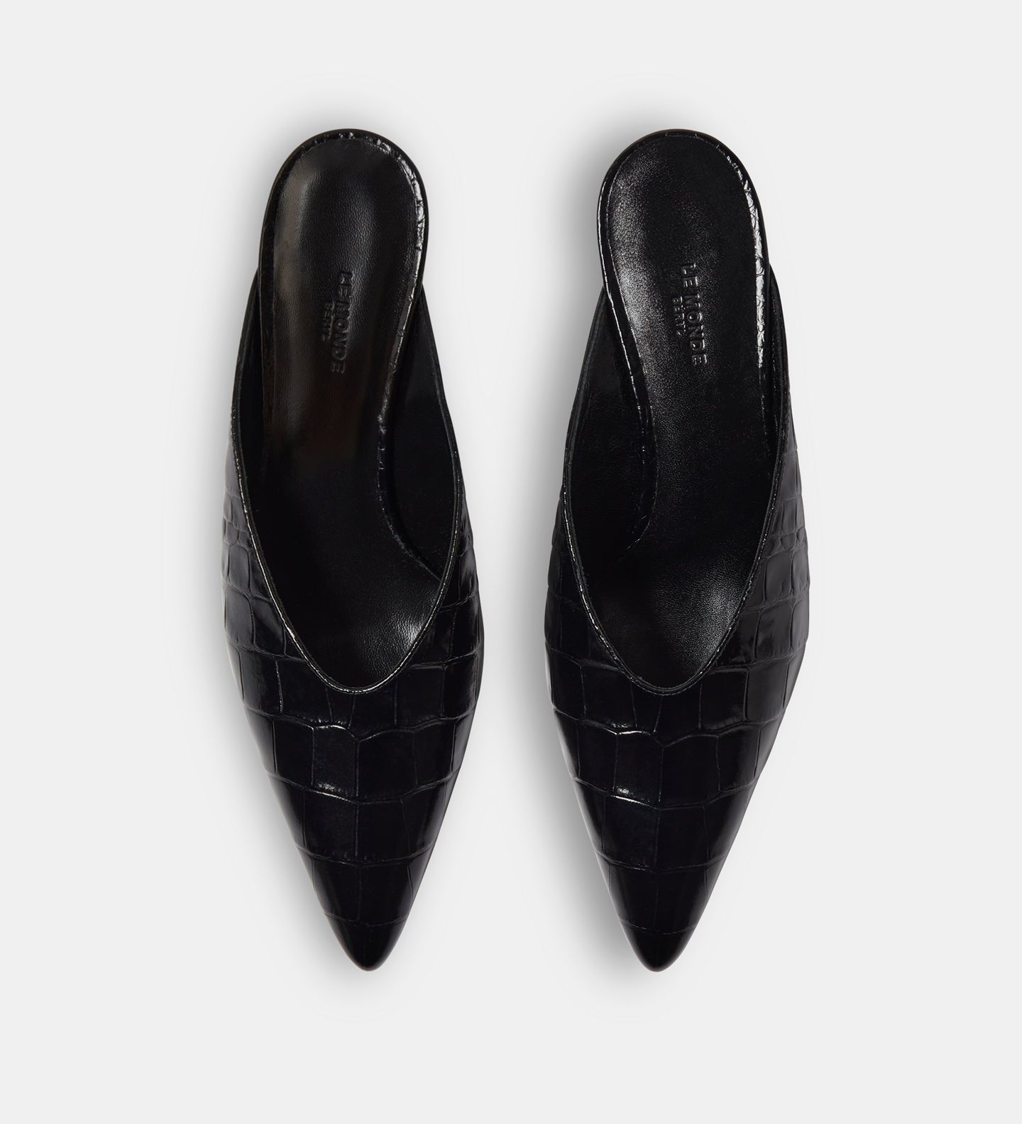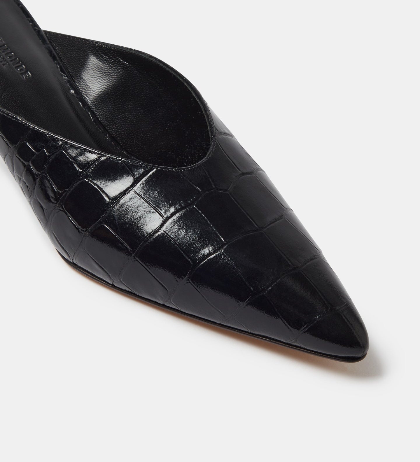 Le Monde Beryl - Victoria Micro Wedge Mule / Coco Black Croc Effect Leather