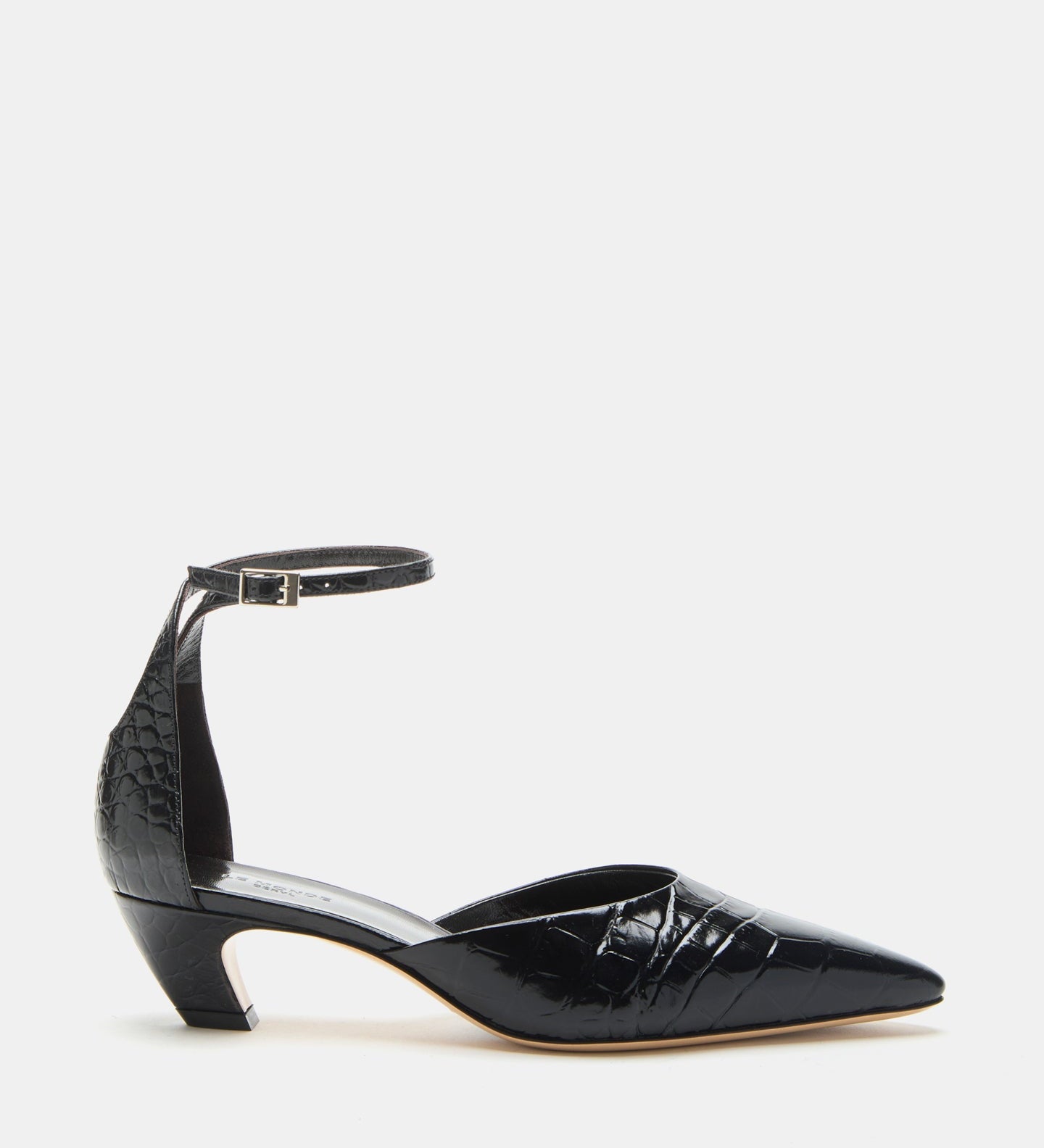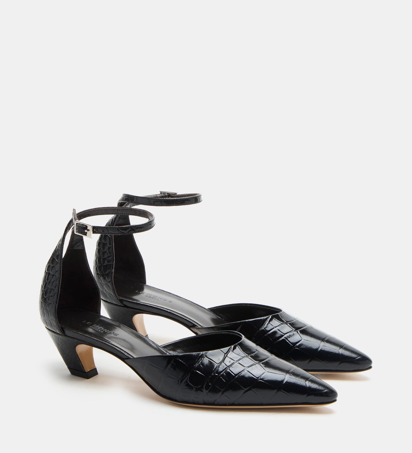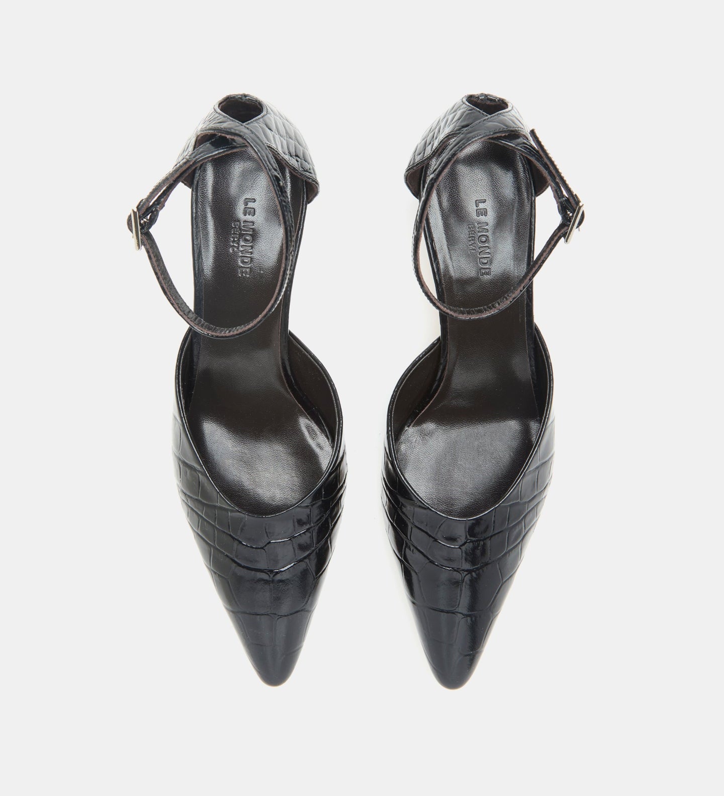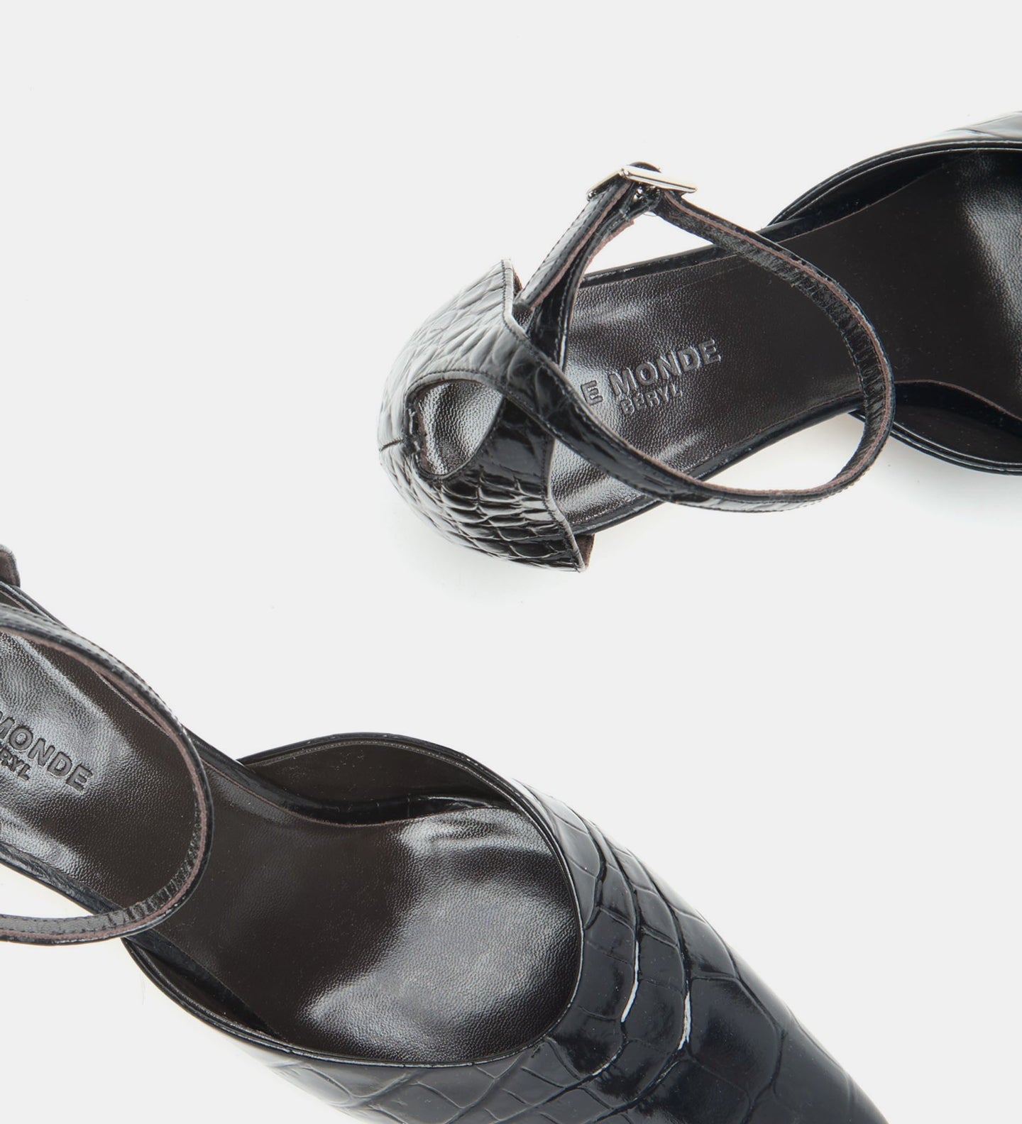 Le Monde Beryl - Victoria Micro Wedge Mule / Coco Black Croc Effect Leather